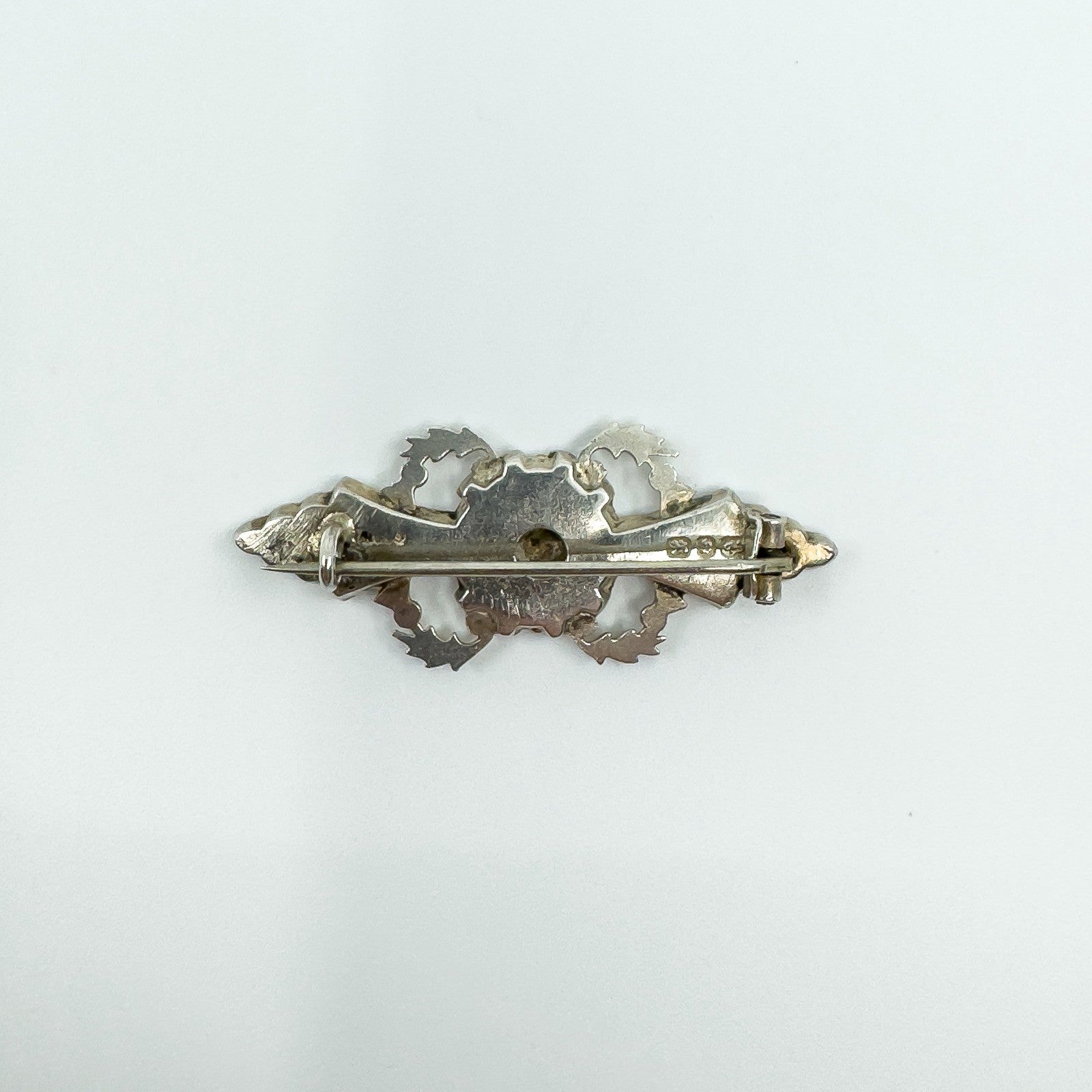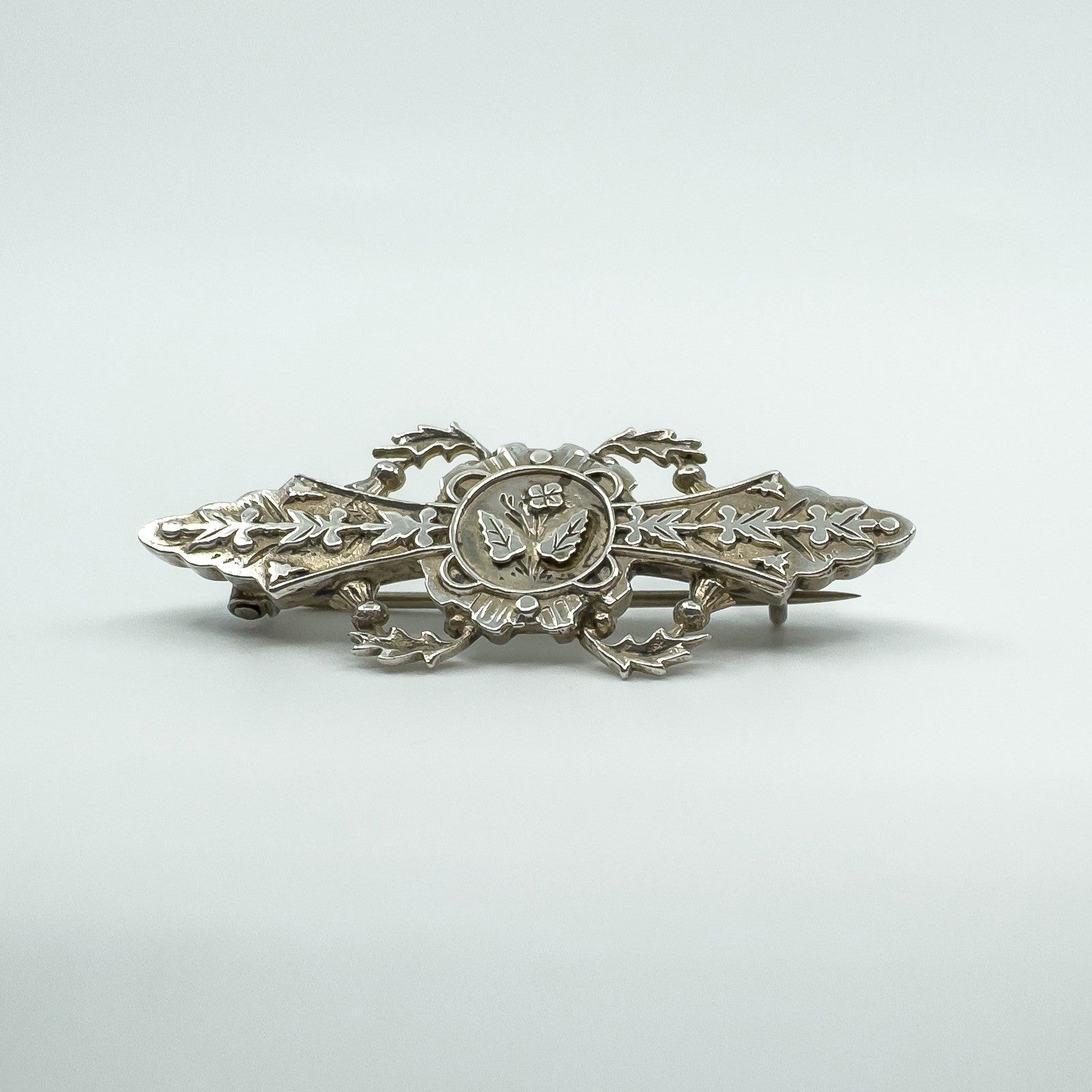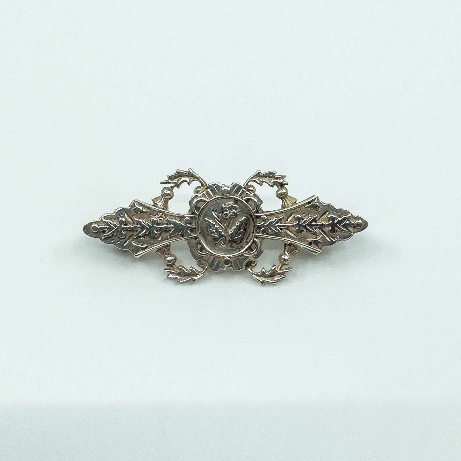 Antique Victorian sterling silver Scottish thistle brooch, hallmarked Birmingham 1876. Fitted with a C clasp pin and a classic thistle design.