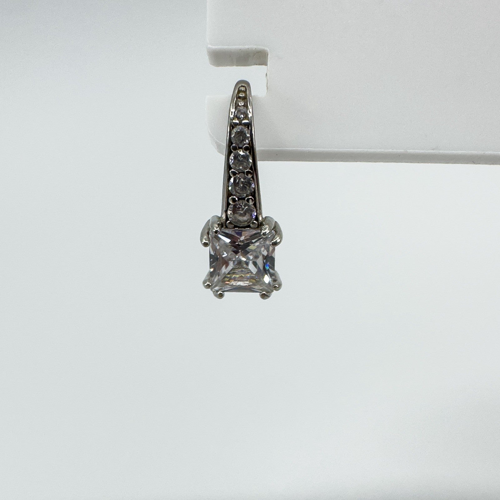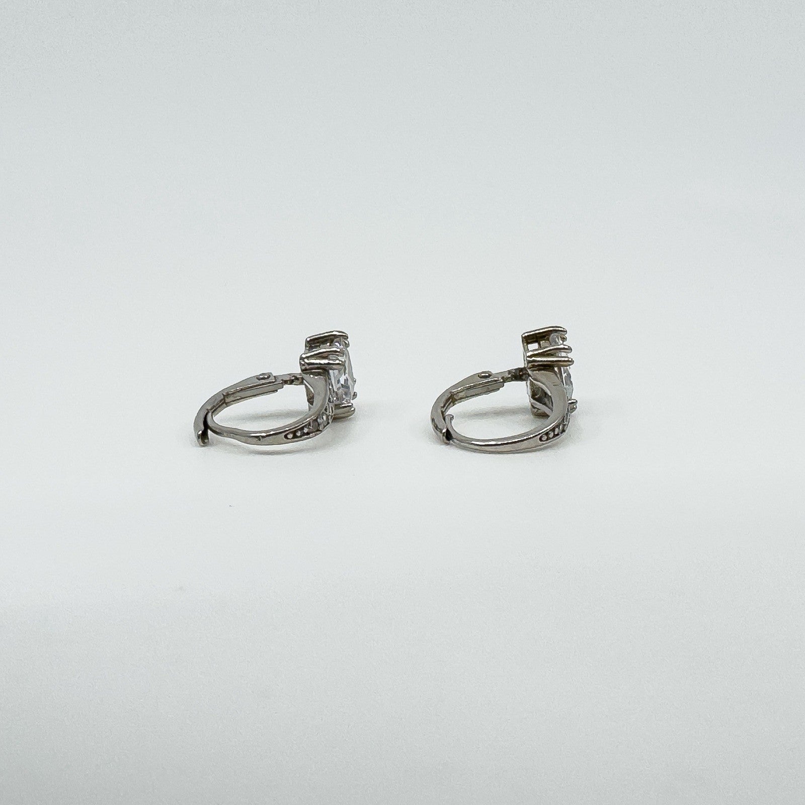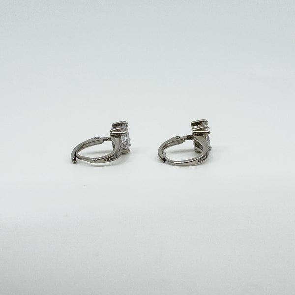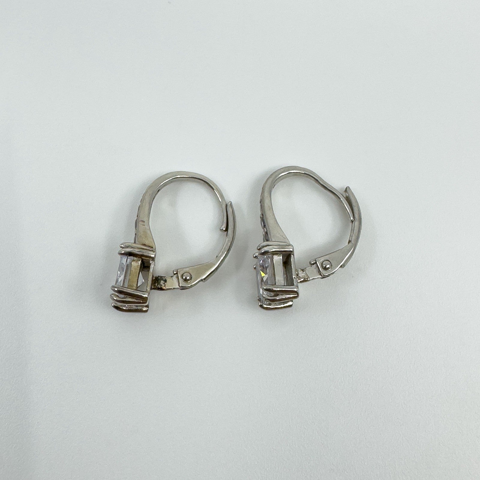• Sterling silver CZ drop earrings • Hinged lever backs (for pierced ears) • Stamped 925 • Pair weight approx. 2.7 g • One earring back slightly misshaped; does not affect wear
