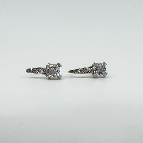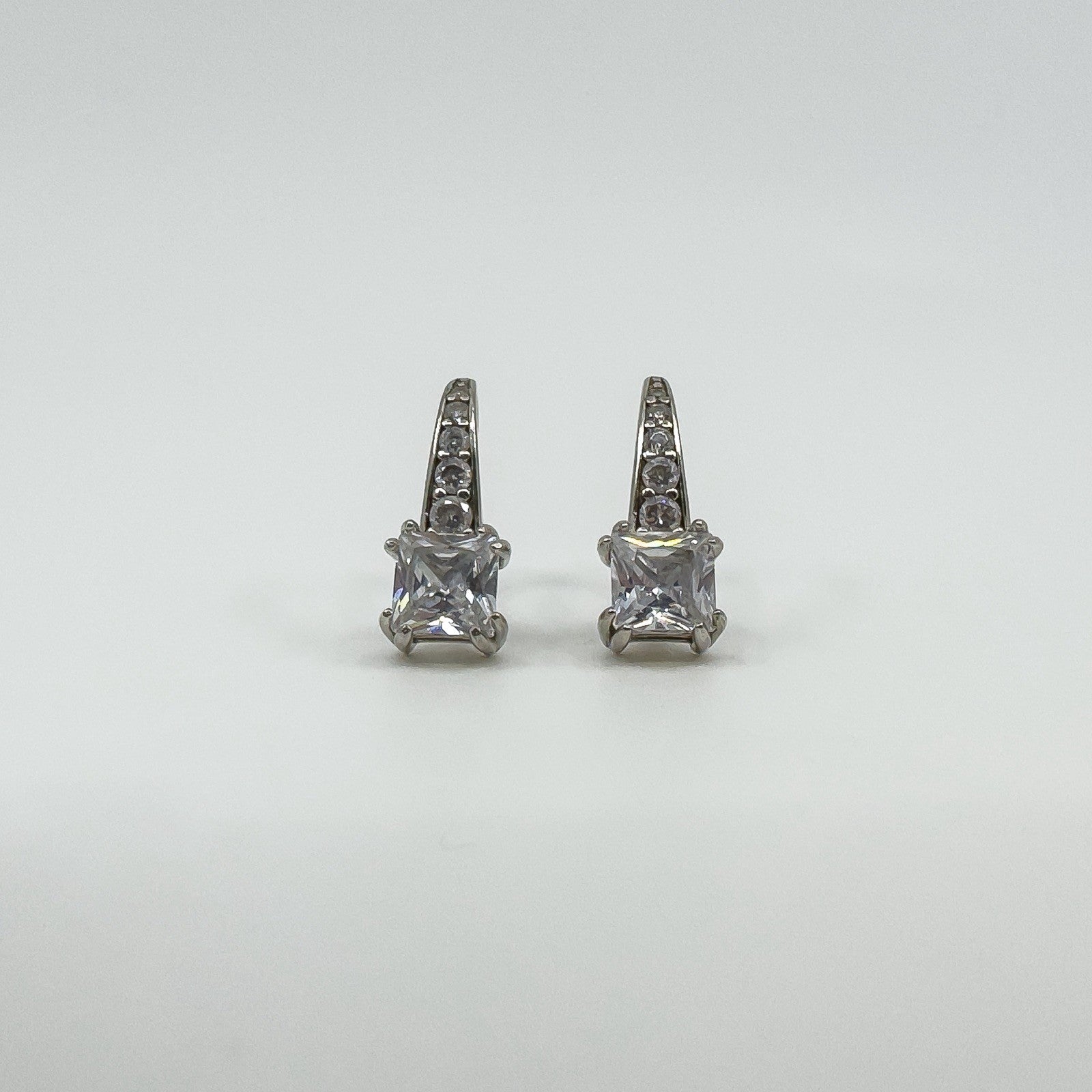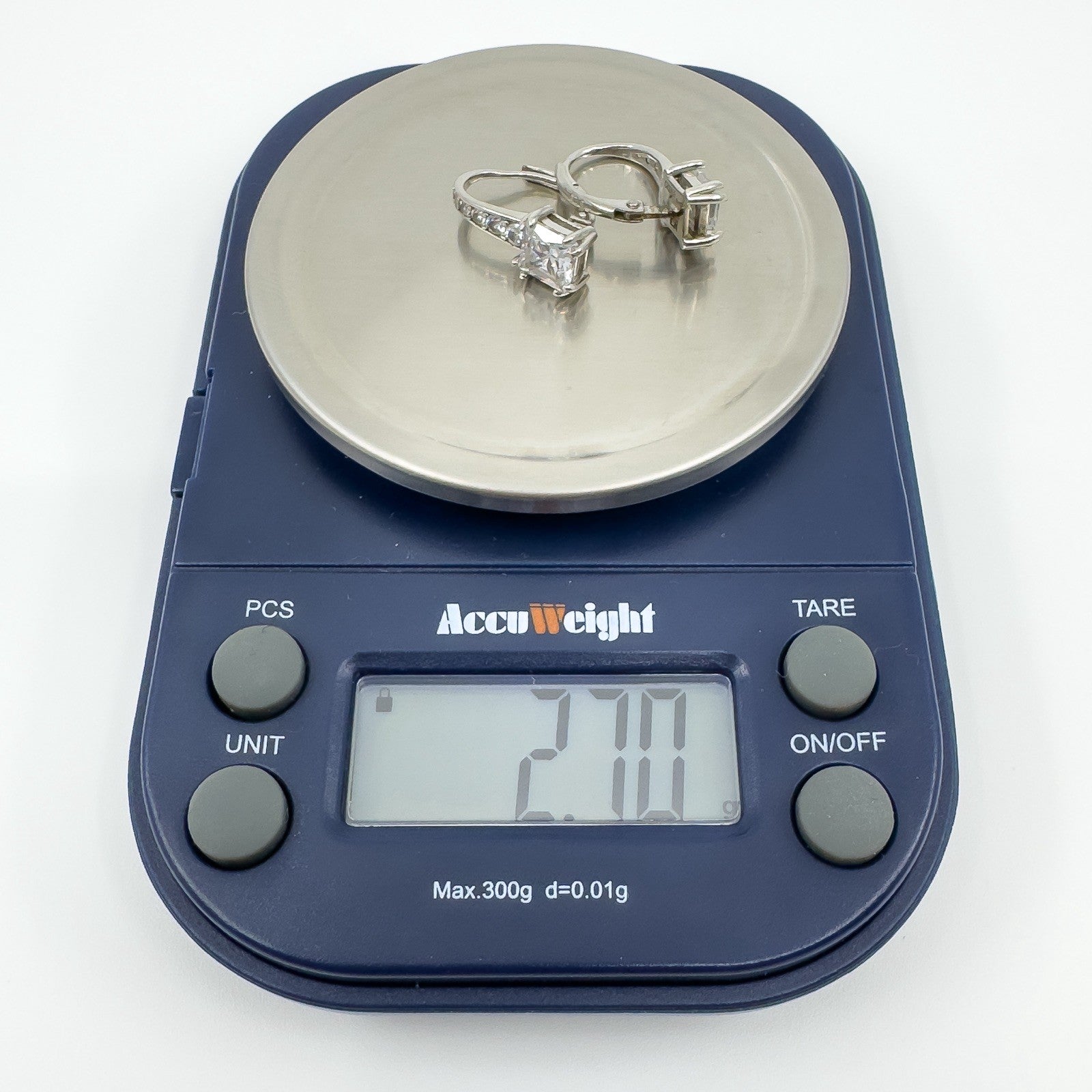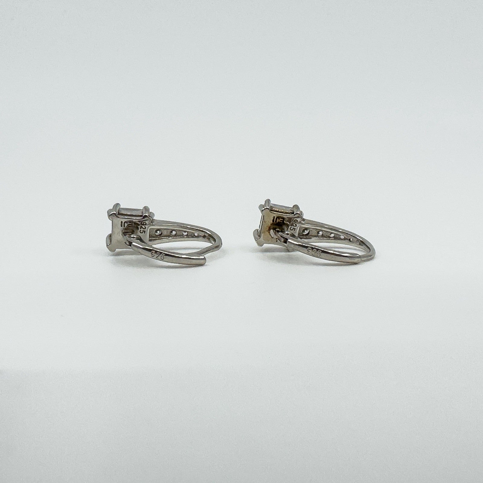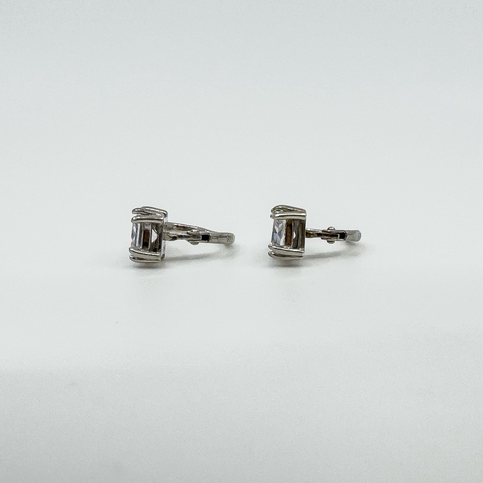 • Sterling silver CZ drop earrings • Hinged lever backs (for pierced ears) • Stamped 925 • Pair weight approx. 2.7 g • One earring back slightly misshaped; does not affect wear