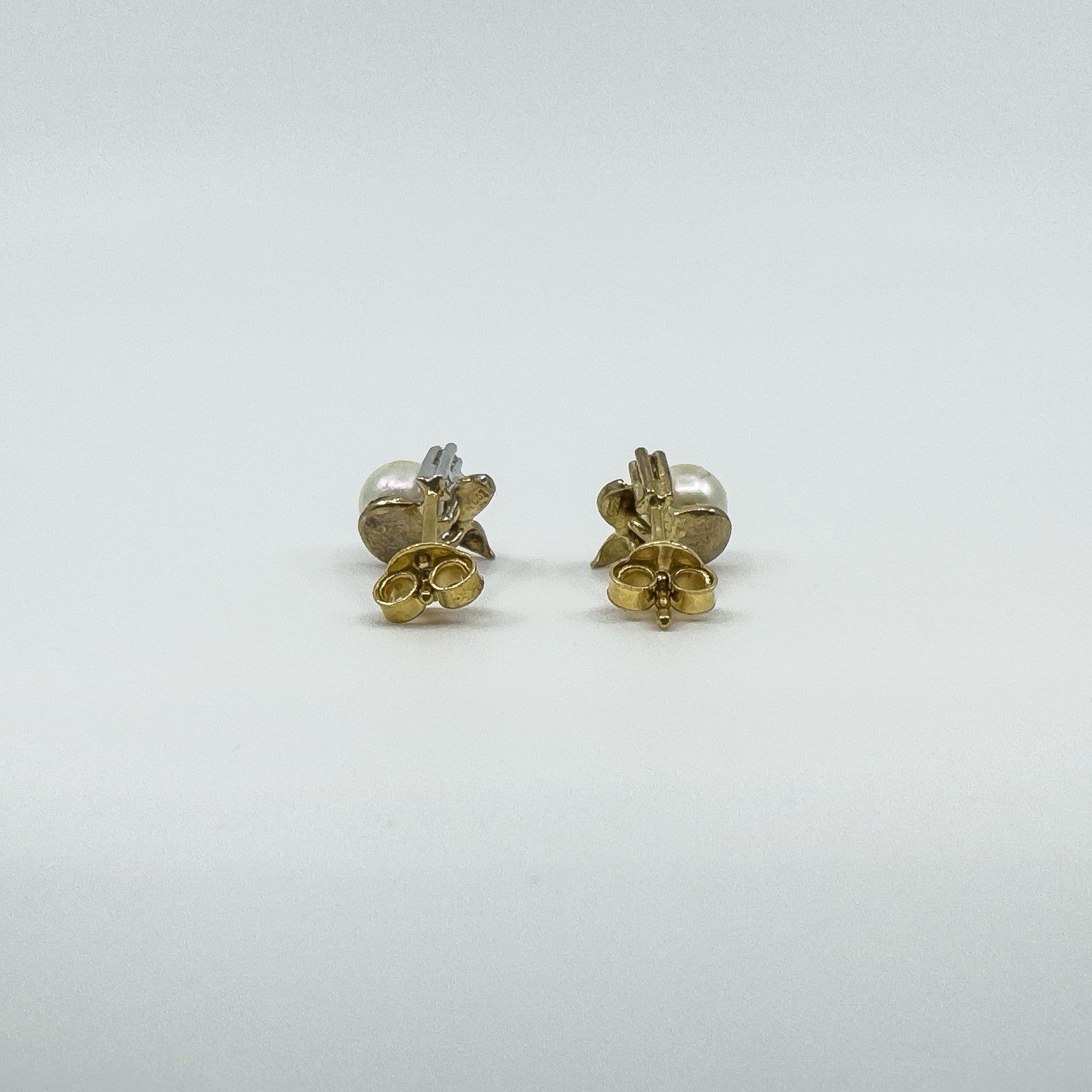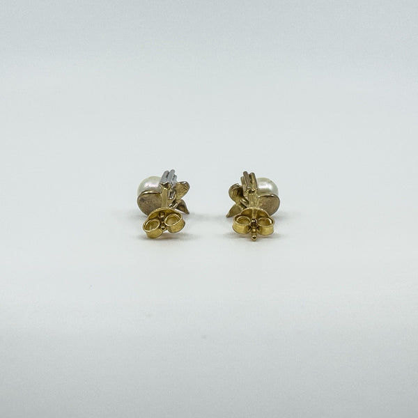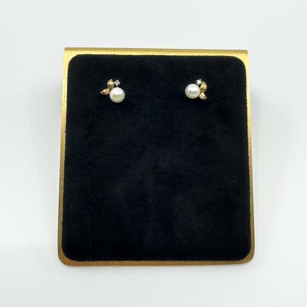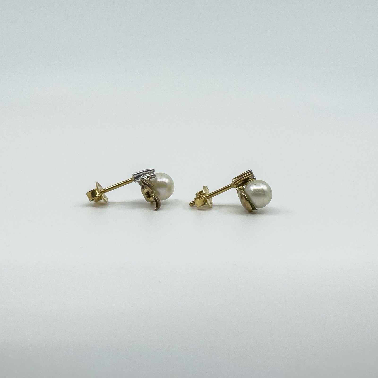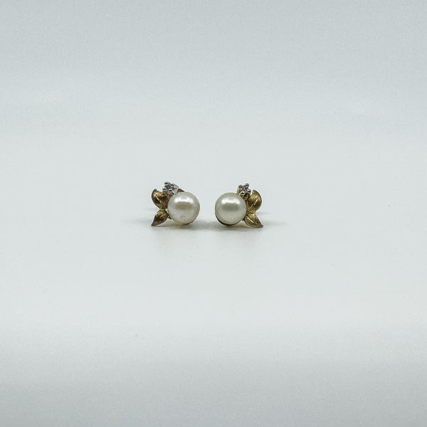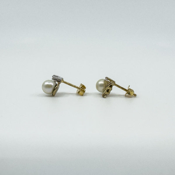 Vintage 9ct gold cultured pearl and diamond stud earrings