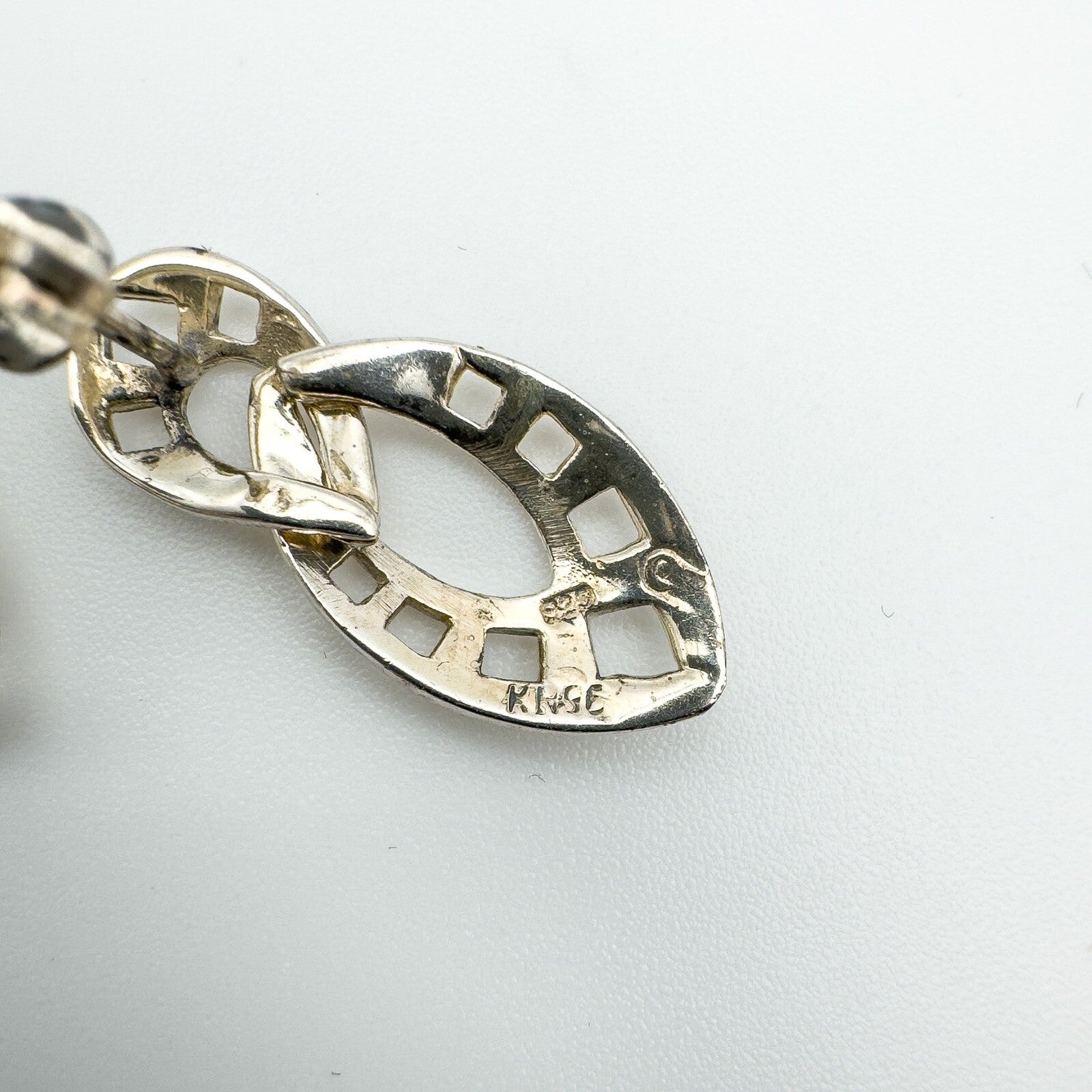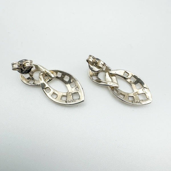 • Vintage Kit Heath sterling silver Celtic double drop earrings • Oval double drop design with gentle movement • For pierced ears with butterfly backs • Stamped 925; KH; 96; C (Kit Heath) • Approx. 24.8 × 10.8 mm • Pair weight approx. 3.1 g