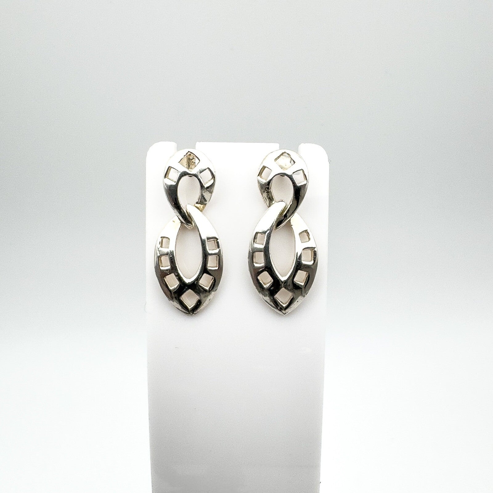 Vintage Kit Heath sterling silver Celtic oval double drop earrings with a simple, fluid design and gentle movement when worn.
