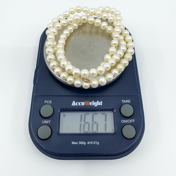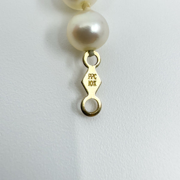Stamped 10k, this piece measures 18 inches in length and is perfect for both everyday wear and formal occasions. A classic string of pearls, ready to be treasured.