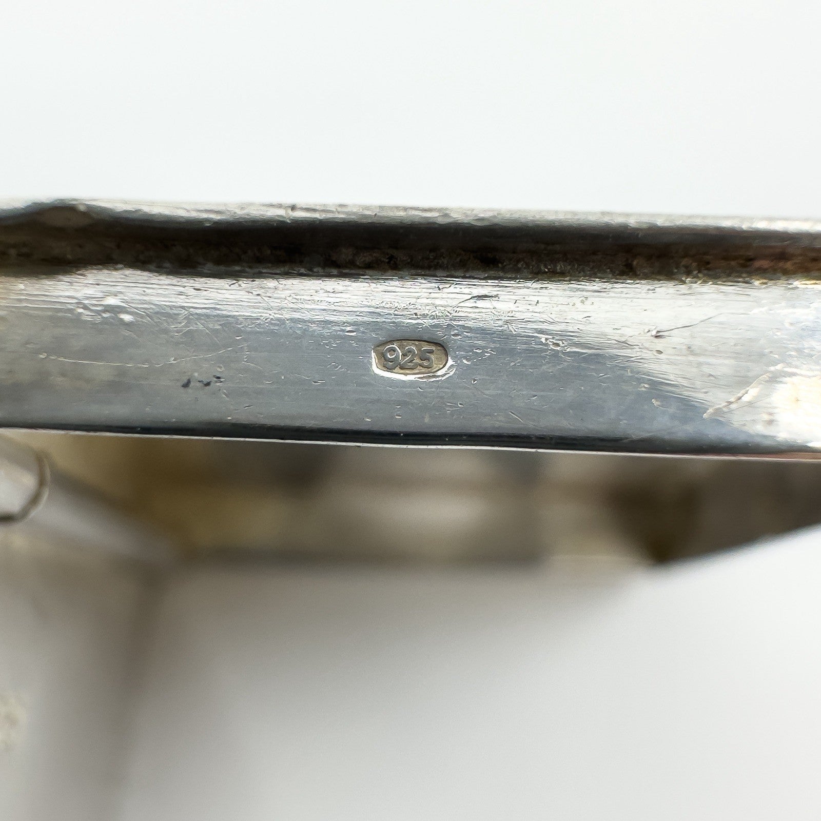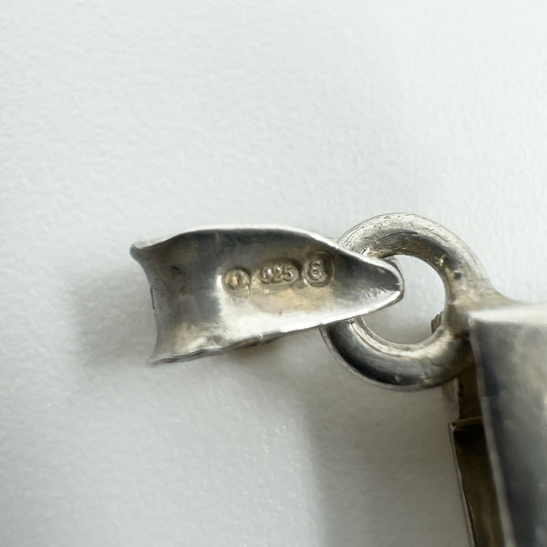 Stamped 925 with UK import marks and date letter E (1979). Hinged and secure, with a small rear compartment (approx. 3.8 mm depth) for one photo or a tiny keepsake.