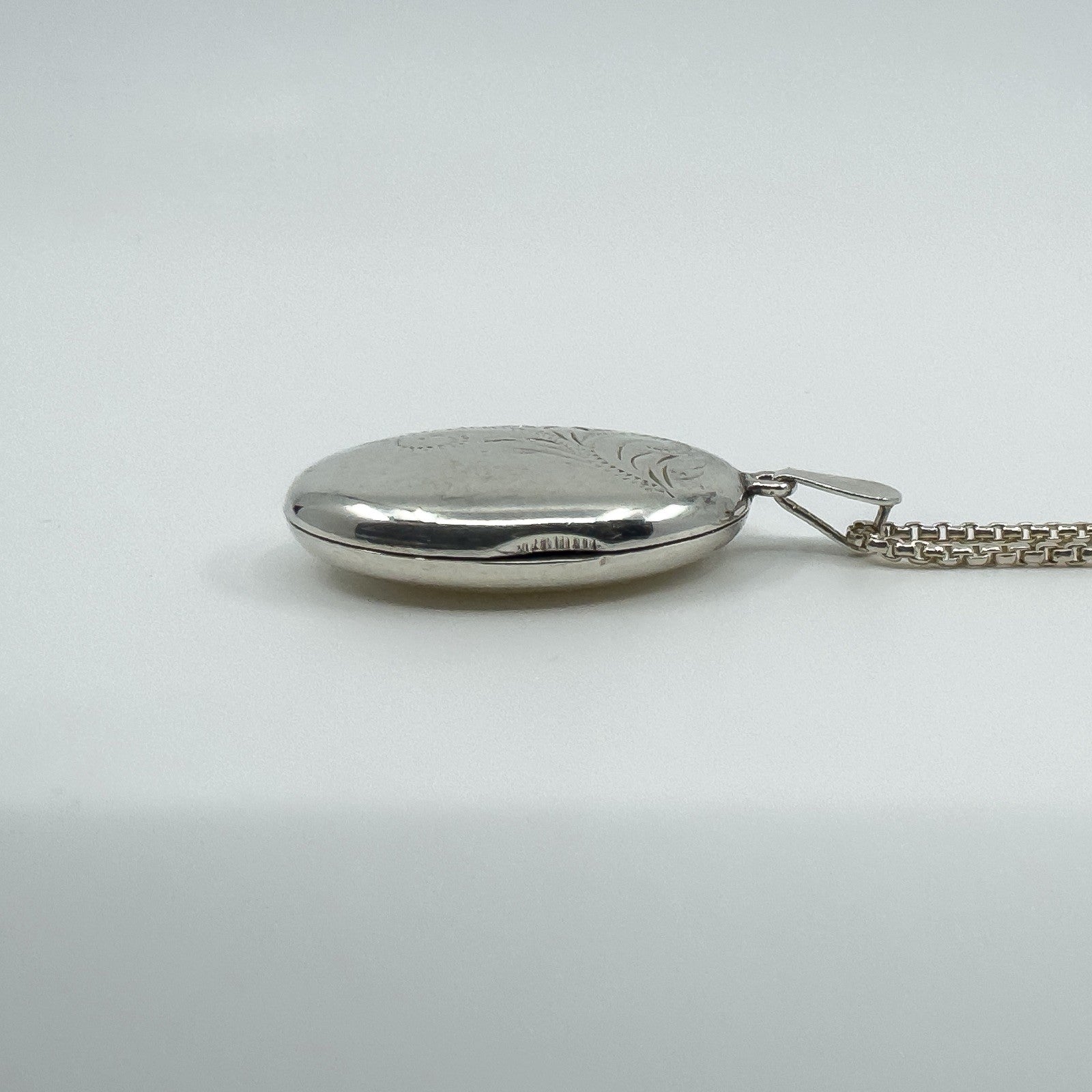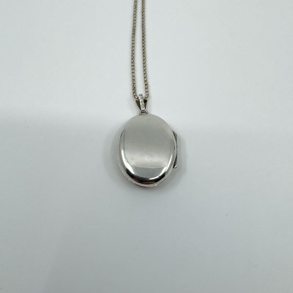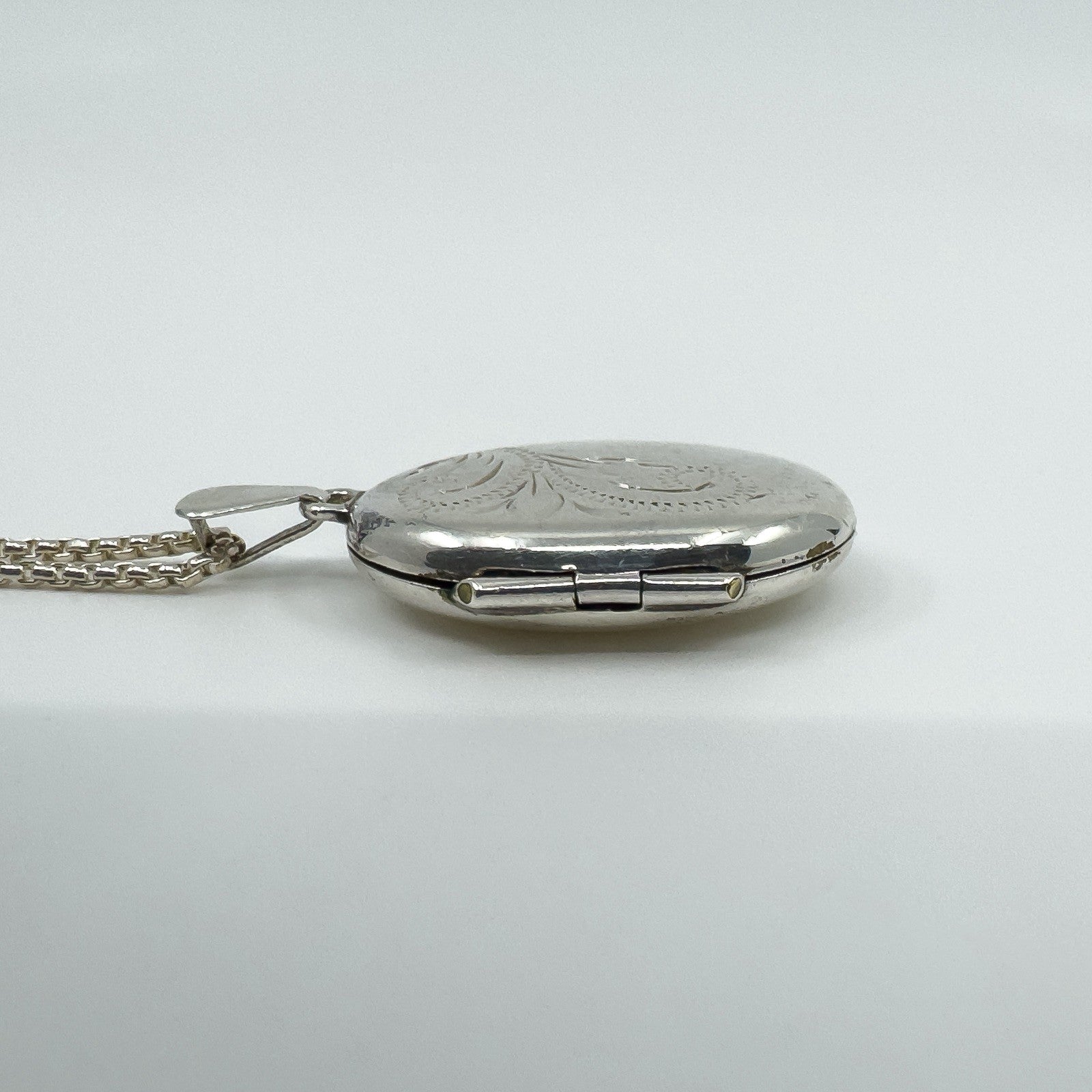 • Vintage sterling silver oval engraved photo locket with chain