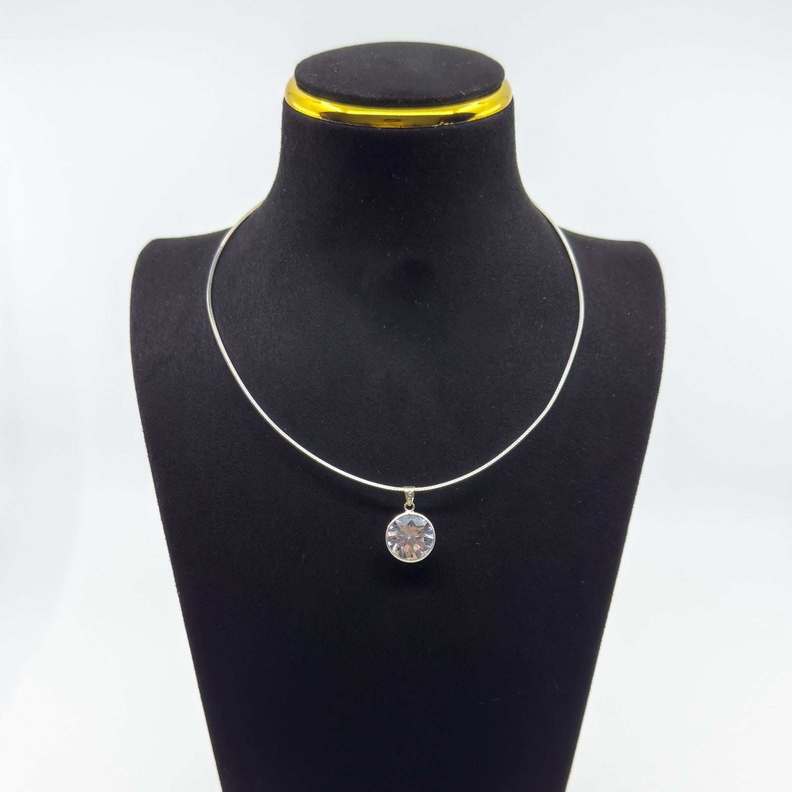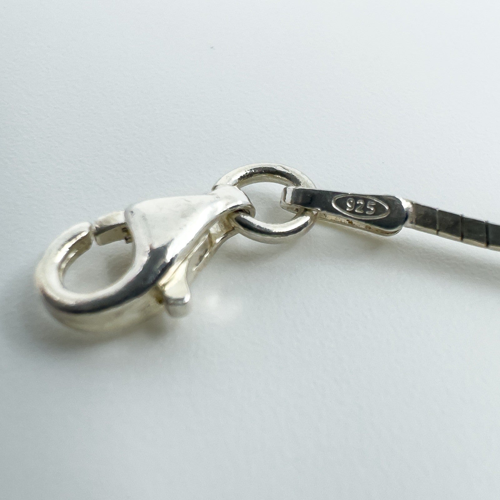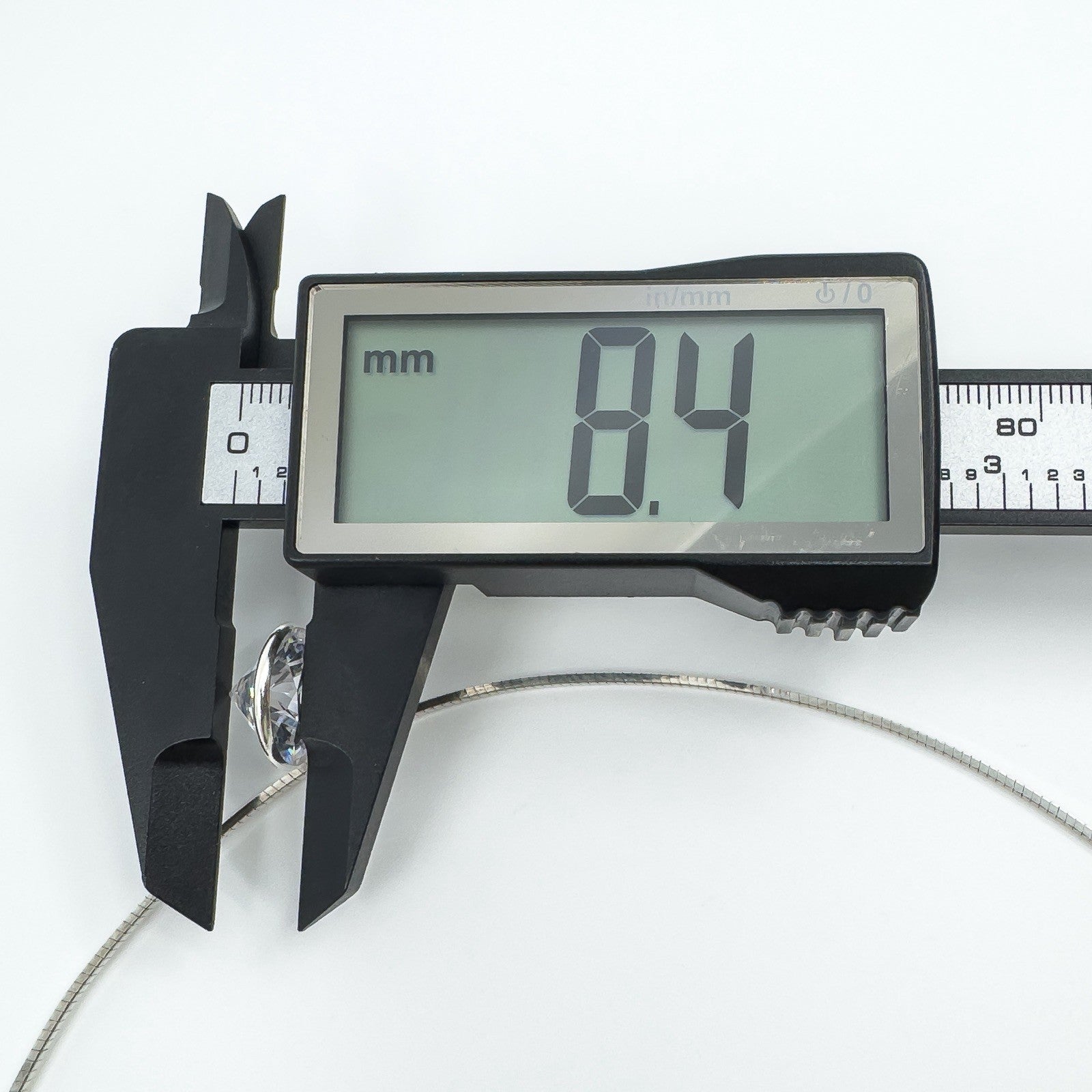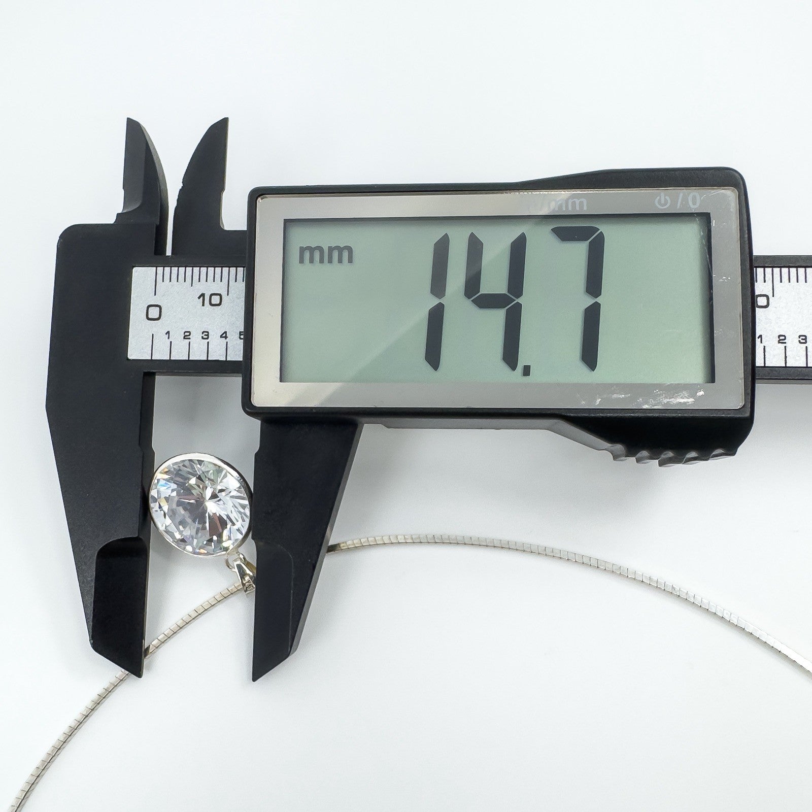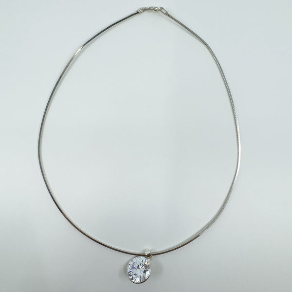 • Sterling silver CZ pendant on 16 inch omega chain• Round CZ in bezel setting (est. ≈10.5 ct)• Stamped 925• Pendant approx. 20.6 × 14.7 × 8.4 mm• Chain thickness approx. 1.1 mm• Combined weight approx. 8 g