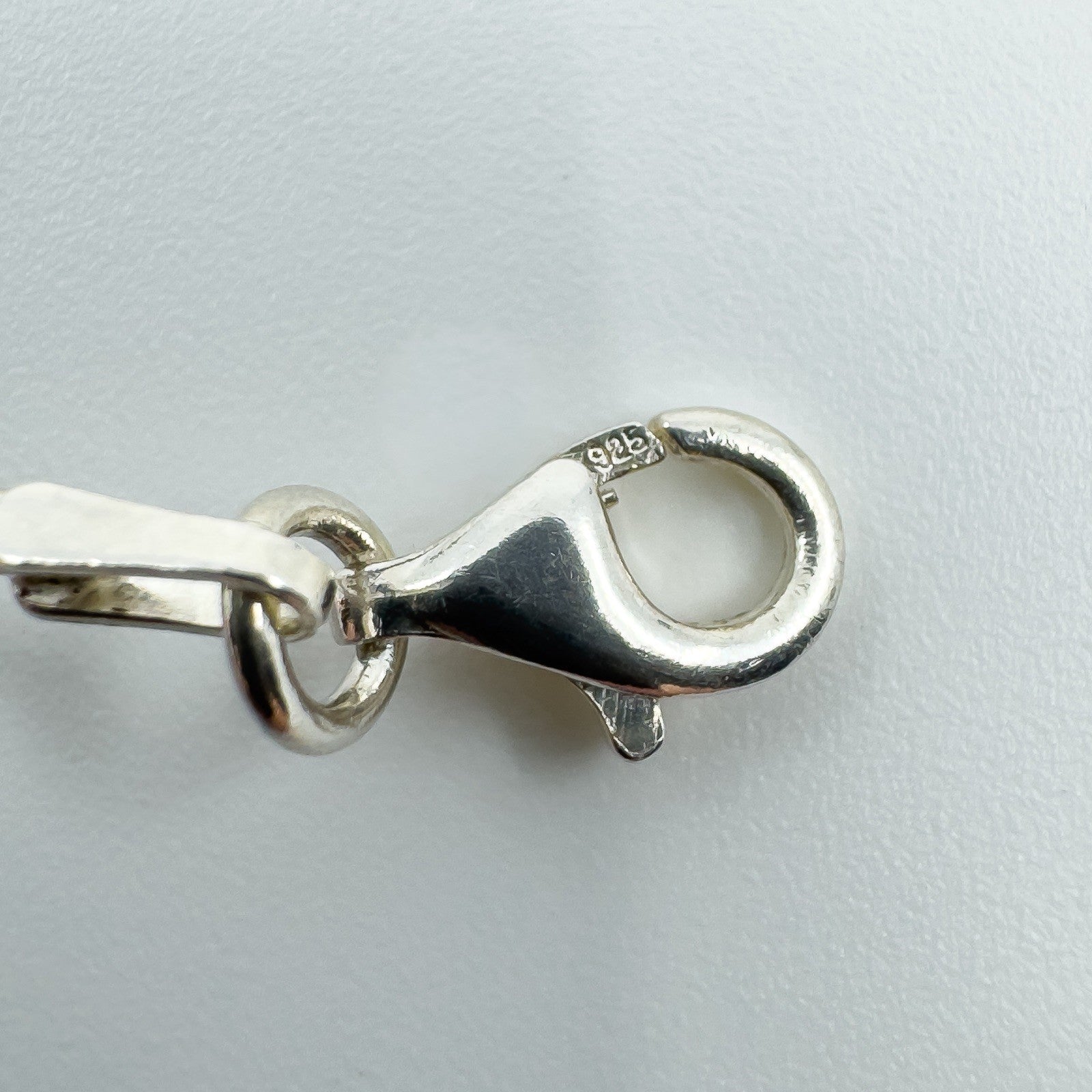 Stamped 925. Pendant measures approx. 20.6 × 14.7 × 8.4 mm; chain thickness approx. 1.1 mm. Combined weight approx. 8 g.