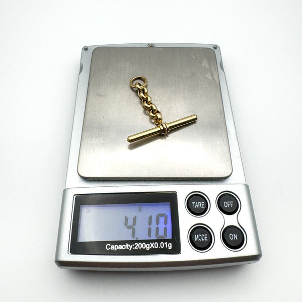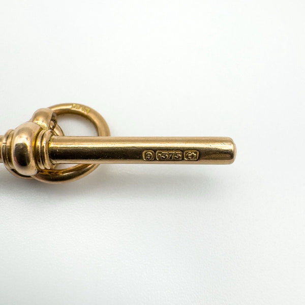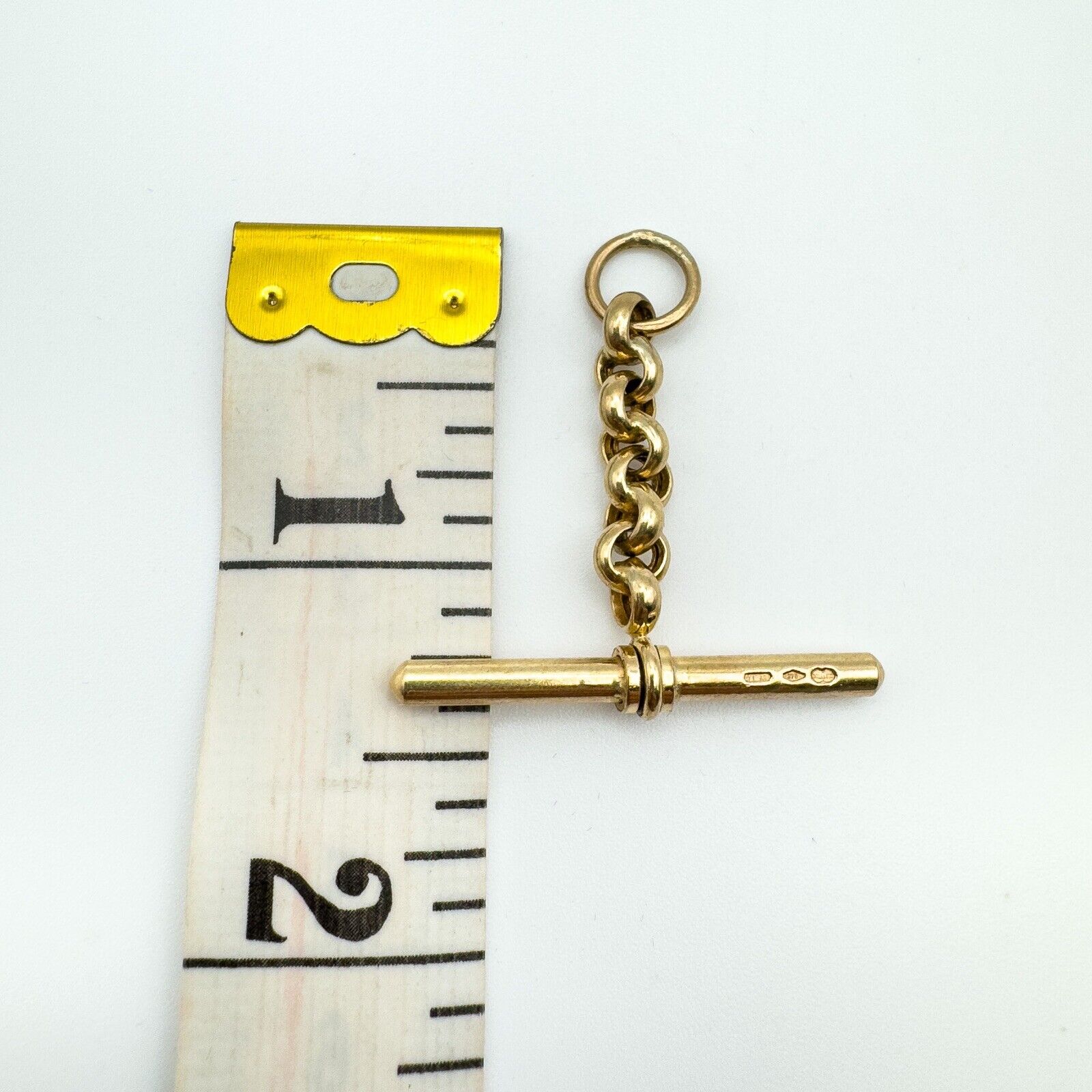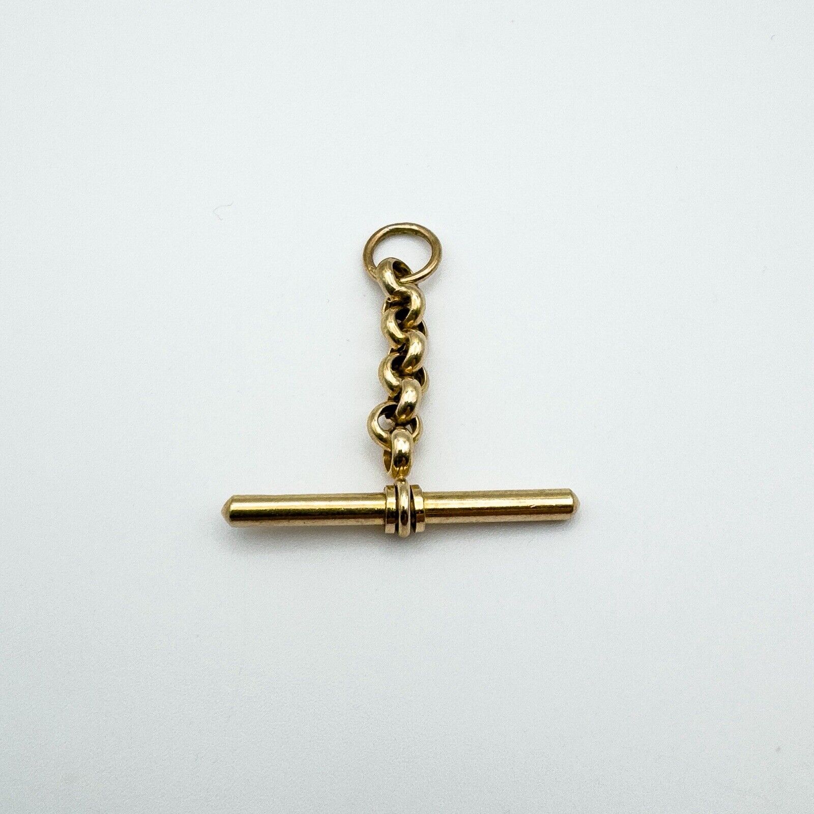 An unusual vintage T-bar pendant charm crafted in solid 9ct gold. Featuring a miniature belcher chain and fitted hoop, this Italian-made piece adds charm and movement to any necklace or bracelet stack.
