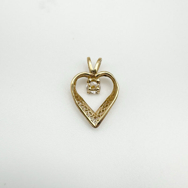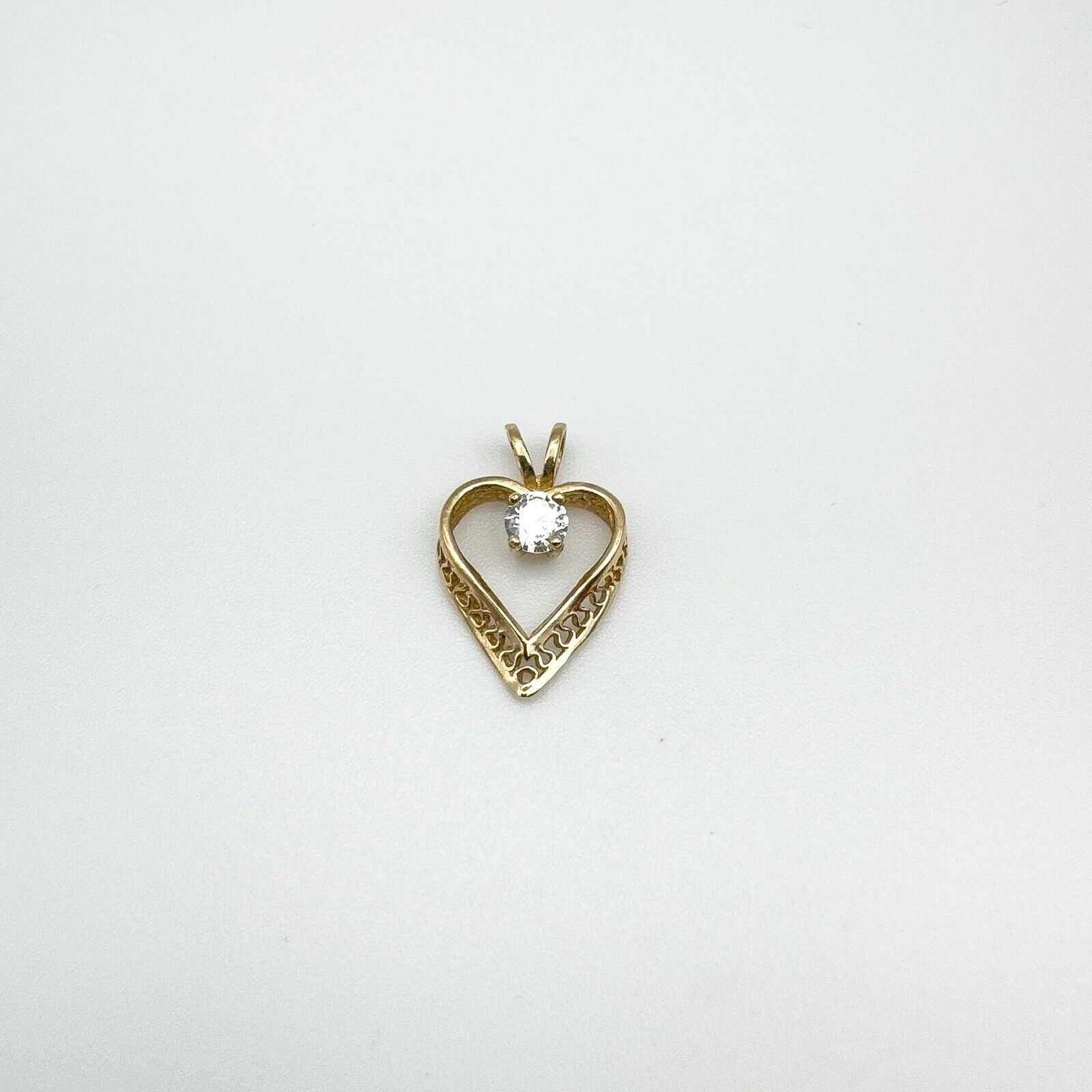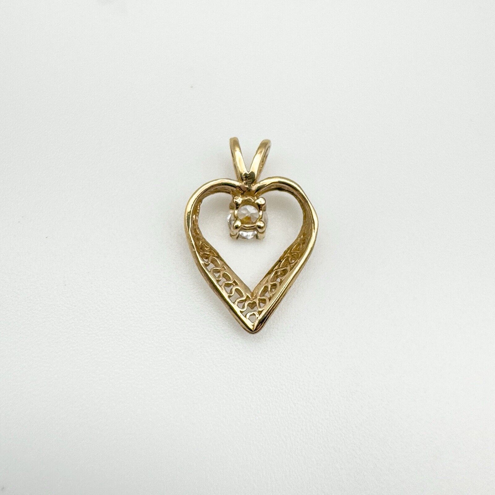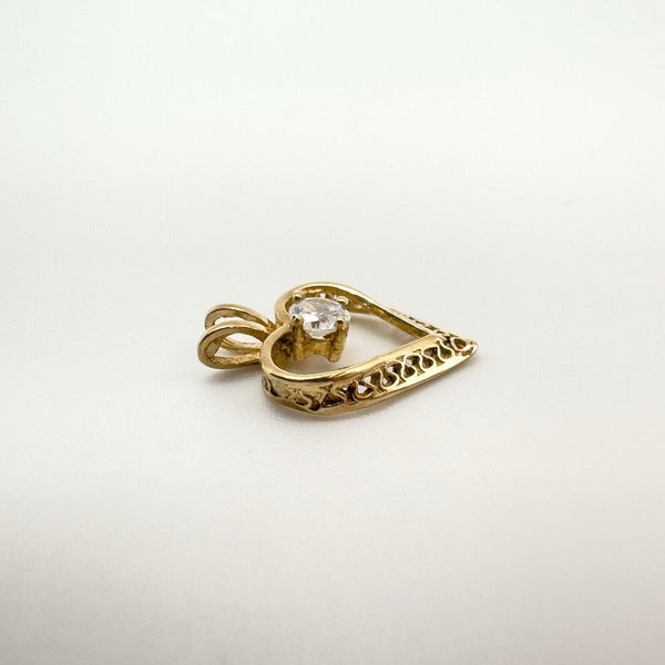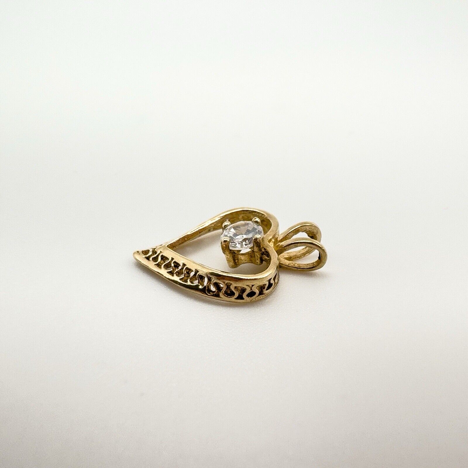 A sweet and classic vintage pendant in solid 9ct gold, shaped into an open heart design and set with a sparkling round-cut CZ. Lightweight and timeless, it’s a lovely everyday piece with gentle sparkle.