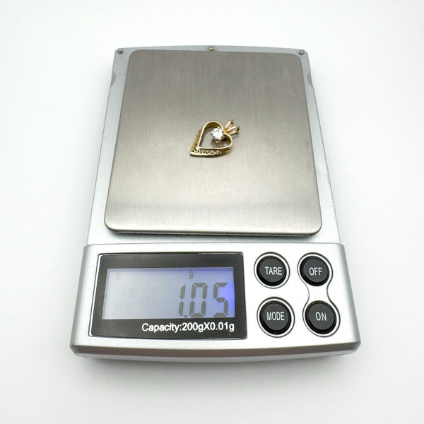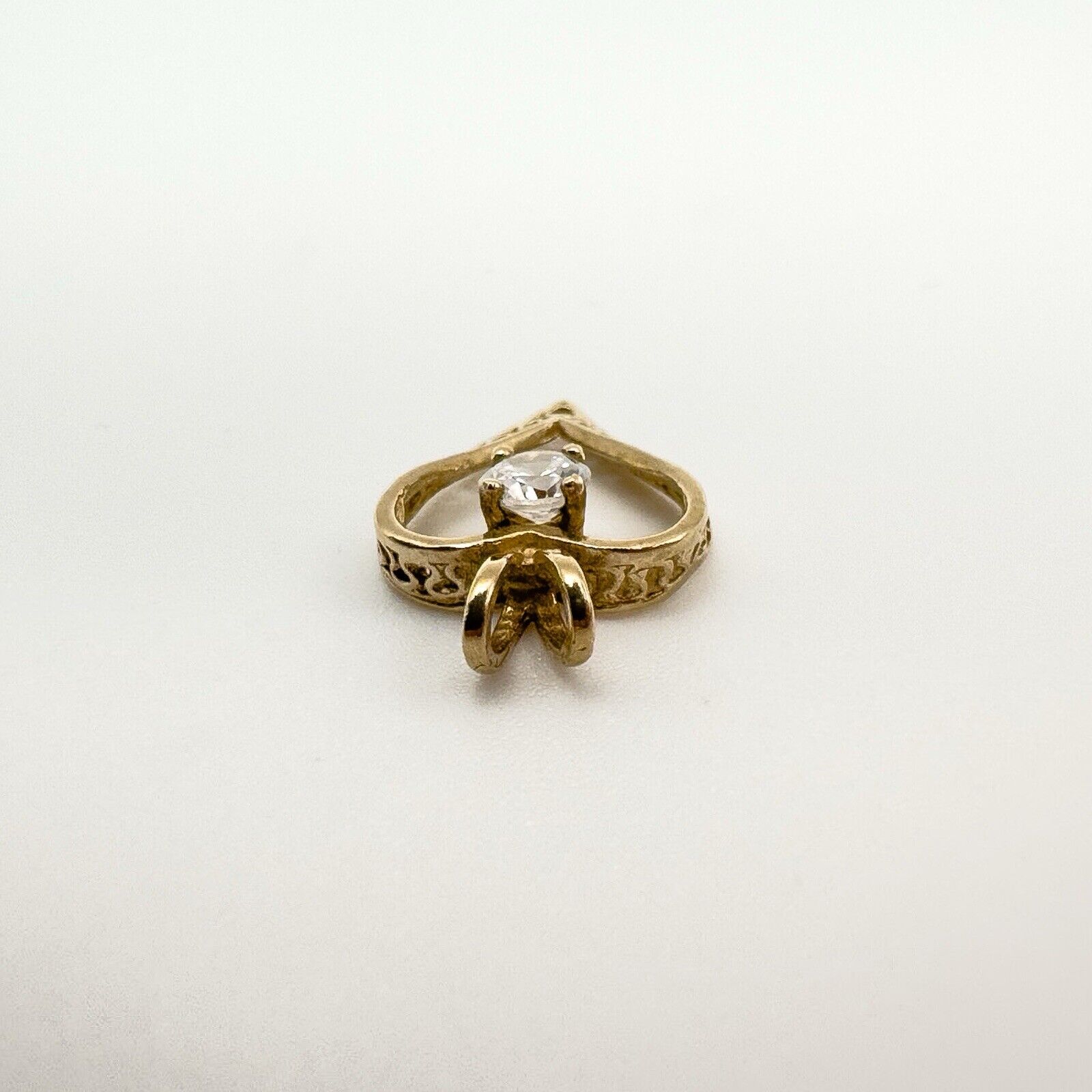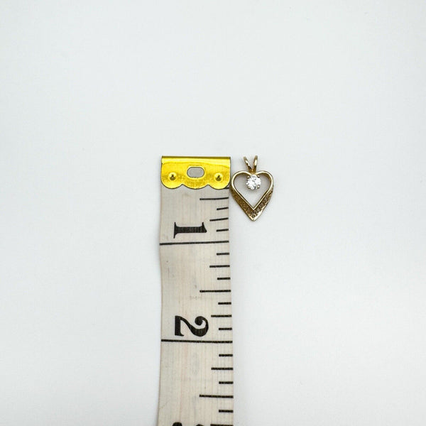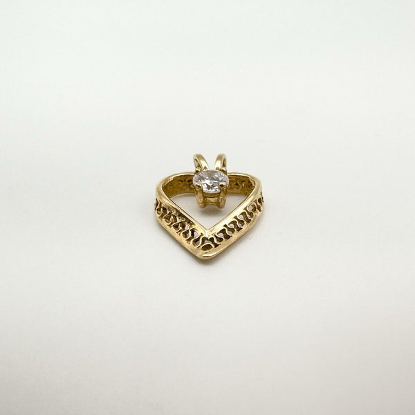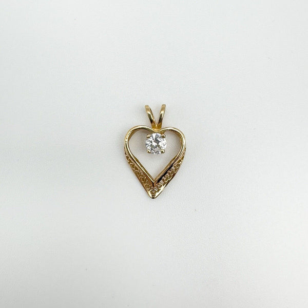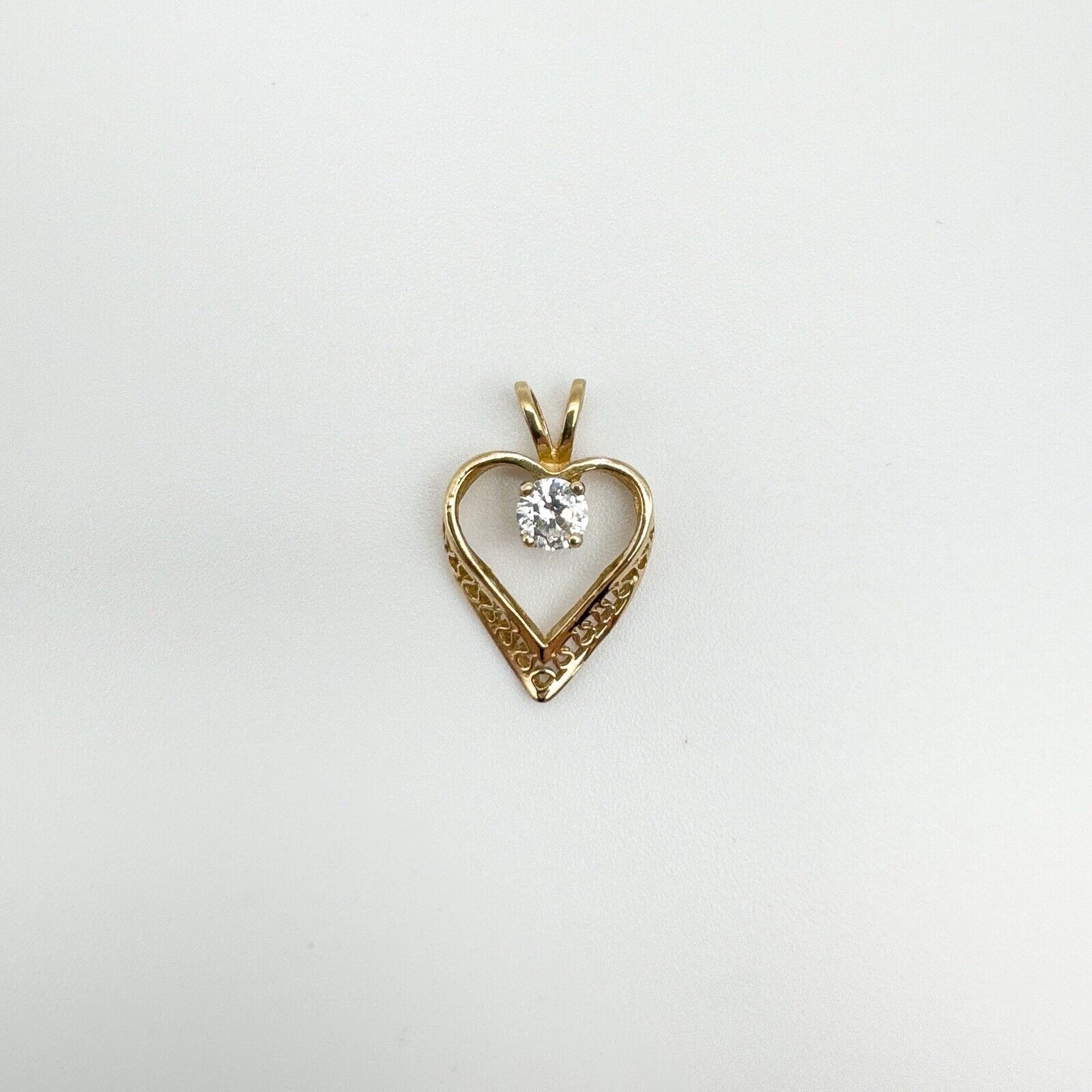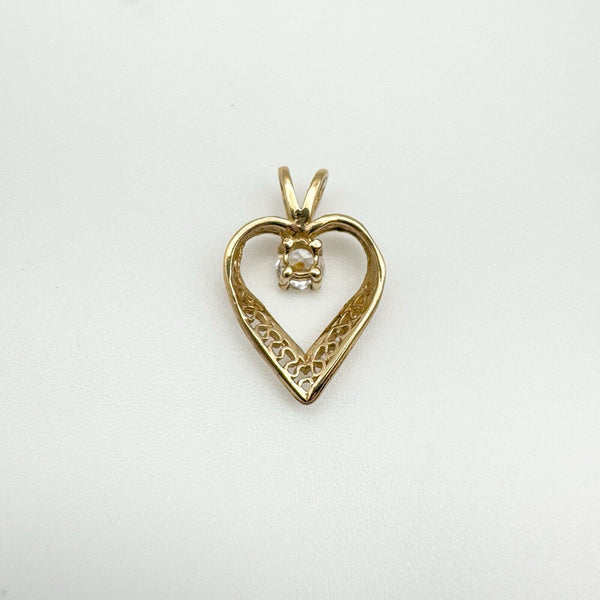 A sweet and classic vintage pendant in solid 9ct gold, shaped into an open heart design and set with a sparkling round-cut CZ. Lightweight and timeless, it’s a lovely everyday piece with gentle sparkle.