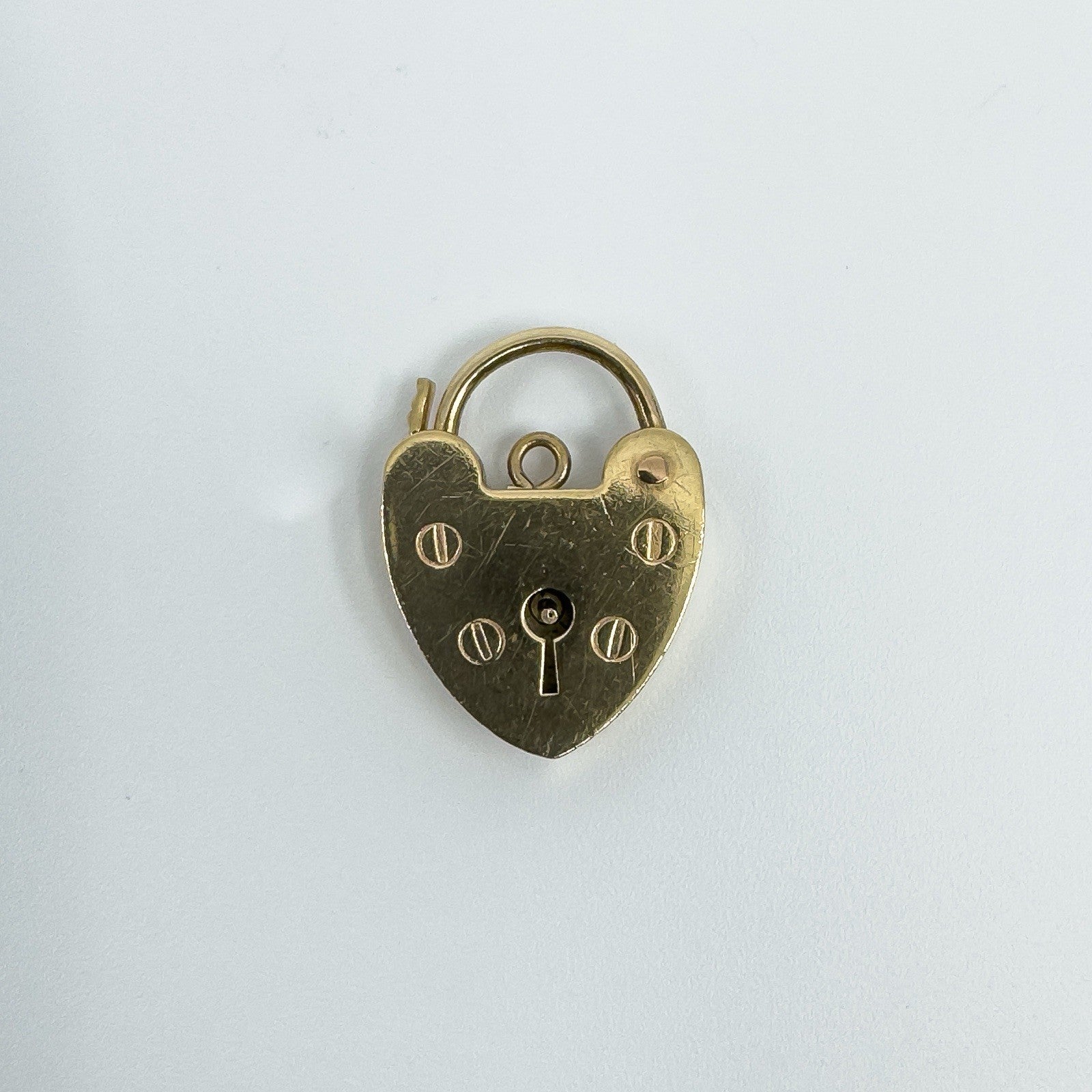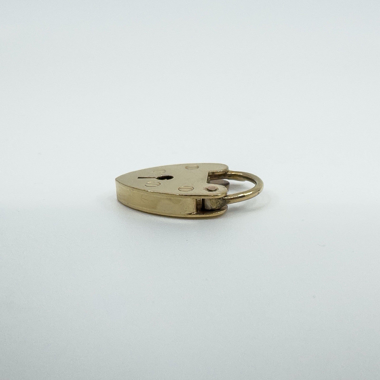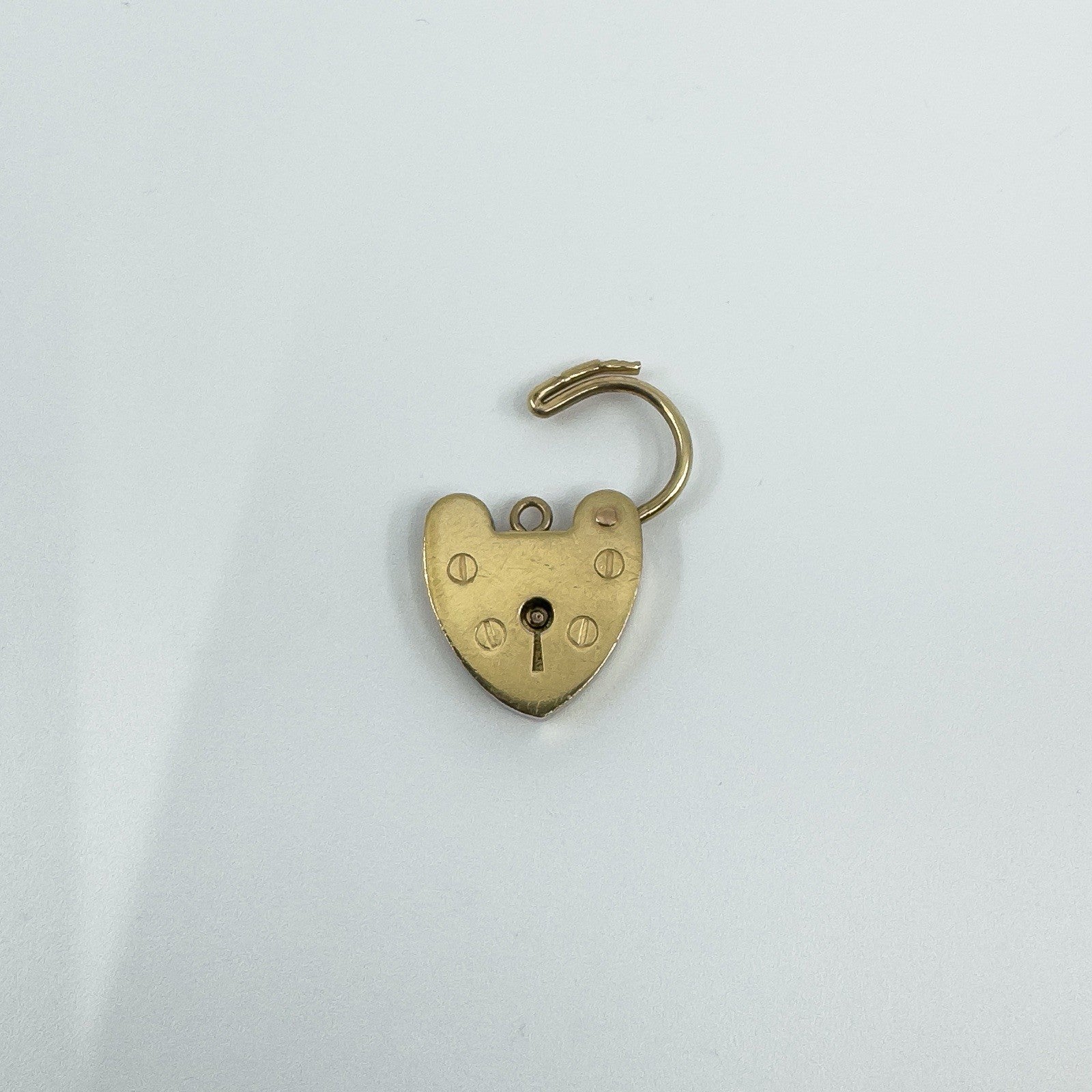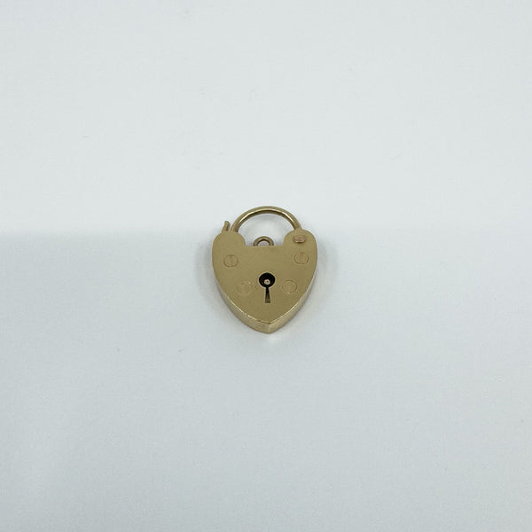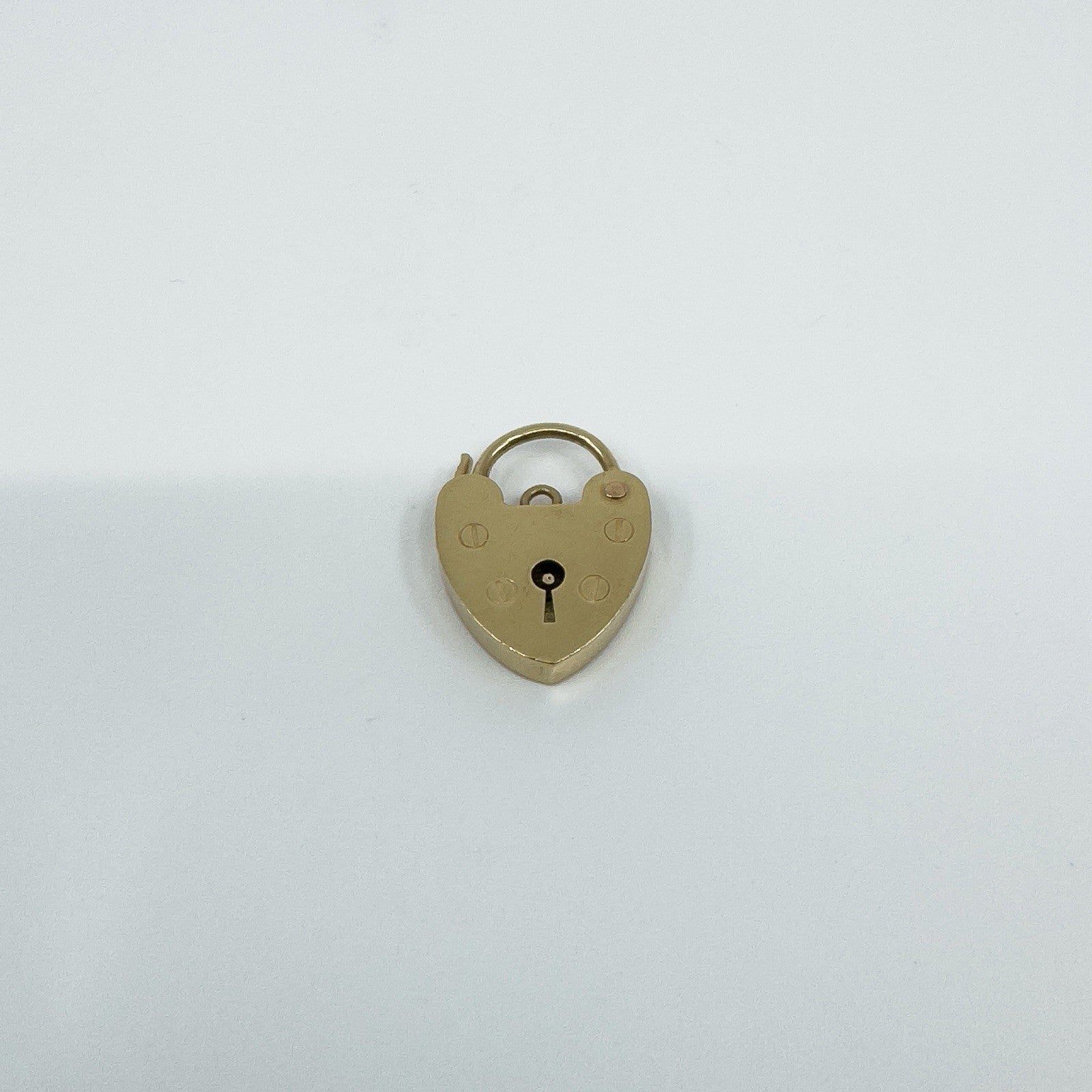 A vintage 9ct gold heart lock padlock pendant charm, a versatile piece perfect for stacking or wearing on a necklace. This timeless design adds character whether worn alone or paired with other charms.