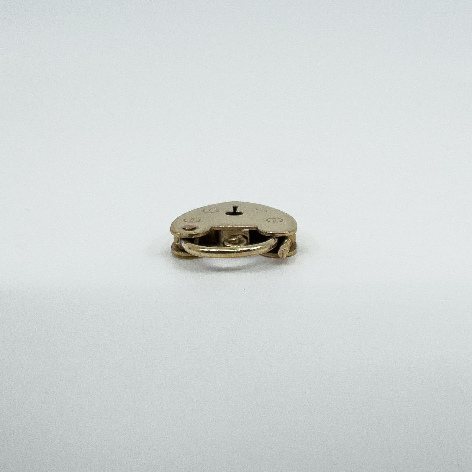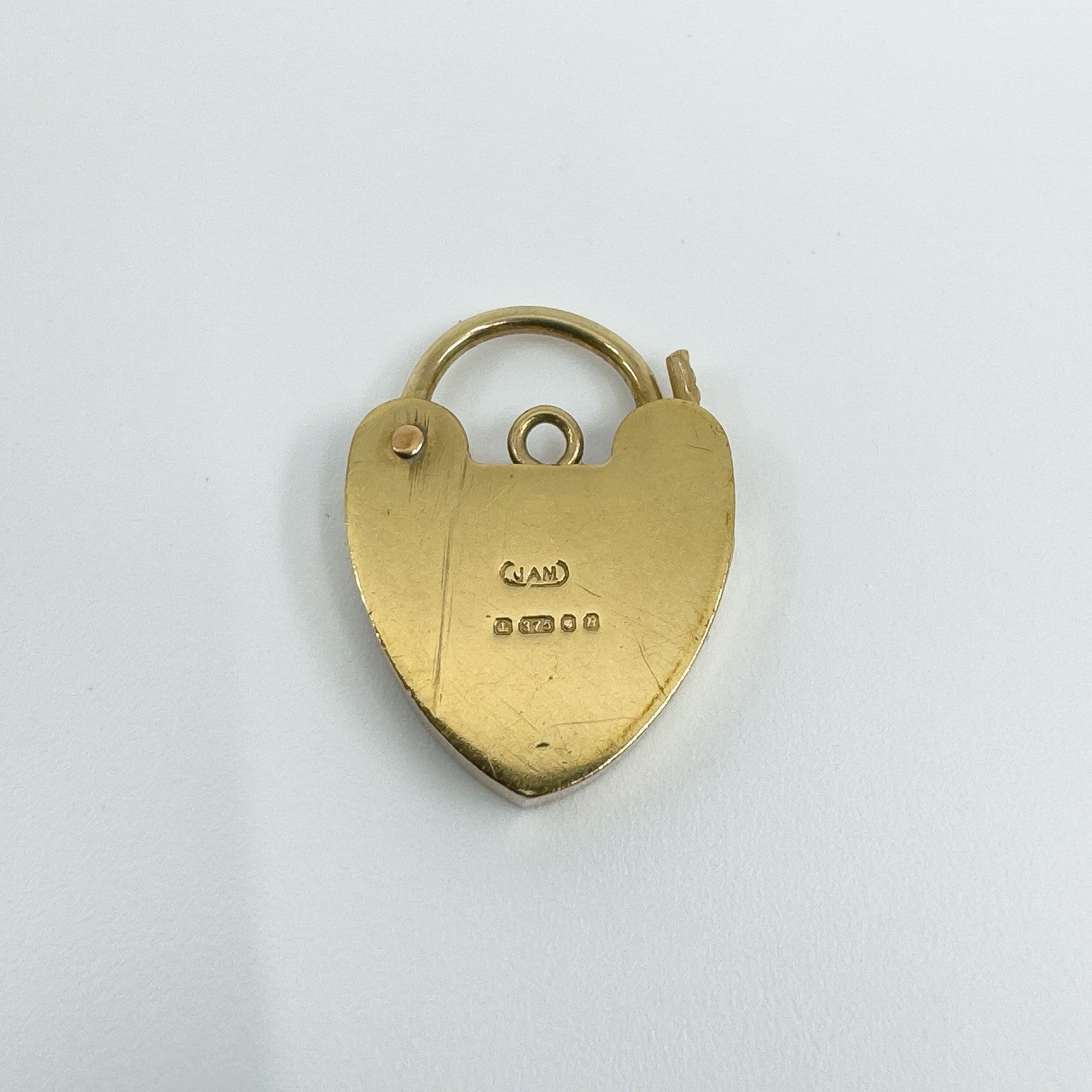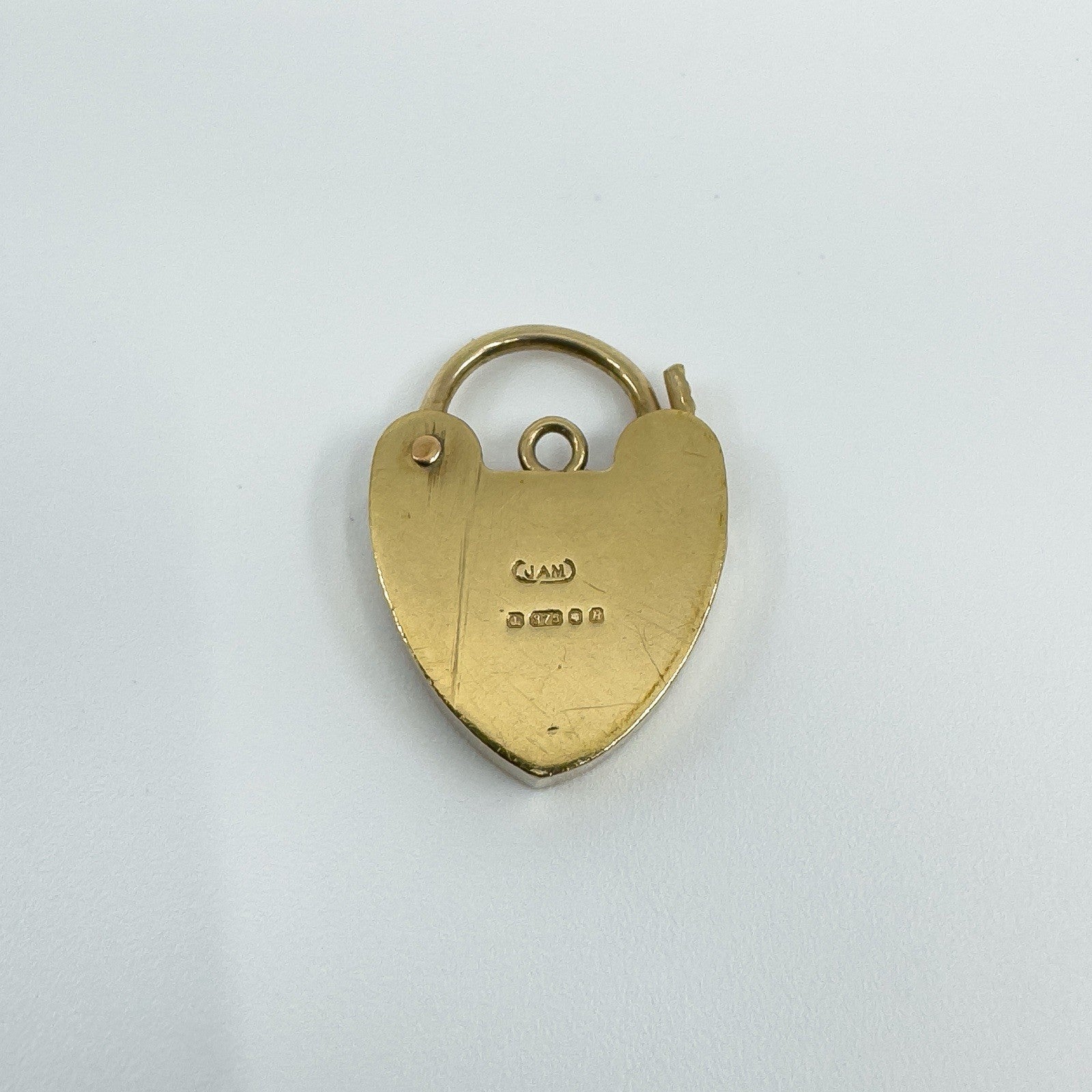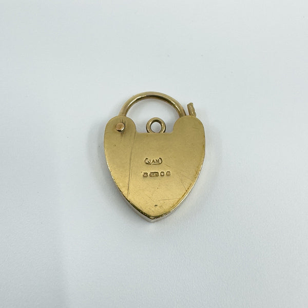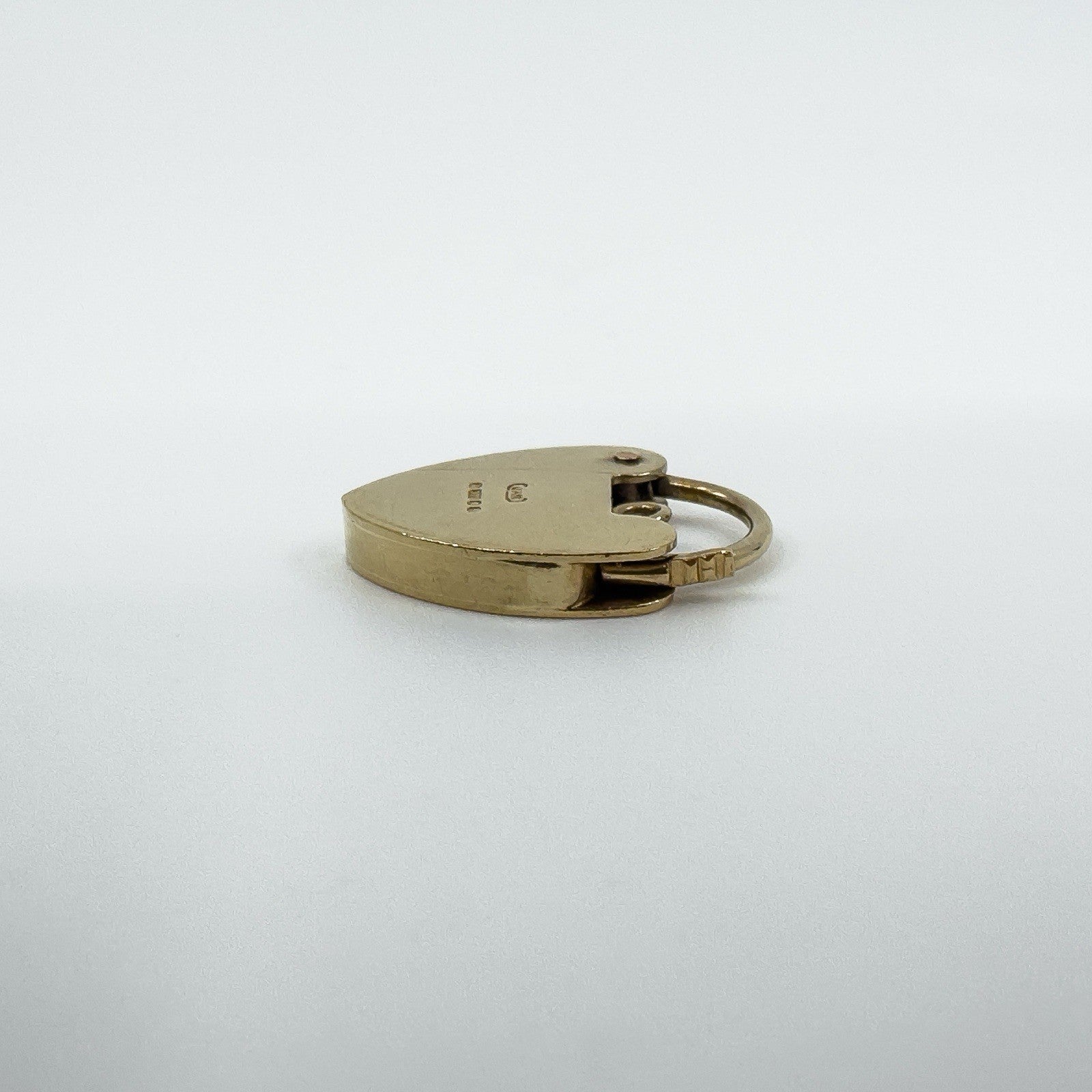 A vintage 9ct gold heart lock padlock pendant charm, a versatile piece perfect for stacking or wearing on a necklace. This timeless design adds character whether worn alone or paired with other charms.