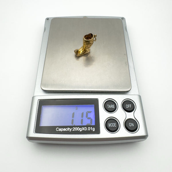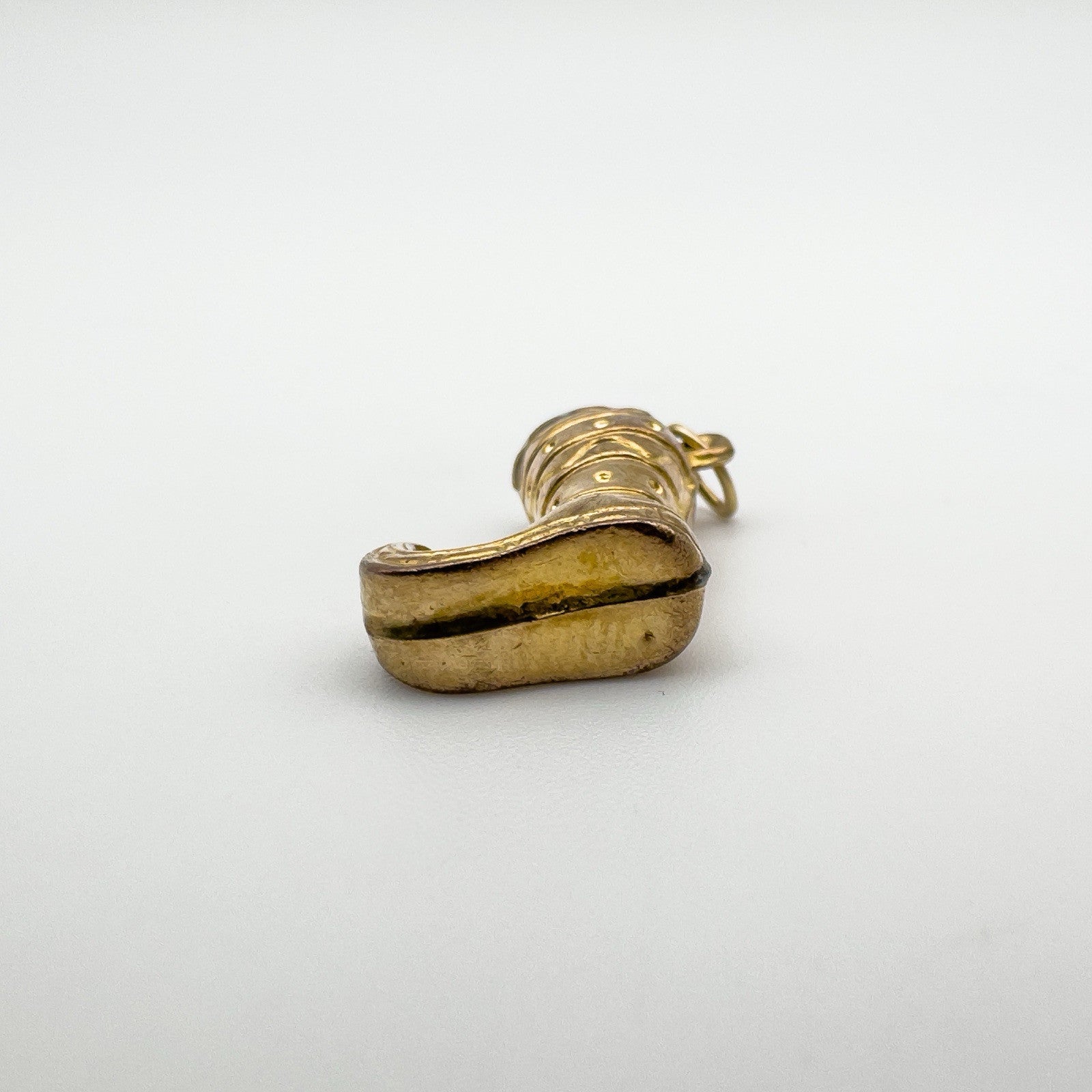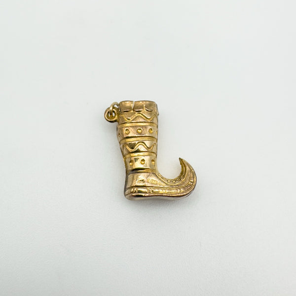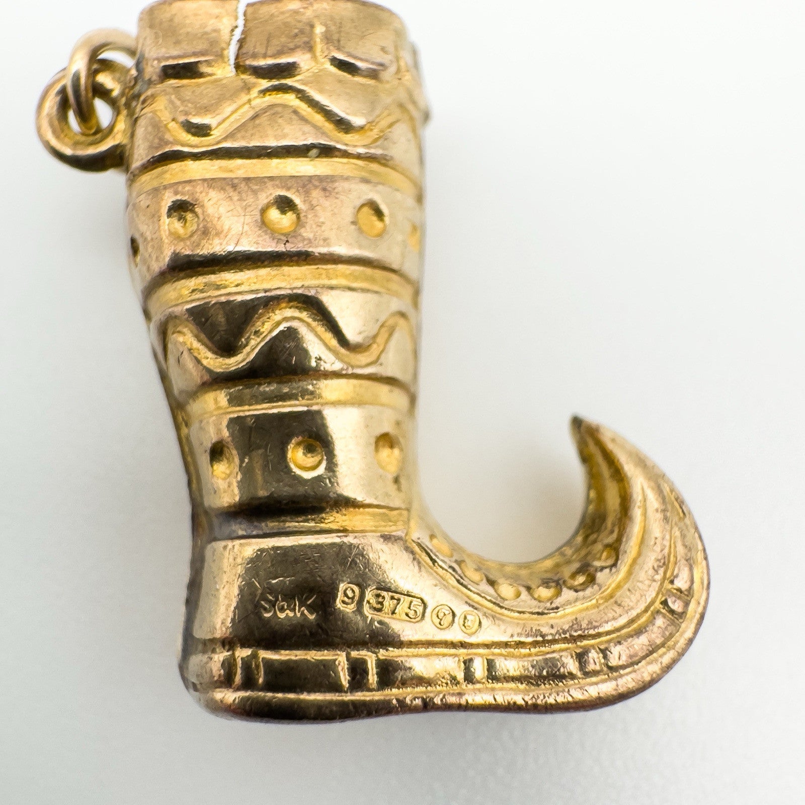 A quirky and unusual vintage charm featuring a Persian or jester-style boot, crafted in solid 9ct gold. Hallmarked in London 1971, it’s a lovely collector’s piece with playful character.