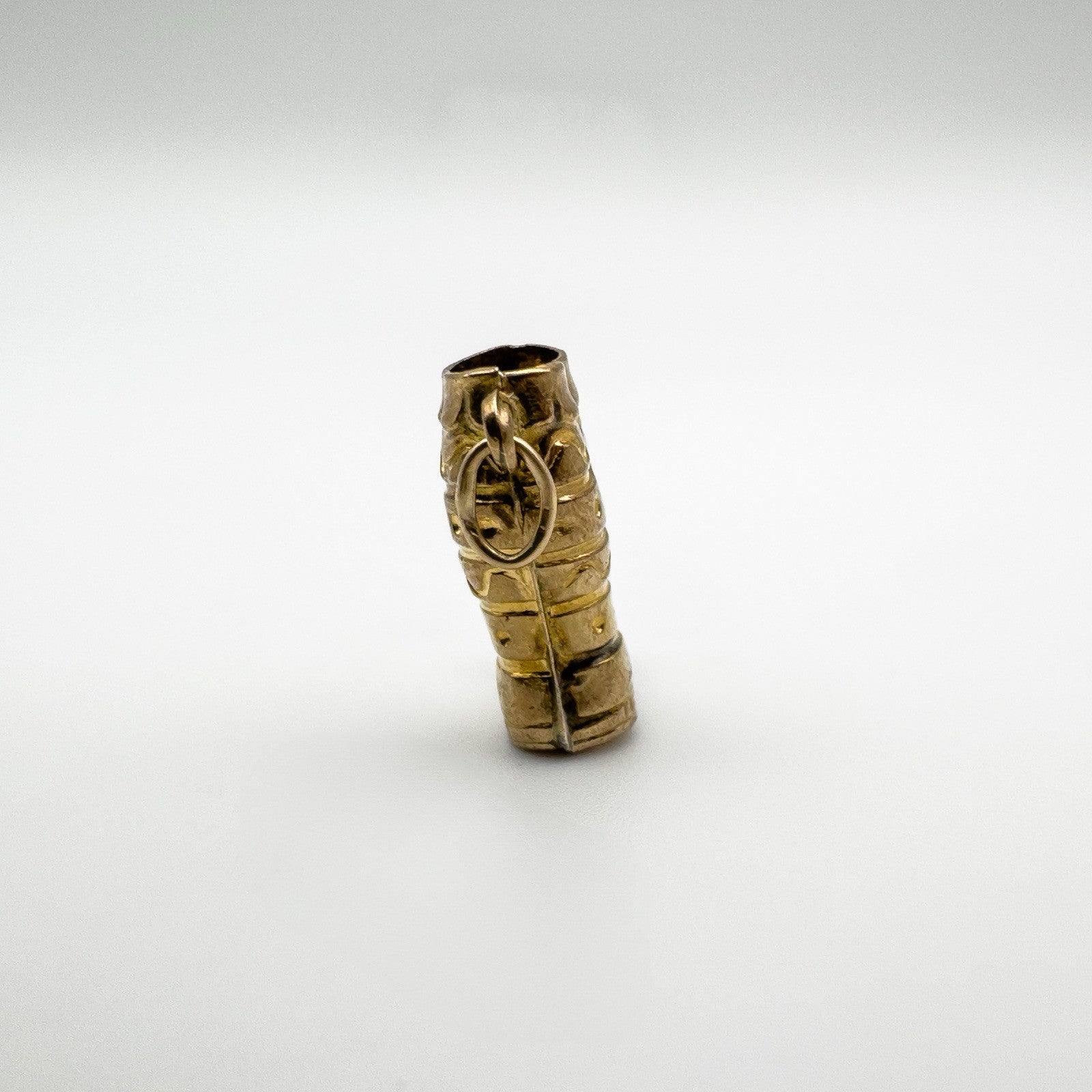 Complete with a small hoop, it can be worn on a necklace or bracelet. A charming addition to any vintage gold collection.