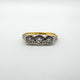 Set with 12x round cut dark blue Sapphires in a prong setting in a heart shape with a cut out centre