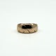 A large, chunky vintage sterling silver secret locket ring with an engraved foliate design to the hinged lid.