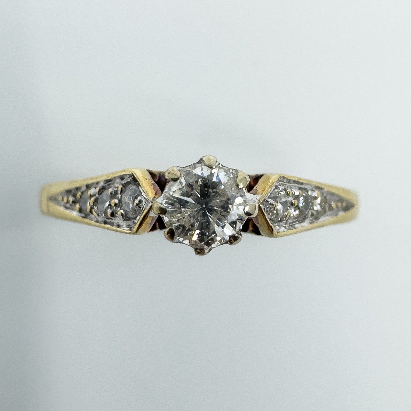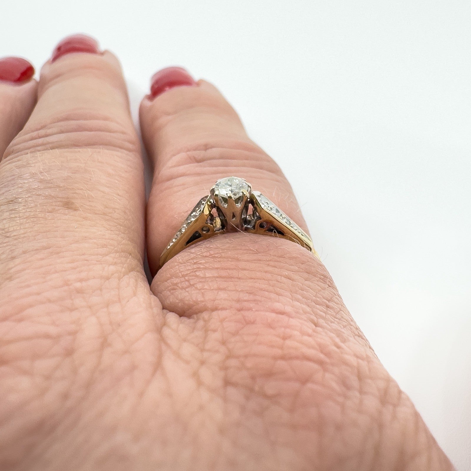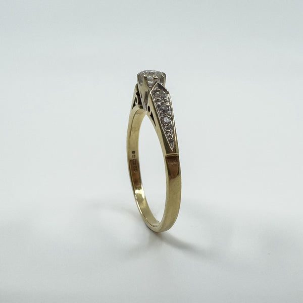 Vintage 9ct gold 0.20ct diamond ring that works well as a delicate engagement ring or a stacking ring.