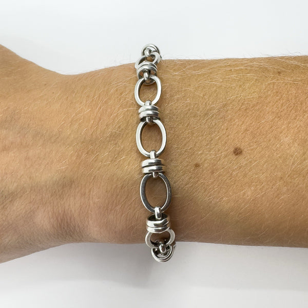 A sterling silver oval links chain bracelet, designed with smooth open links and finished with a secure lobster clasp. A versatile and classic piece that can be worn alone or layered with other bracelets.