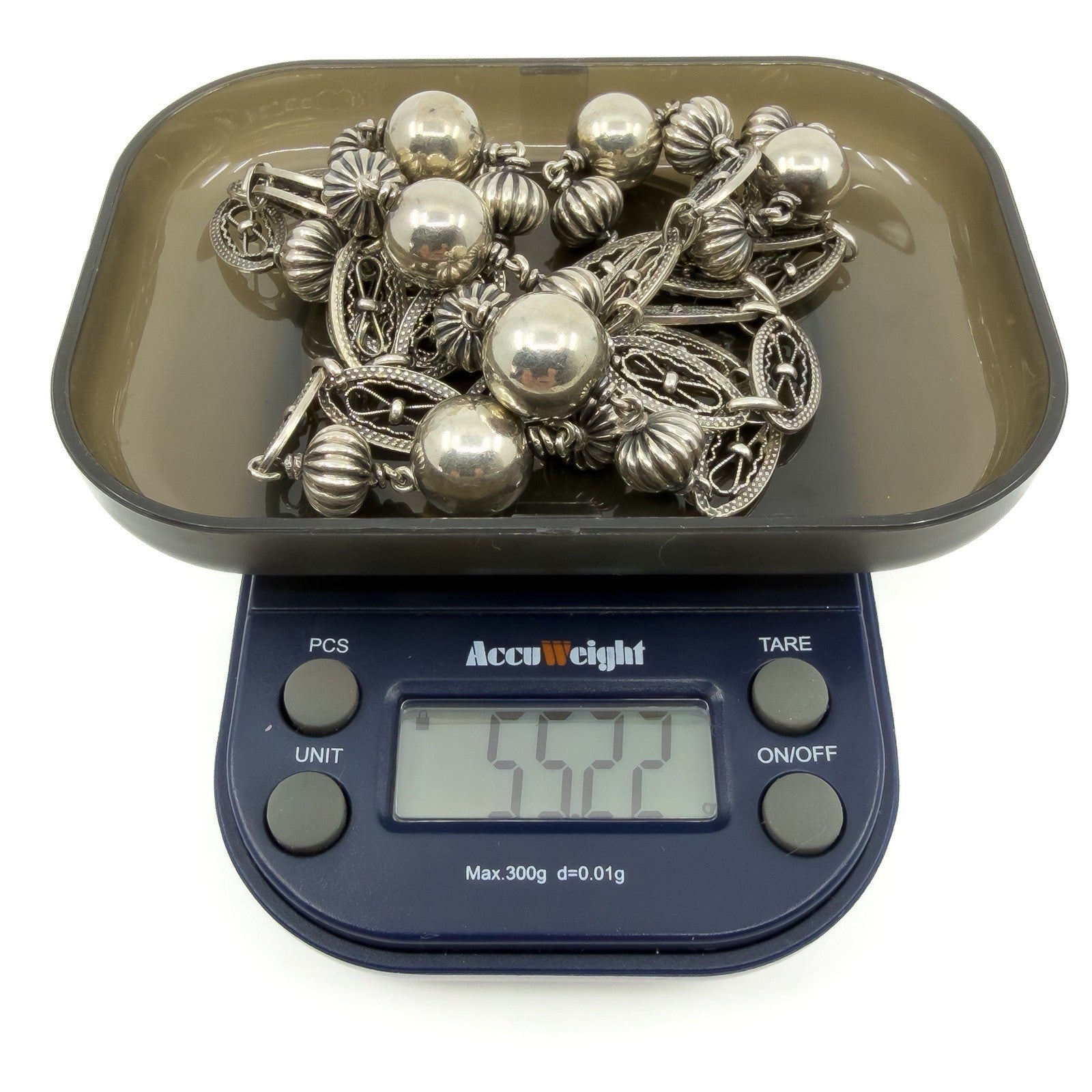 Antique Victorian 800 Silver Fancy Link Beaded Ball Necklace 30”