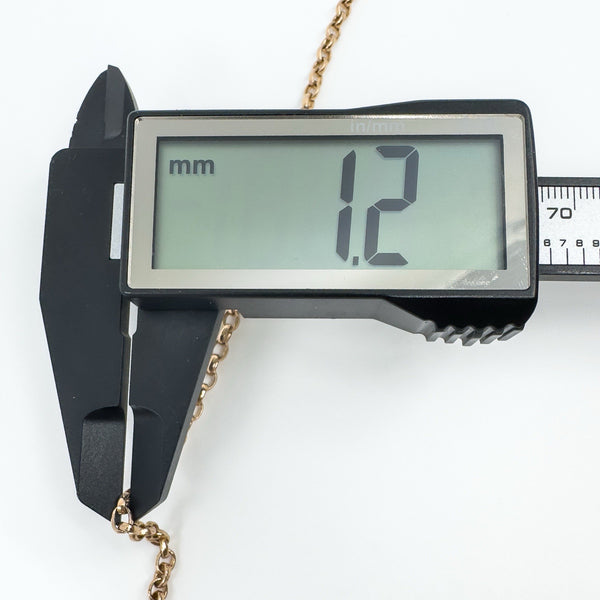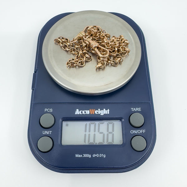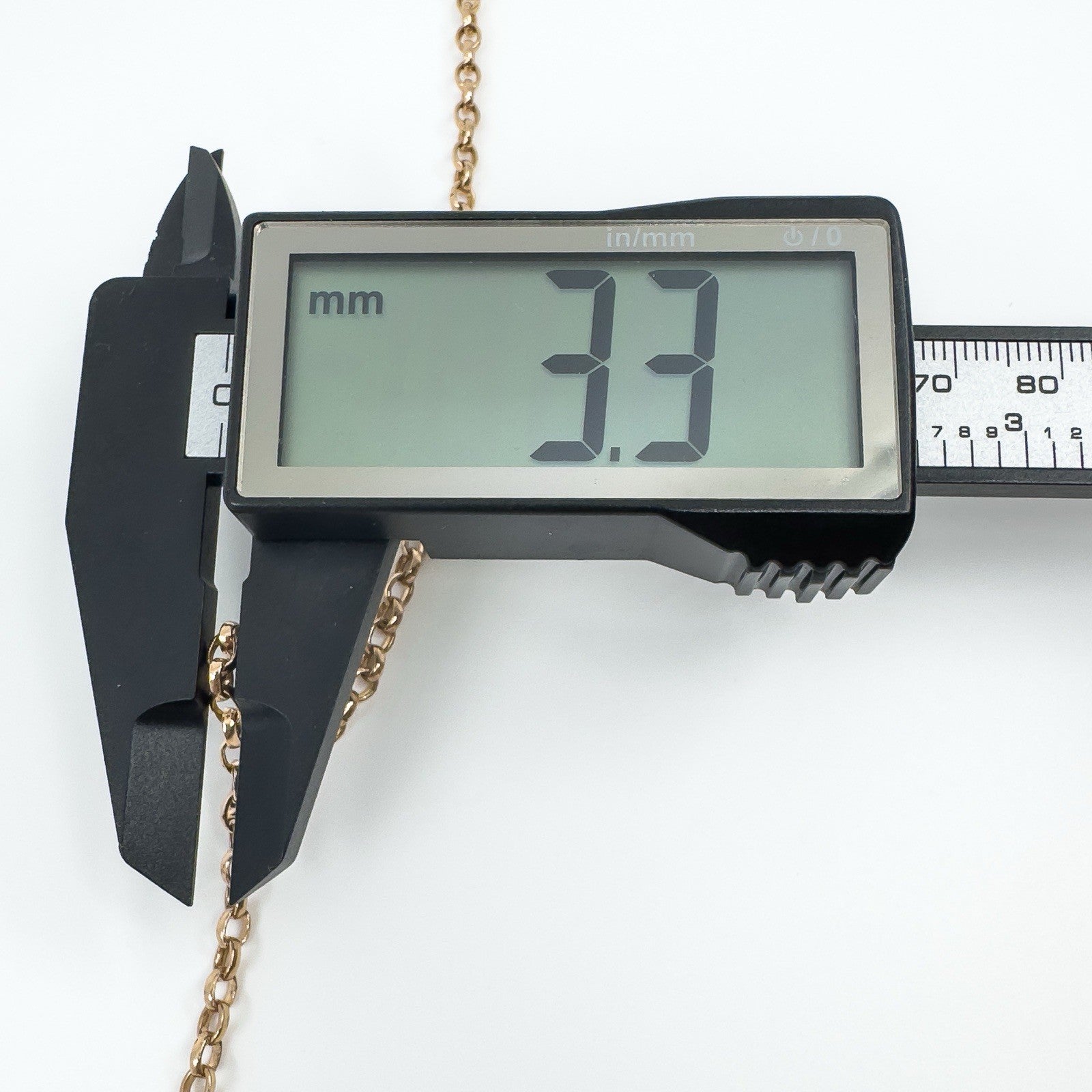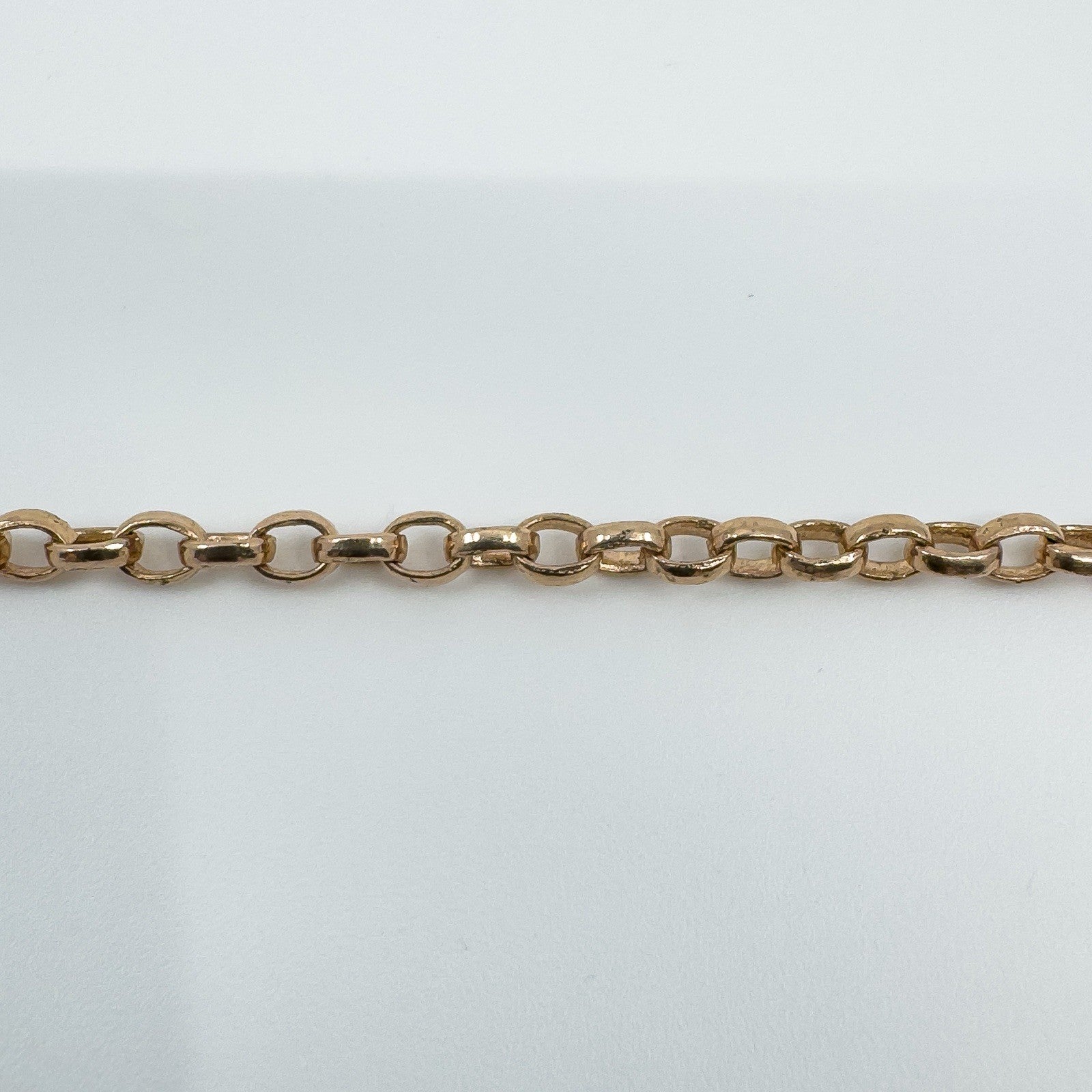 A vintage 9ct rose gold belcher/rolo chain necklace, complete with double dog clips. Measuring 15.8 inches in length, this versatile chain can be worn alone, stacked, or used as a charm necklace or extender.