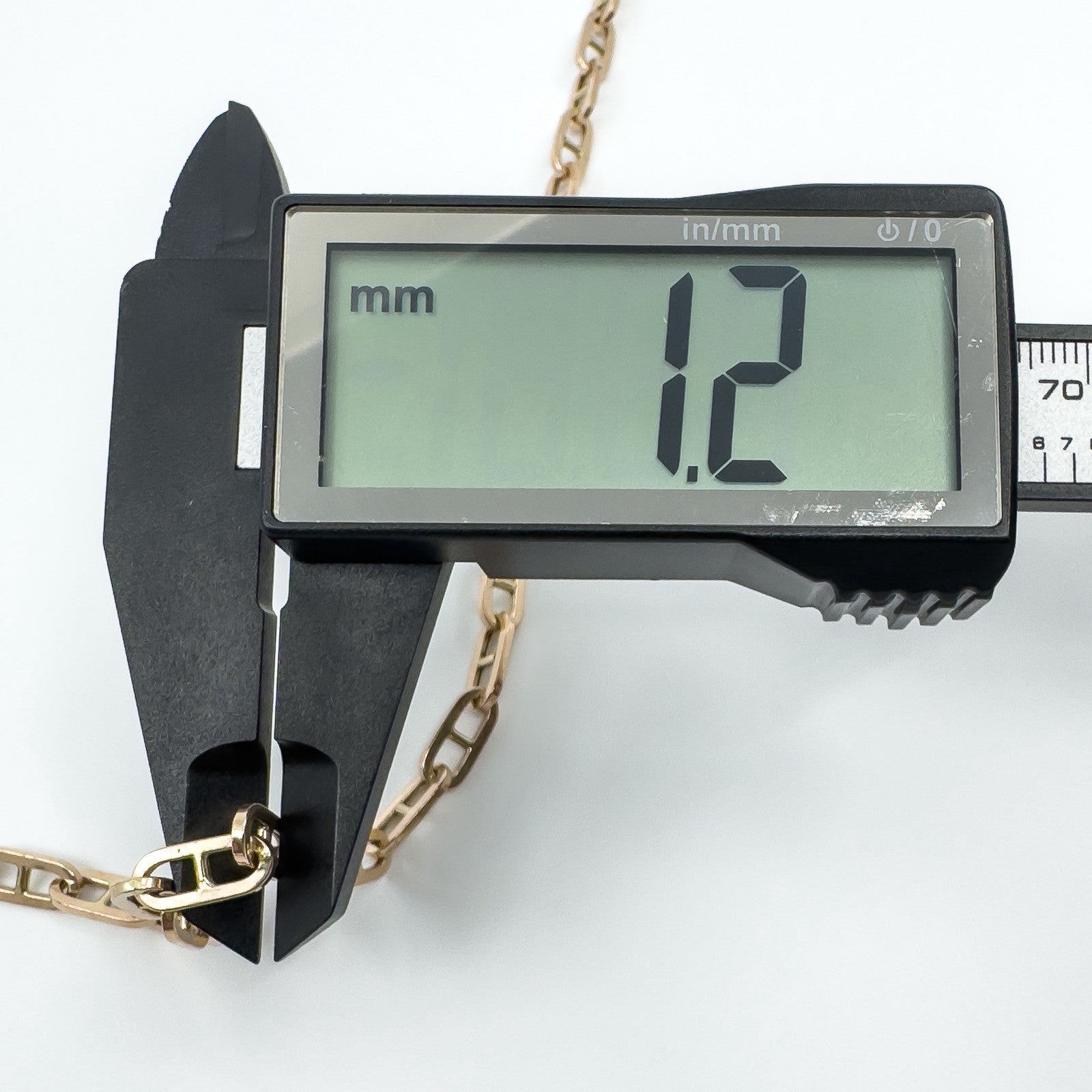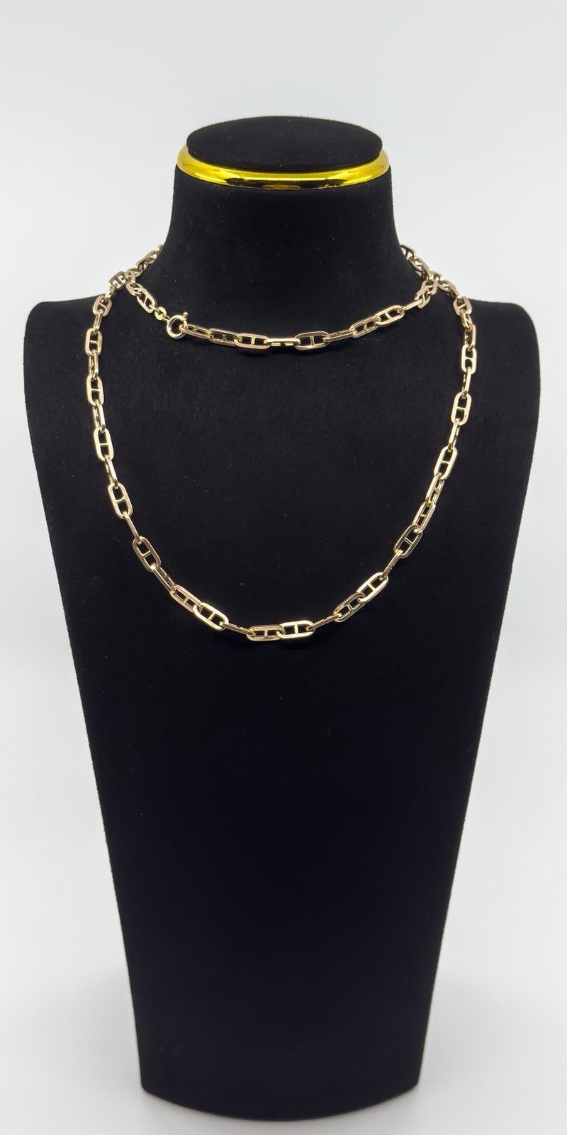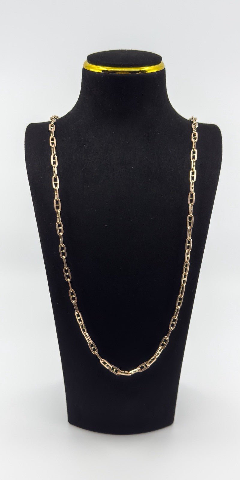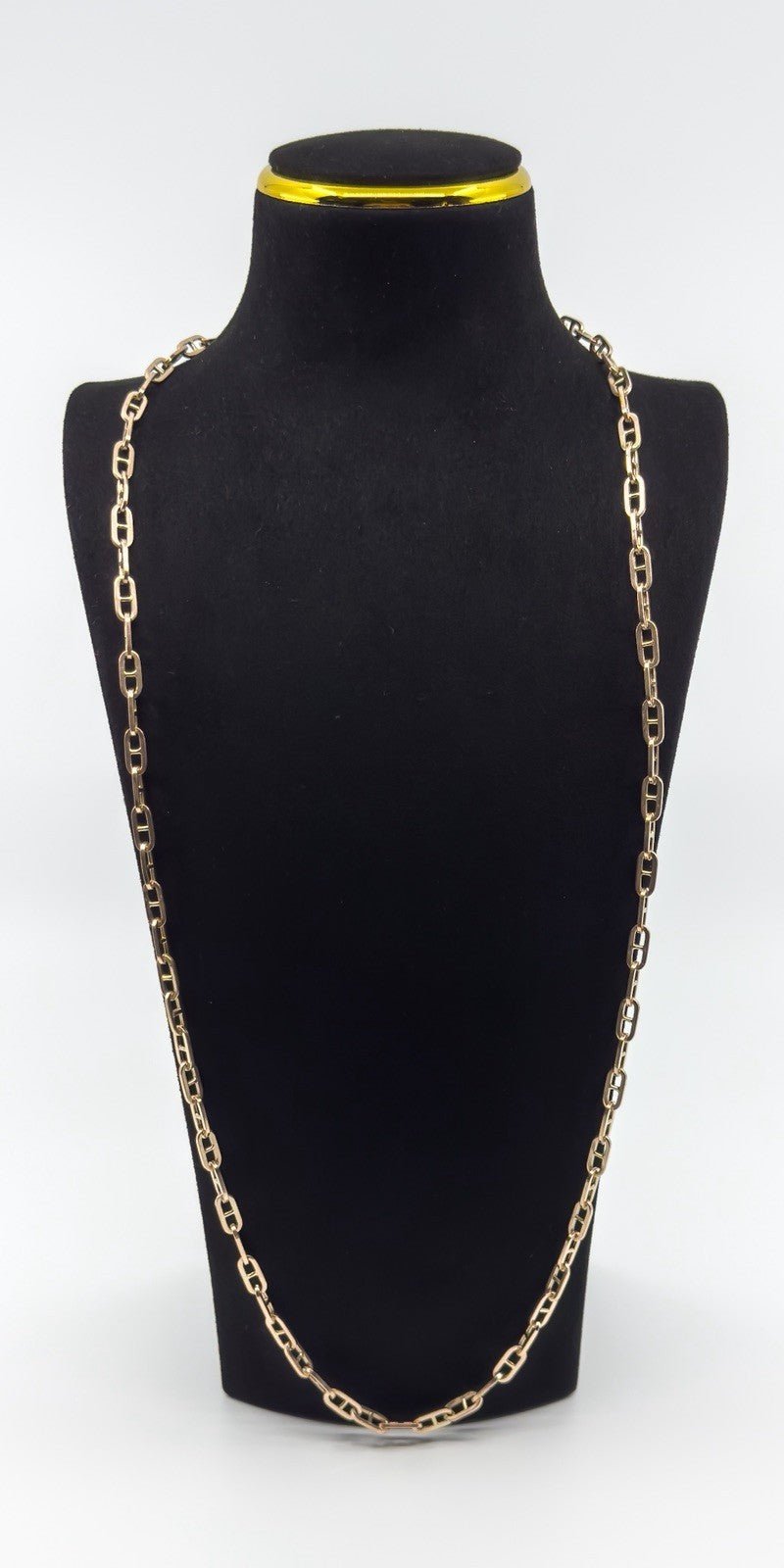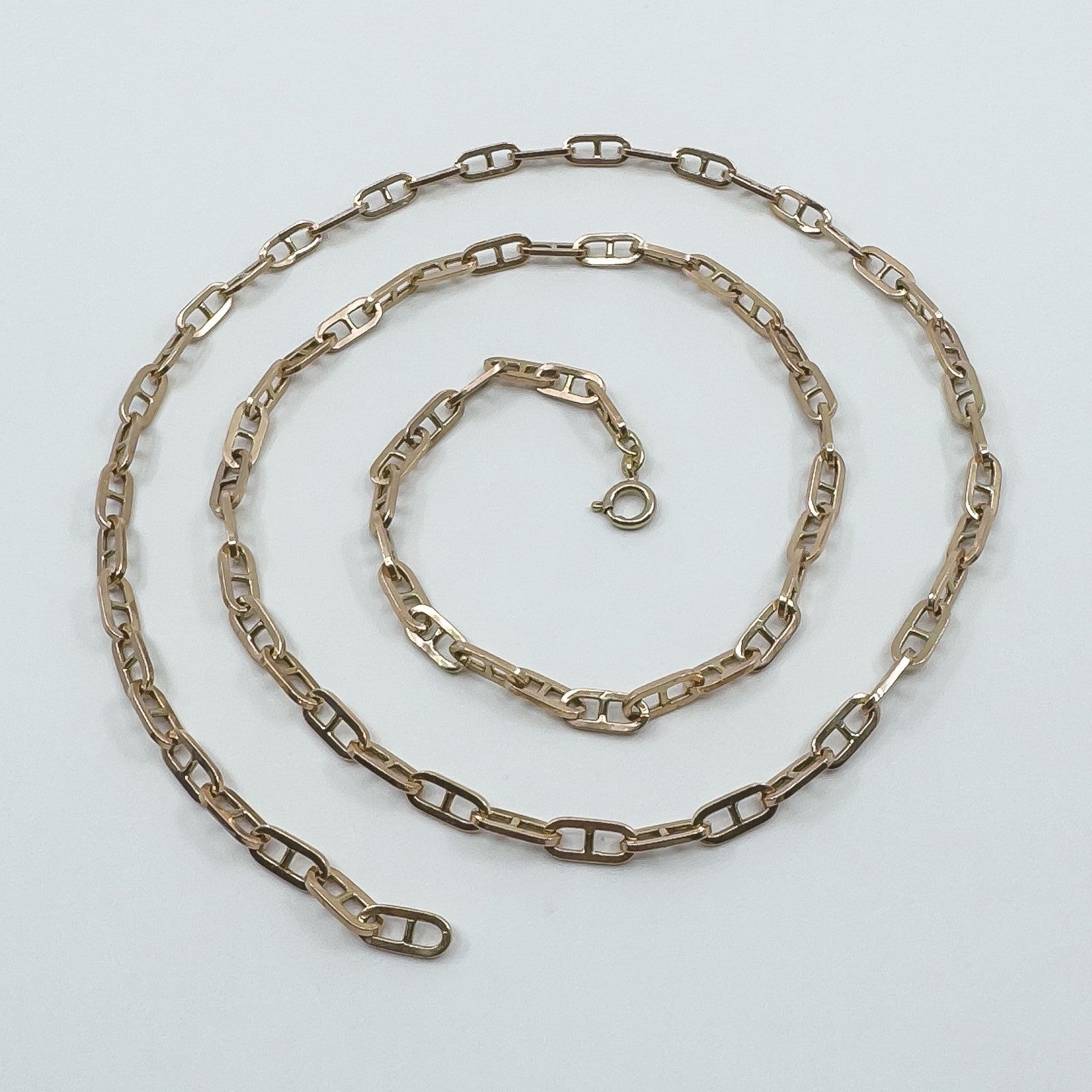 A vintage 9ct rose gold mariner link chain necklace in a longer 32.5 inch length, so it layers easily and sits well over knitwear.
