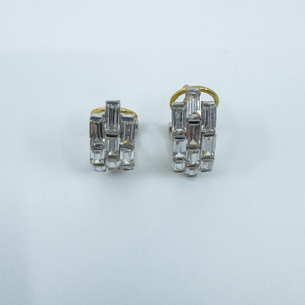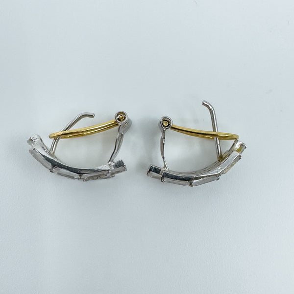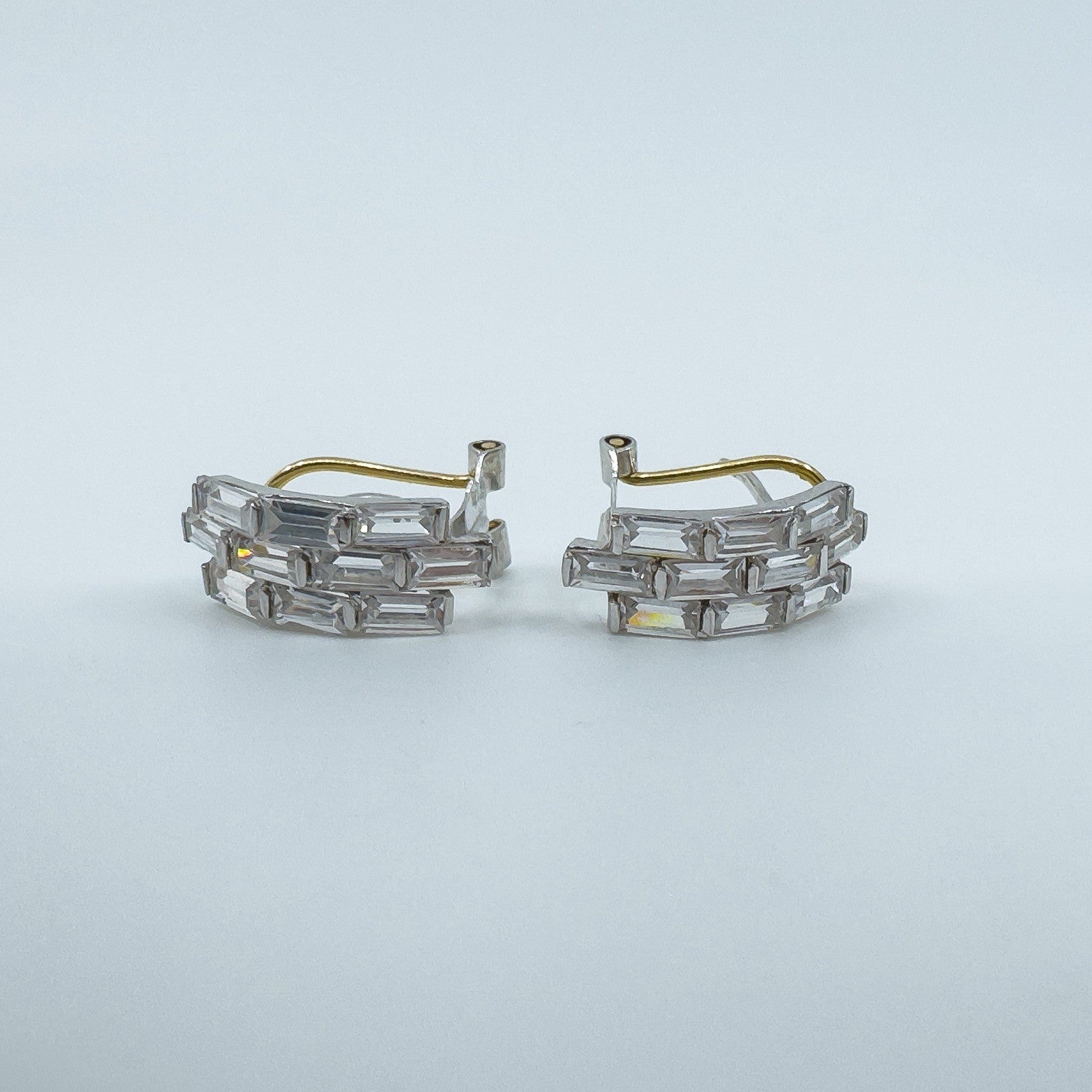 18ct Gold Rectangular CZ Baguette Lever Back Earrings 750