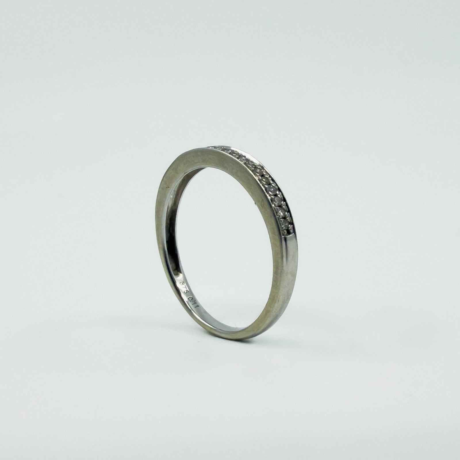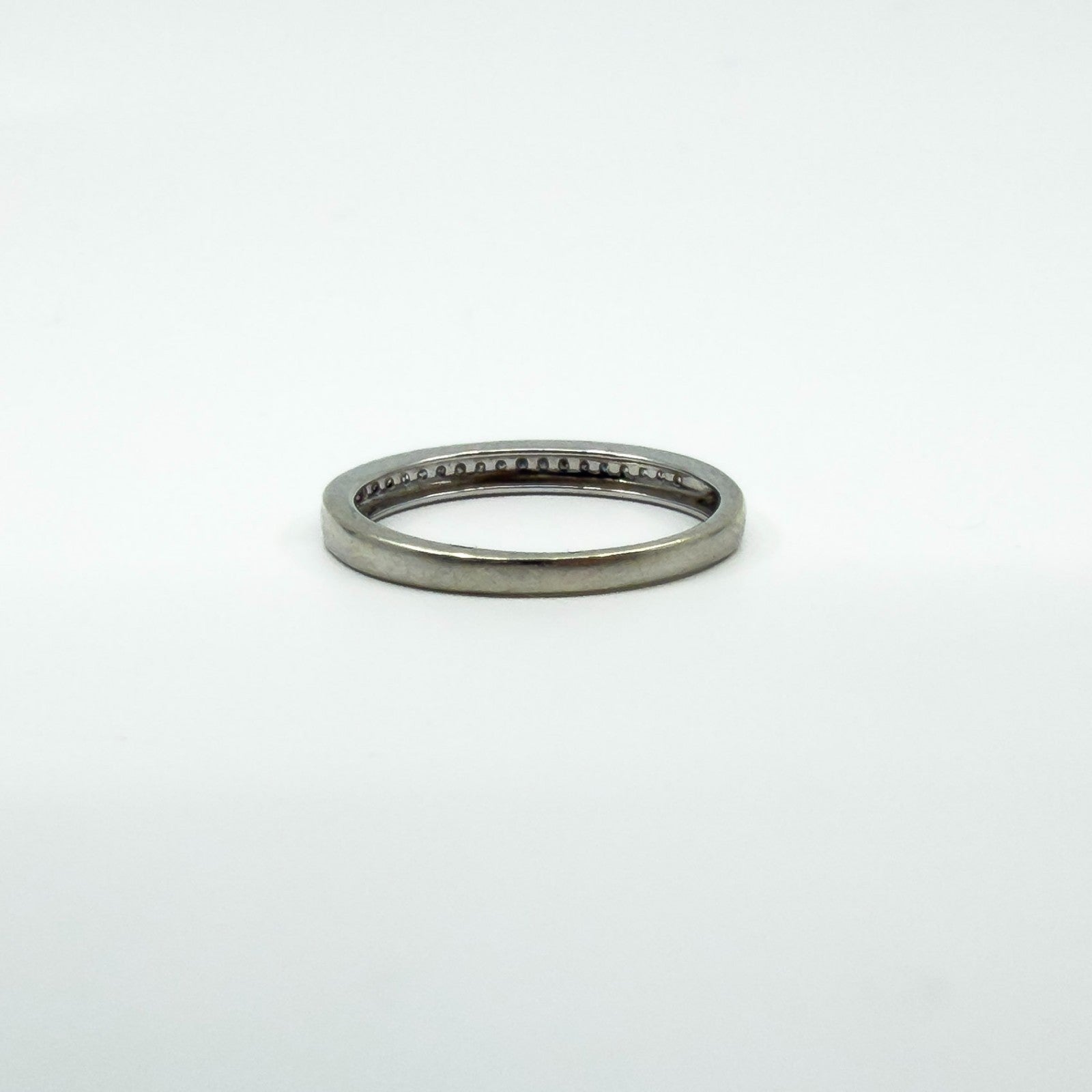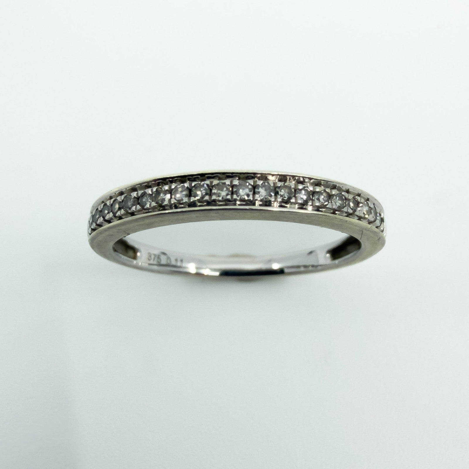 A slim 9ct white gold diamond band with a low profile fit, designed for comfortable everyday wear. The diamonds are flush set halfway around the band, giving a clean, neat finish.
