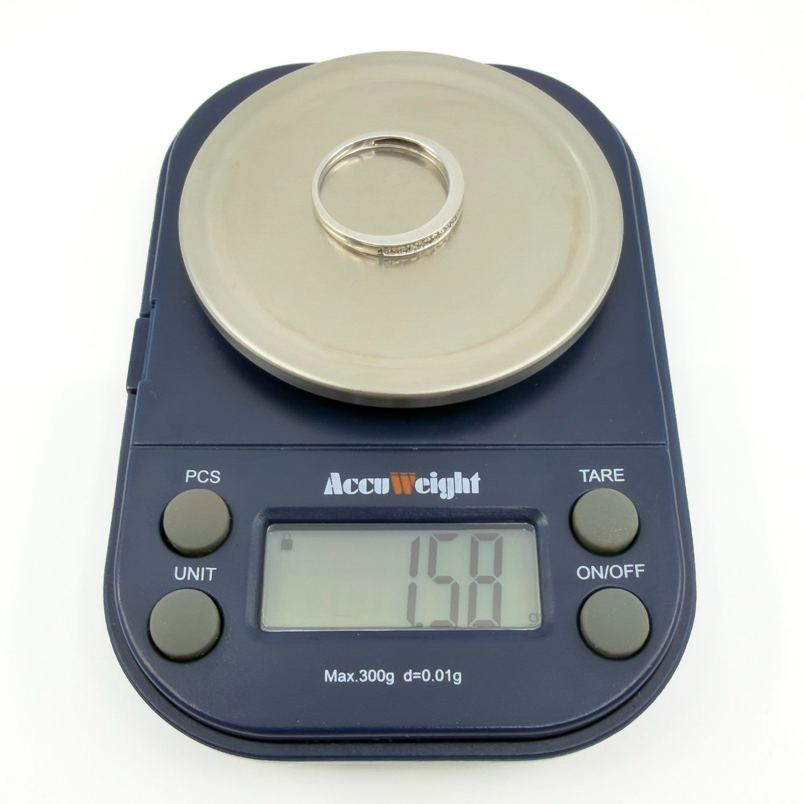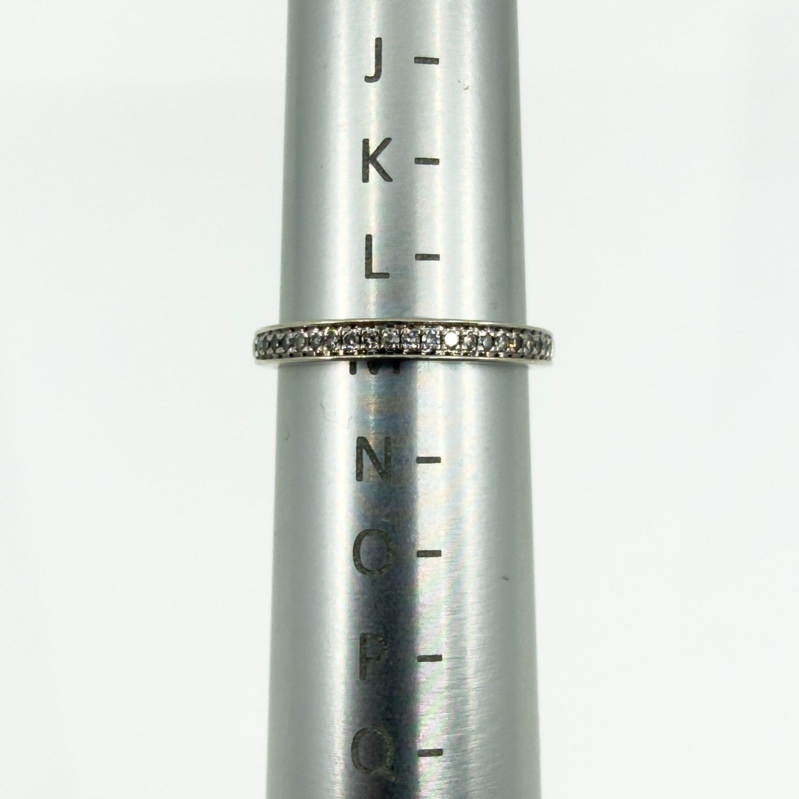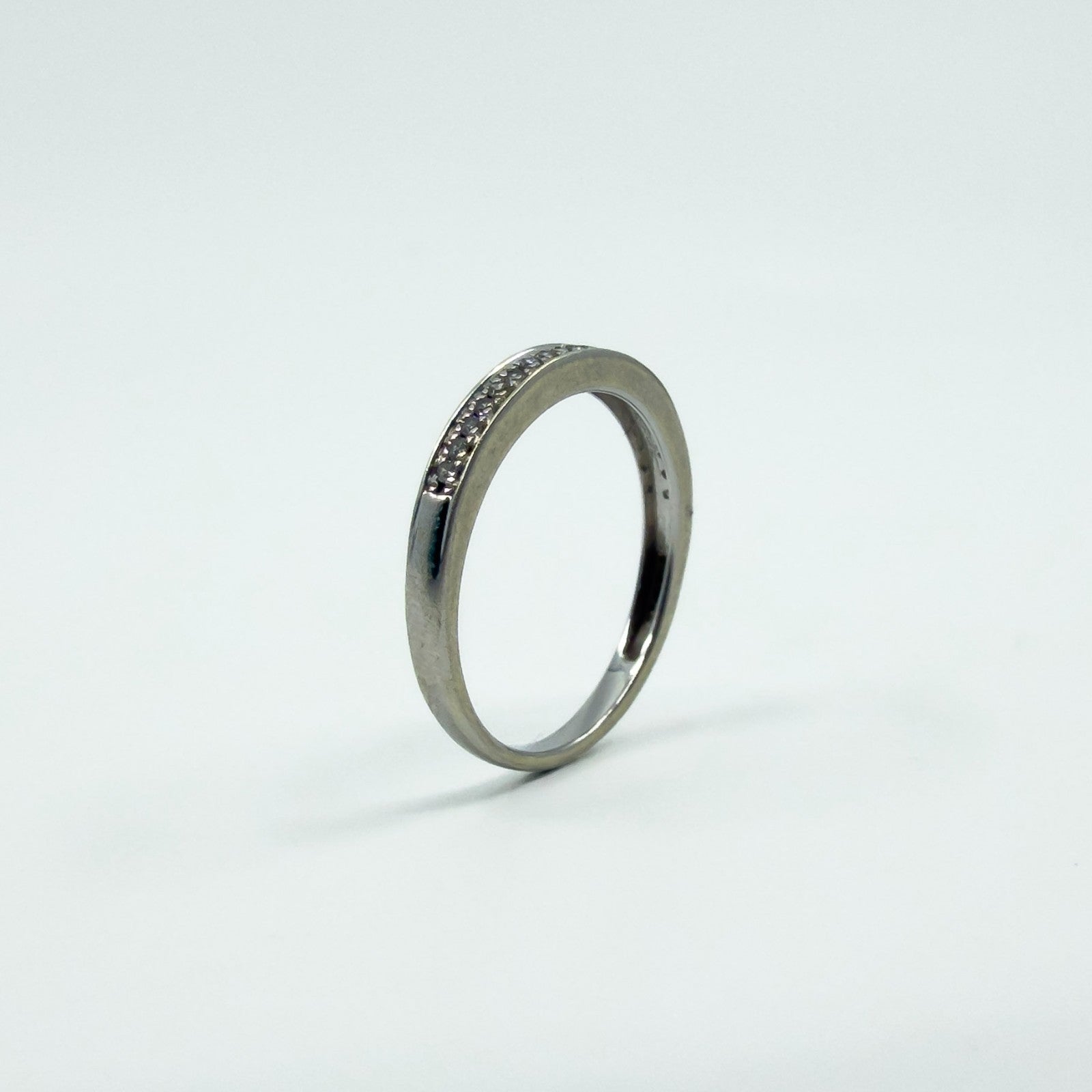 A slim 9ct white gold diamond band with a low profile fit, designed for comfortable everyday wear. The diamonds are flush set halfway around the band, giving a clean, neat finish.