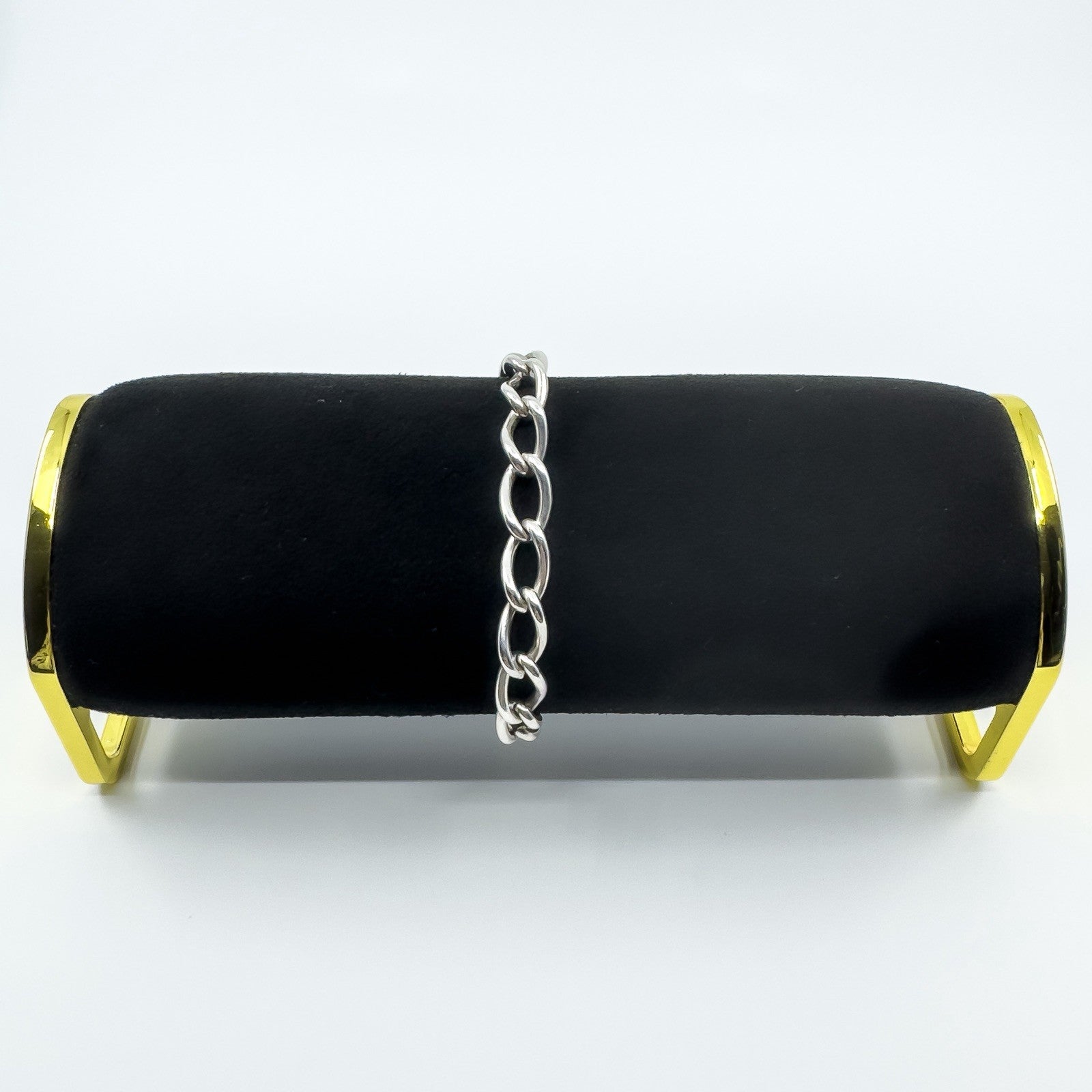 Antique Sterling Silver Chunky Oval Link Bracelet Dog Clip T-Bar 925