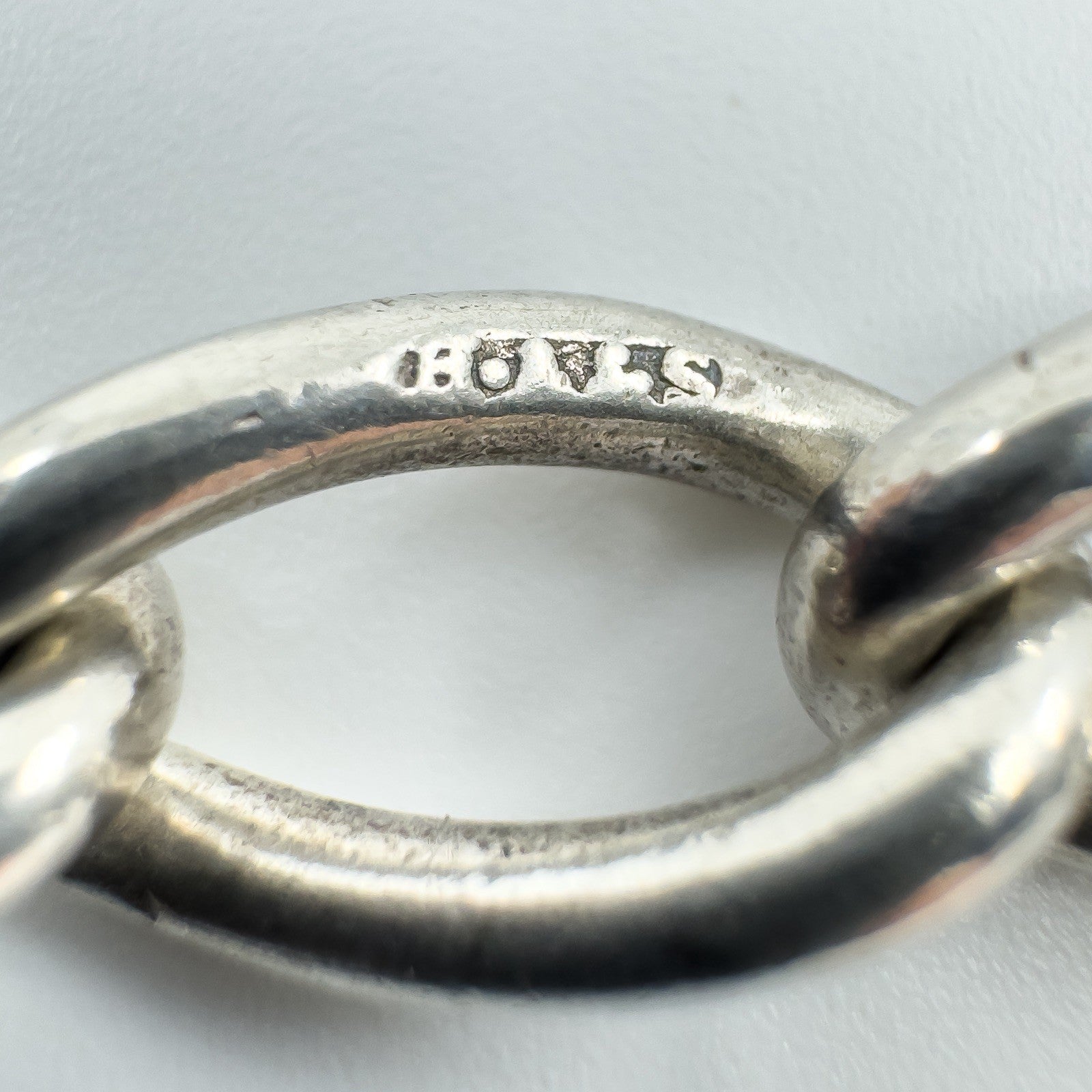 Stamped HF&S with a lion passant, plus a lion and n stamp. The bracelet measures approximately 8 inches and will fit an 8 to 9 inch wrist.