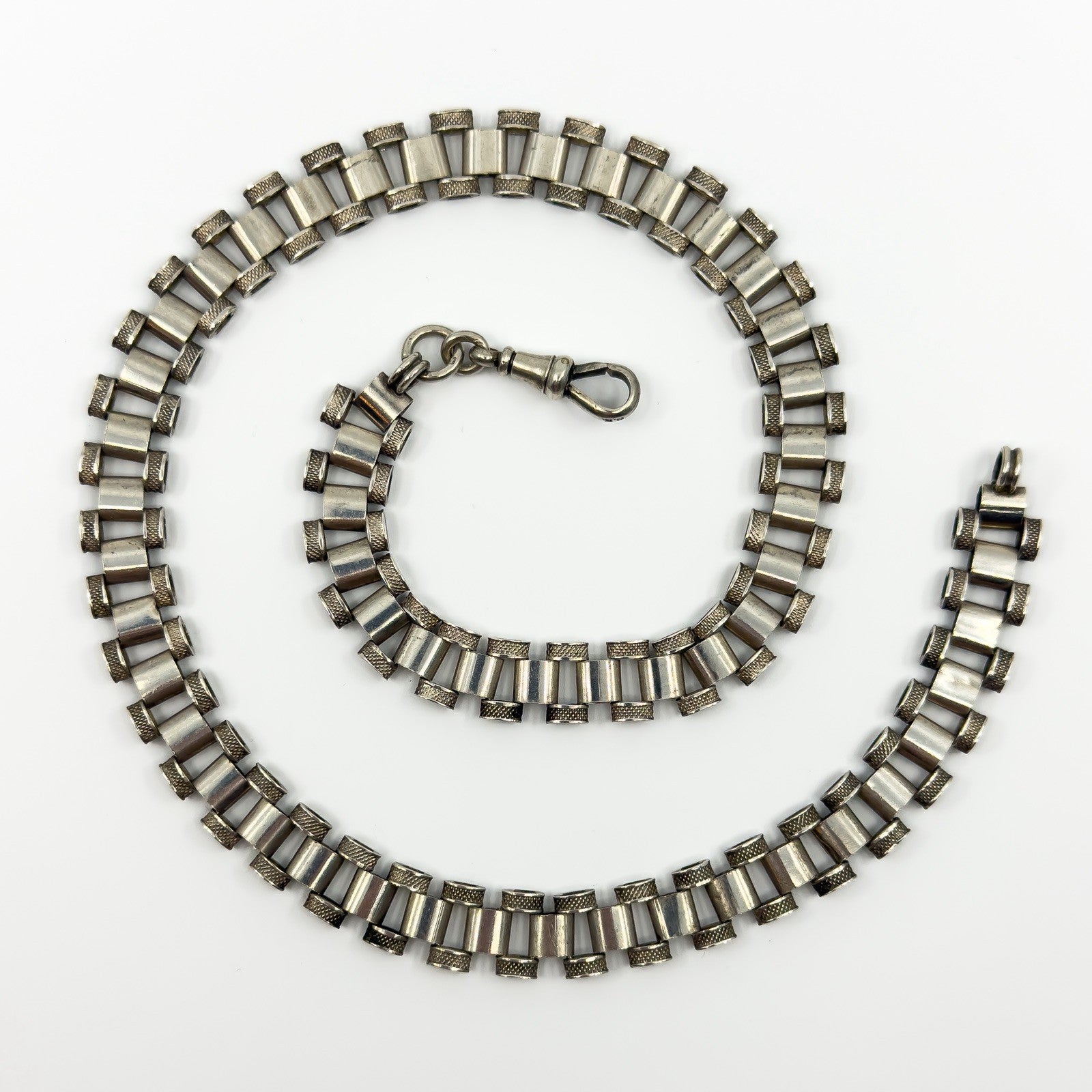 Antique Victorian Sterling Silver Reversible 18.5" Book Chain
