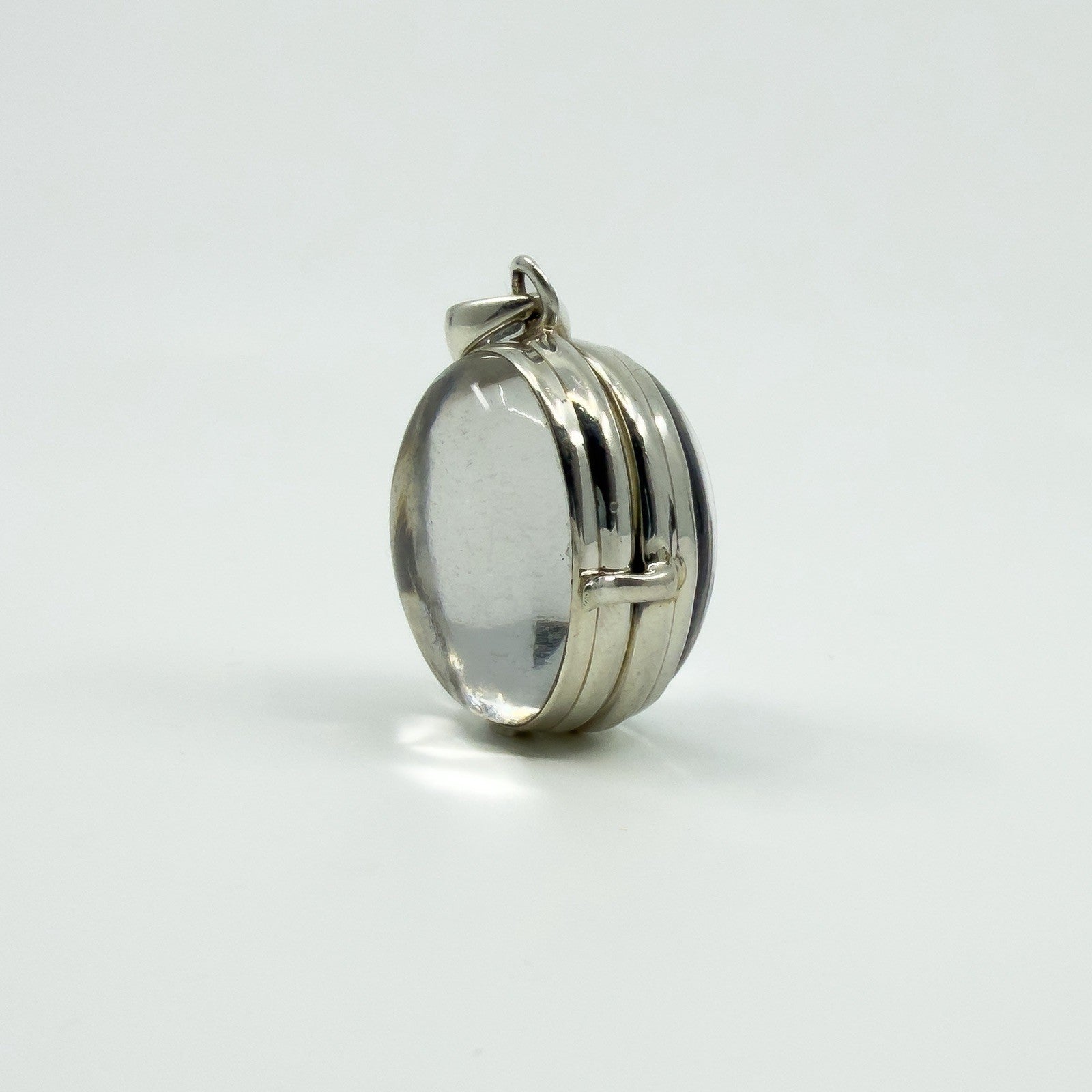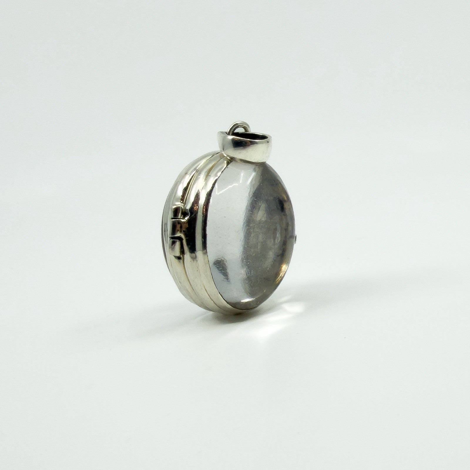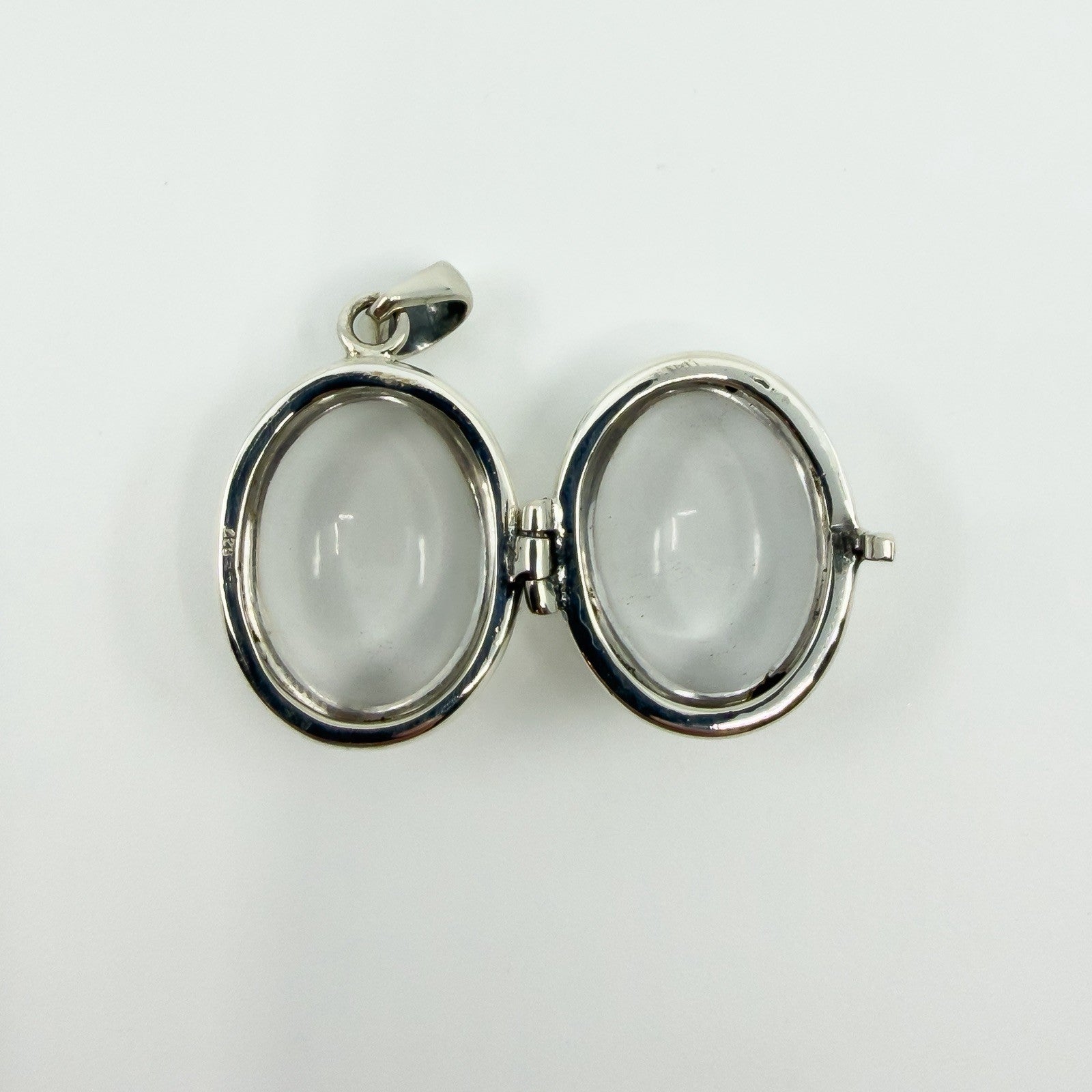 Large Chunky Sterling Silver Oval Double Sided Glass Orb Photo Locket 925