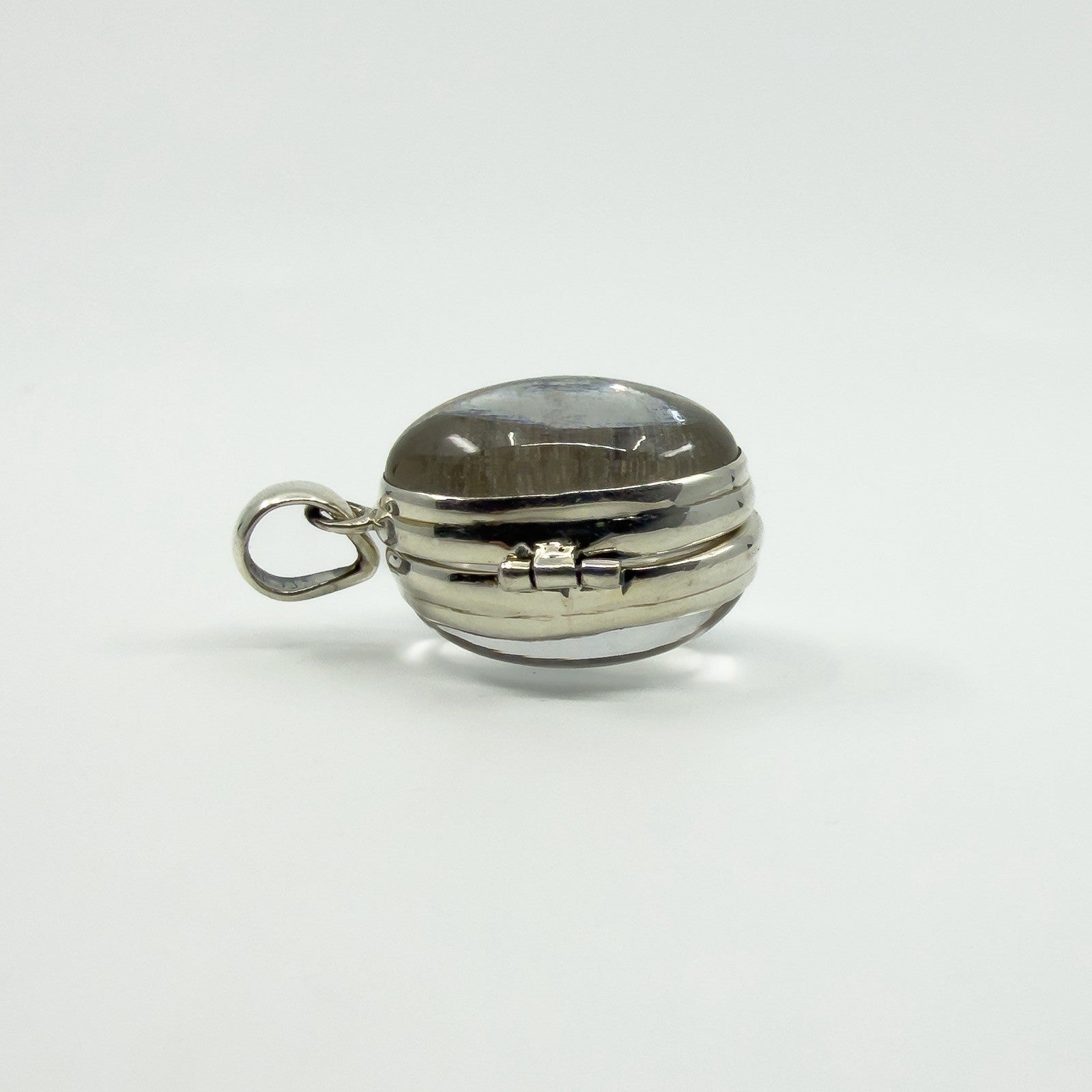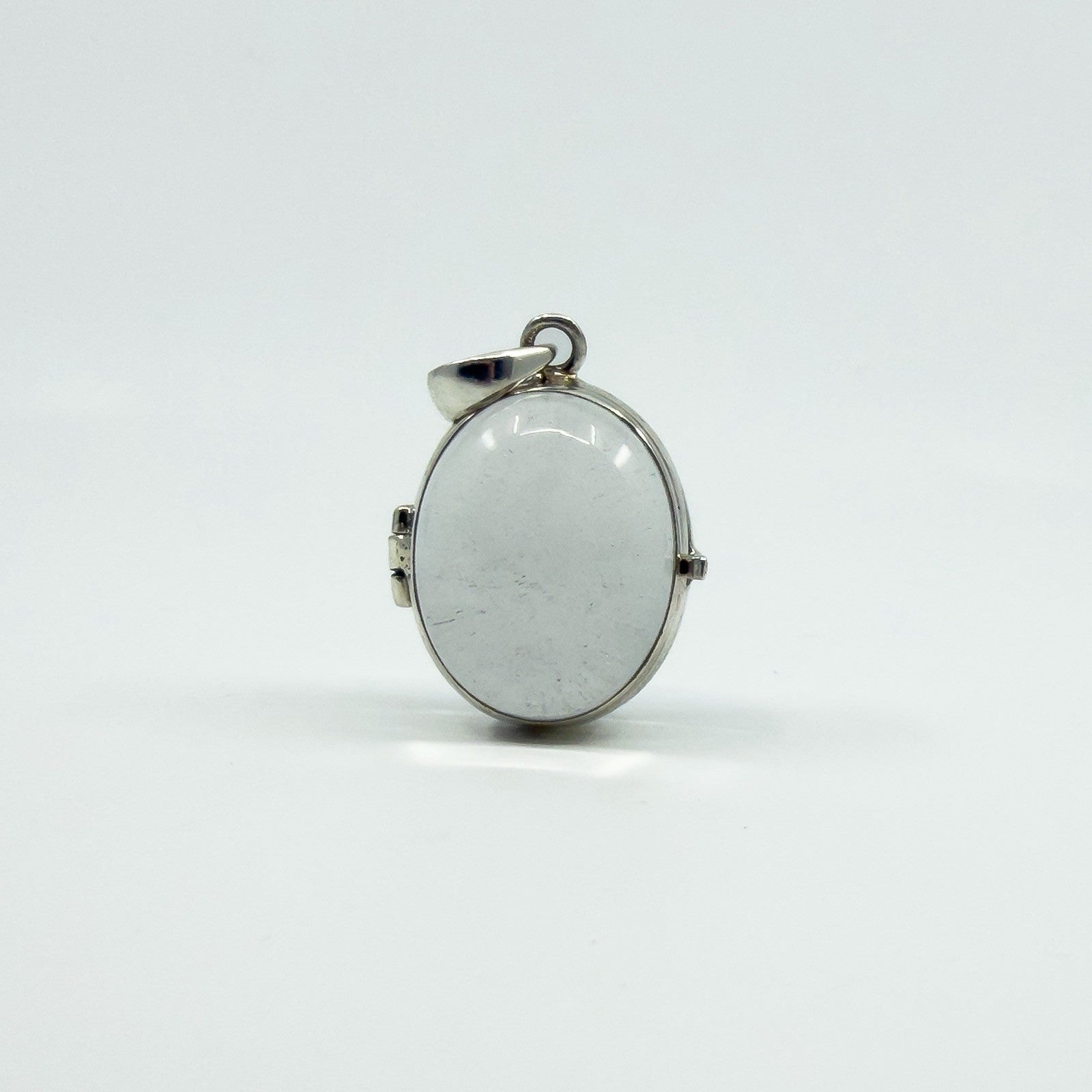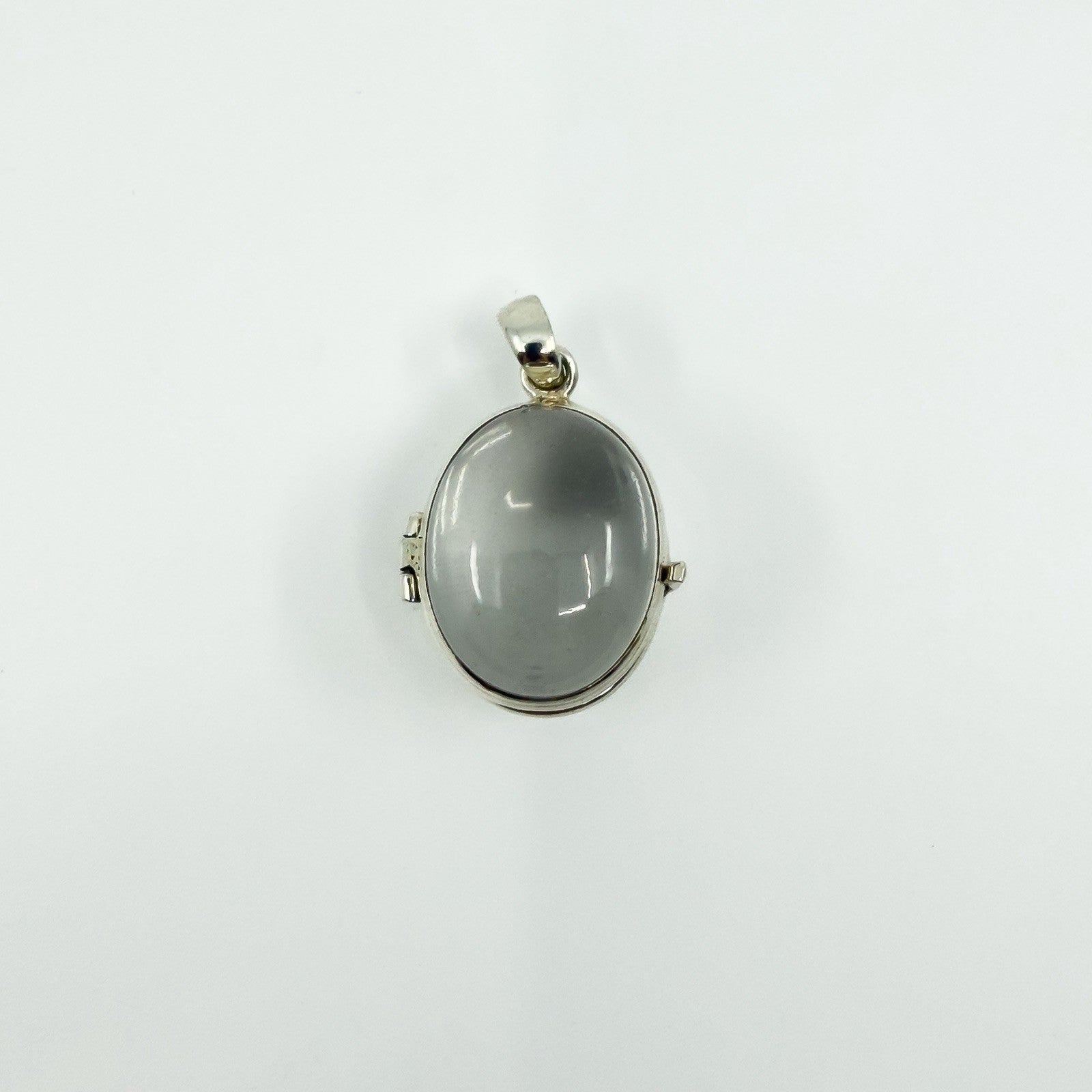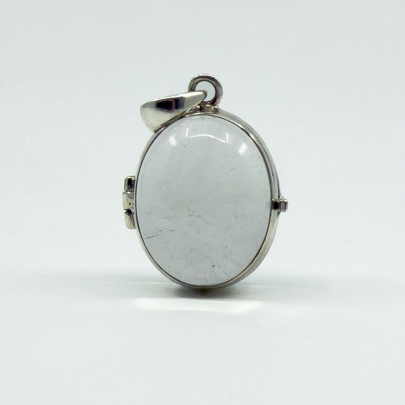 Large Chunky Sterling Silver Oval Double Sided Glass Orb Photo Locket 925