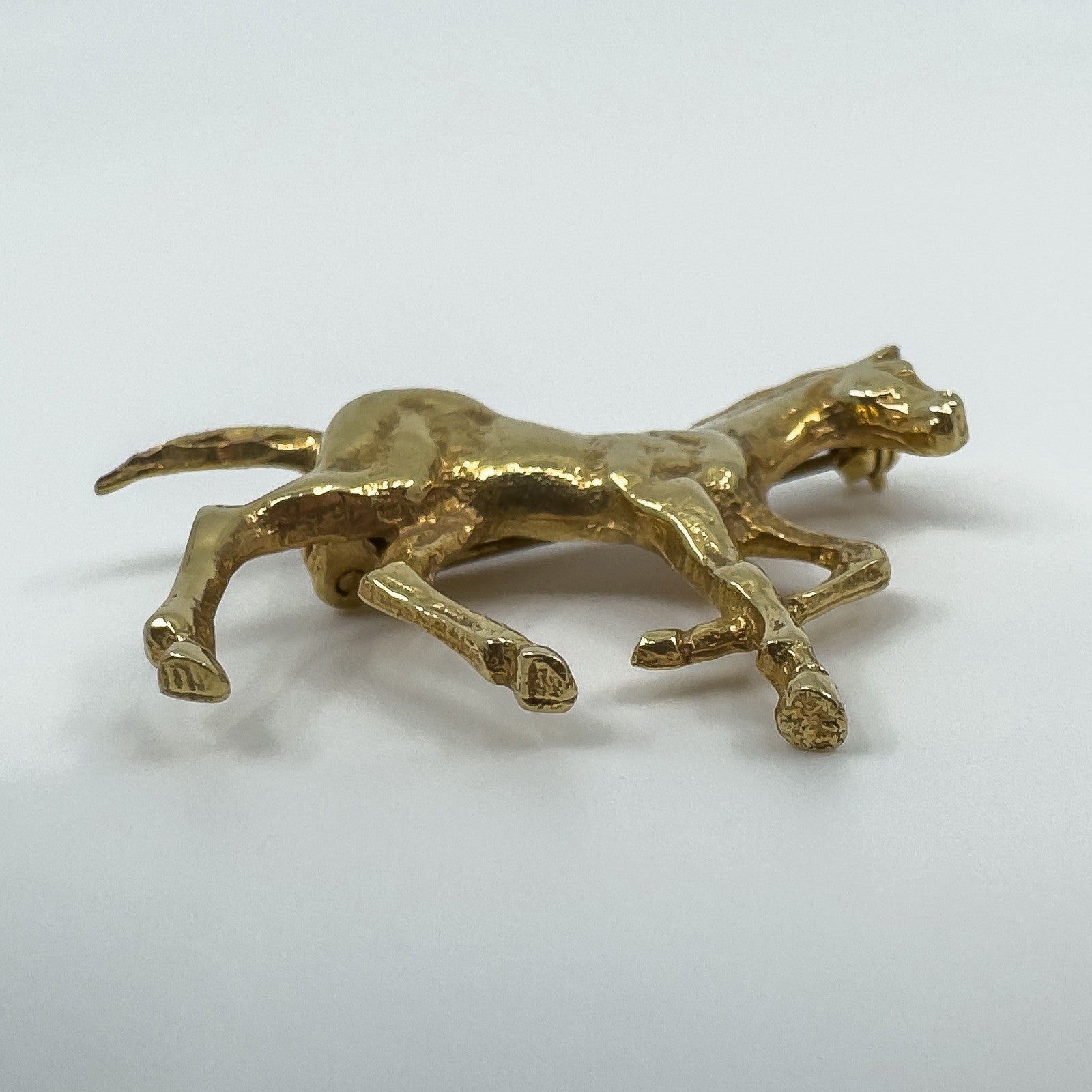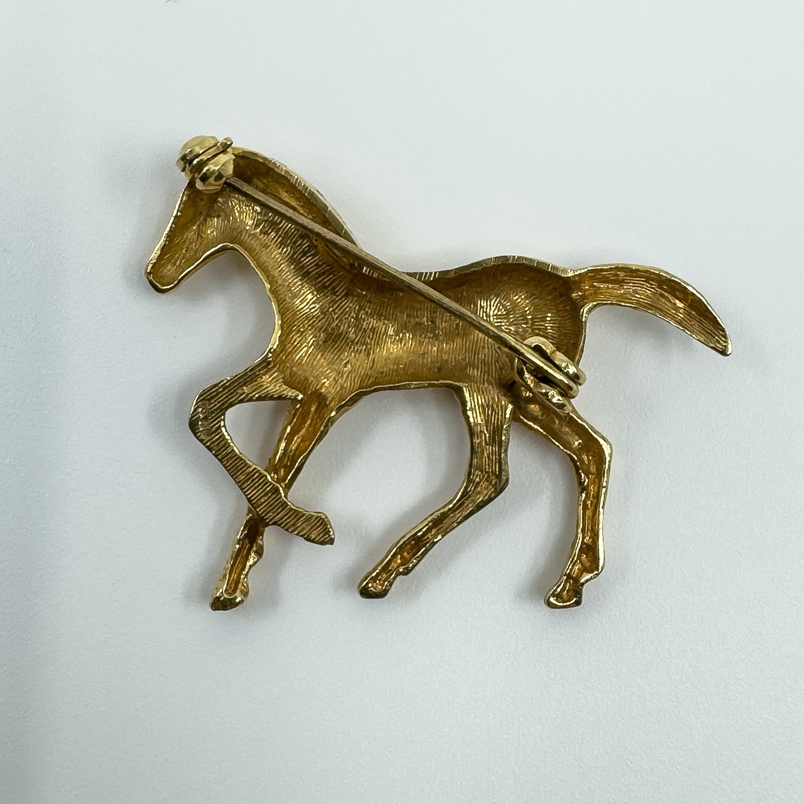 Large vintage 9ct gold equestrian horse brooch with a detailed three dimensional horse design. A lovely piece for anyone who enjoys horses or classic sporting style.