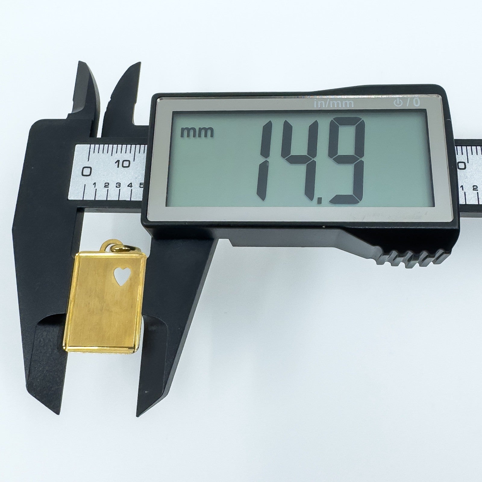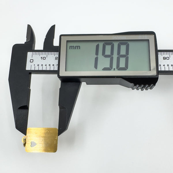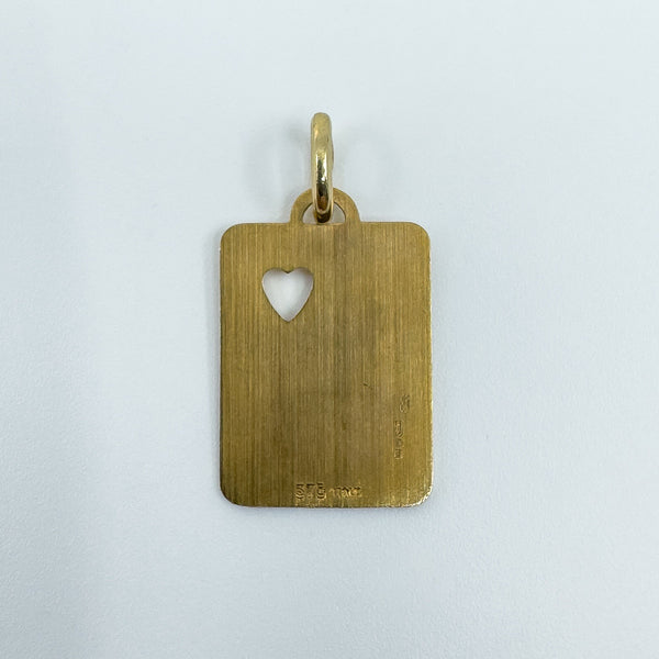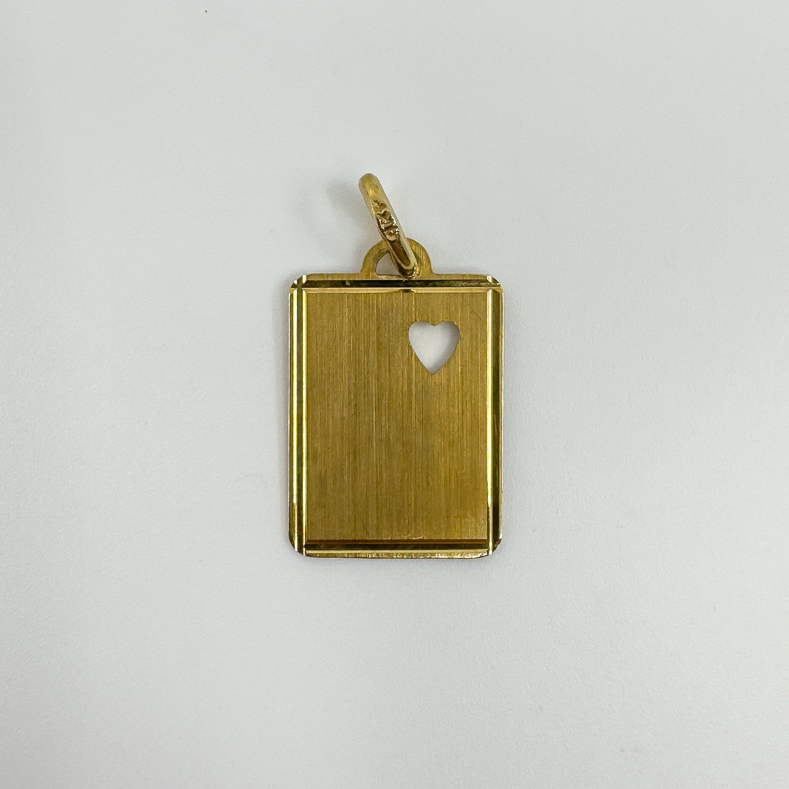 A cute rectangular gold pendant with a cut out heart in the right hand corner, perfect to engraved a message or initals onto