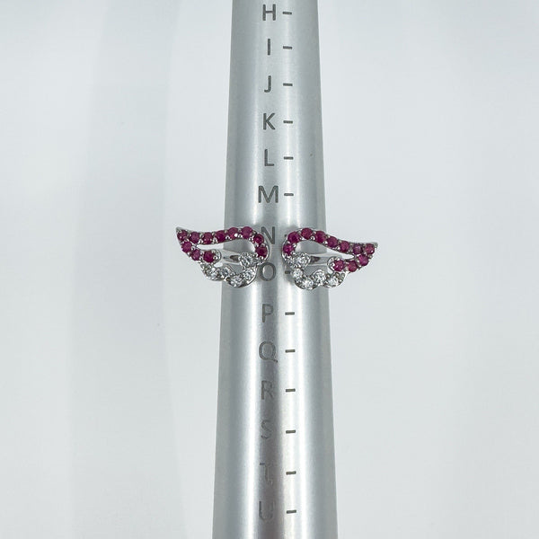 New Sterling Silver Ruby Double Angel Wings Ring 925 Size N O