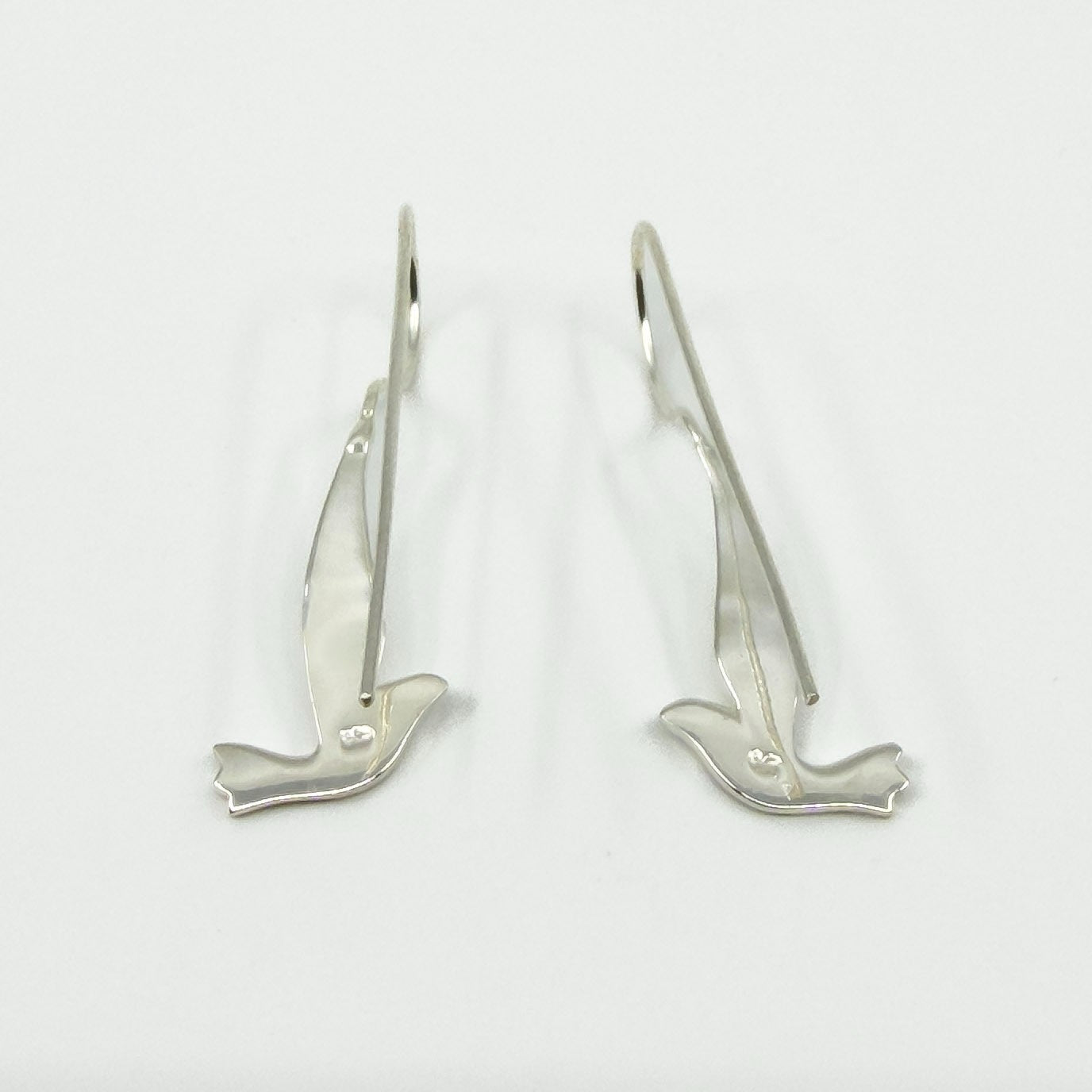 Sterling Silver Dove Drop Earrings on Shepherd Hooks for Pierced Ears