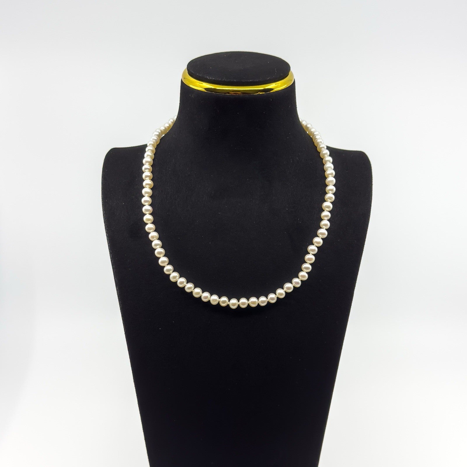 A sterling silver freshwater white pearl necklace, beautifully strung with creamy white pearls that have a soft lustre and classic appeal. Finished with a secure lobster clasp, it’s a timeless piece suitable for both everyday wear and special occasions.