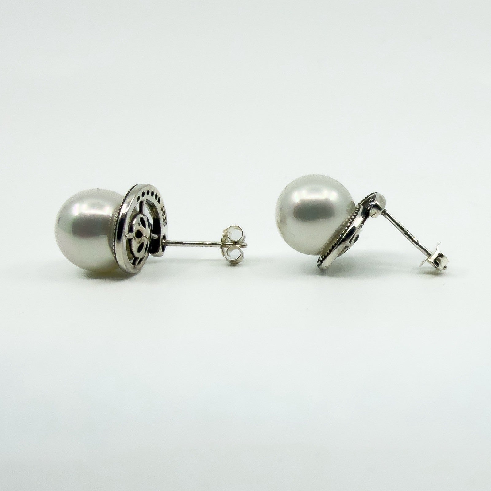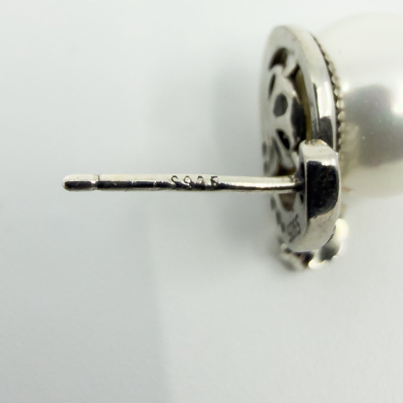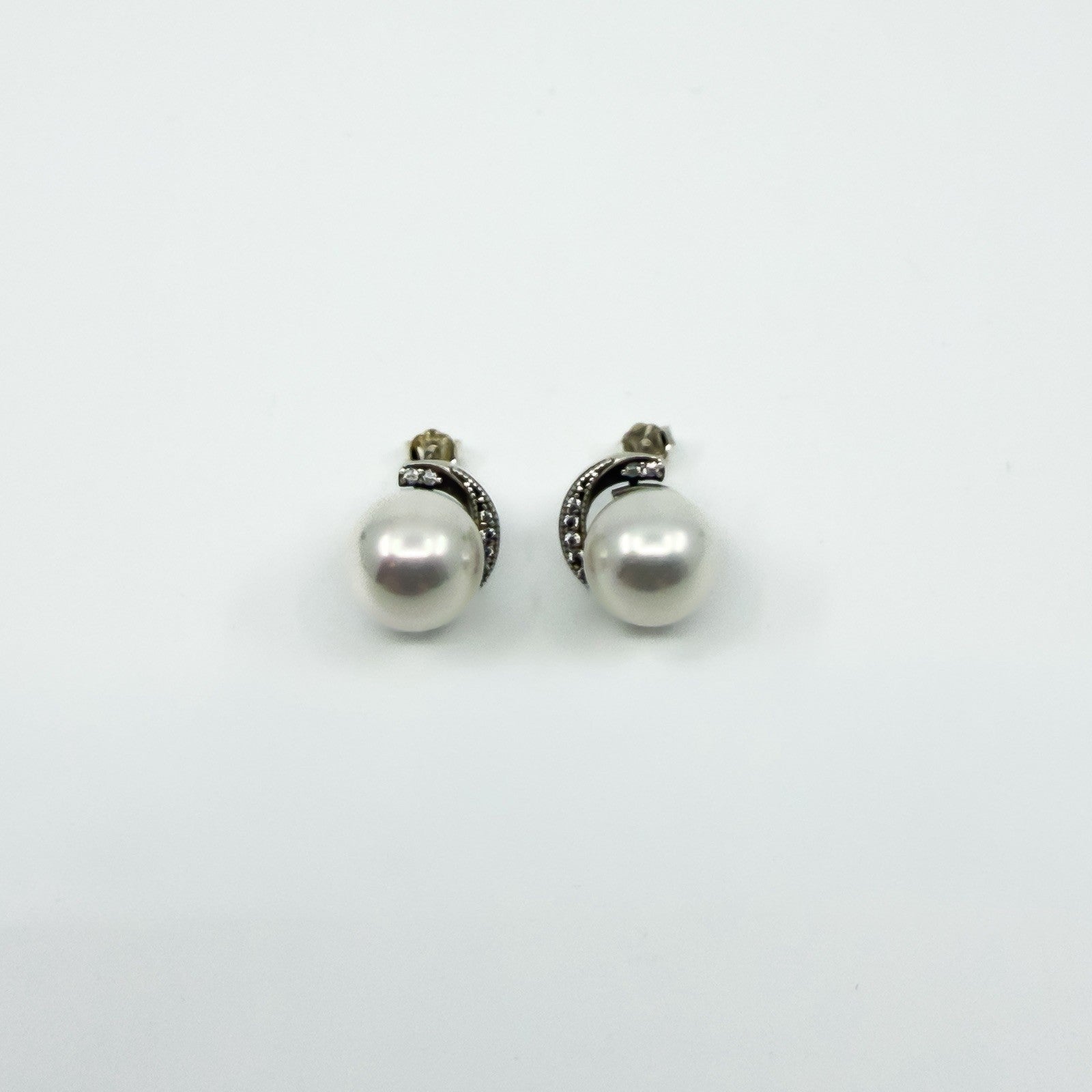 • Item: New and unworn sterling silver pearl and CZ stud earrings • Metal: Sterling silver (stamped 925) • Stones: White glass coated pearls and cubic zirconia • Style: Stud earrings • Backs: Butterfly backs • Measurements: Approx. 10.7mm x 9.9mm • Weight: Approx. 4.7g (combined) • Hallmarks: 925