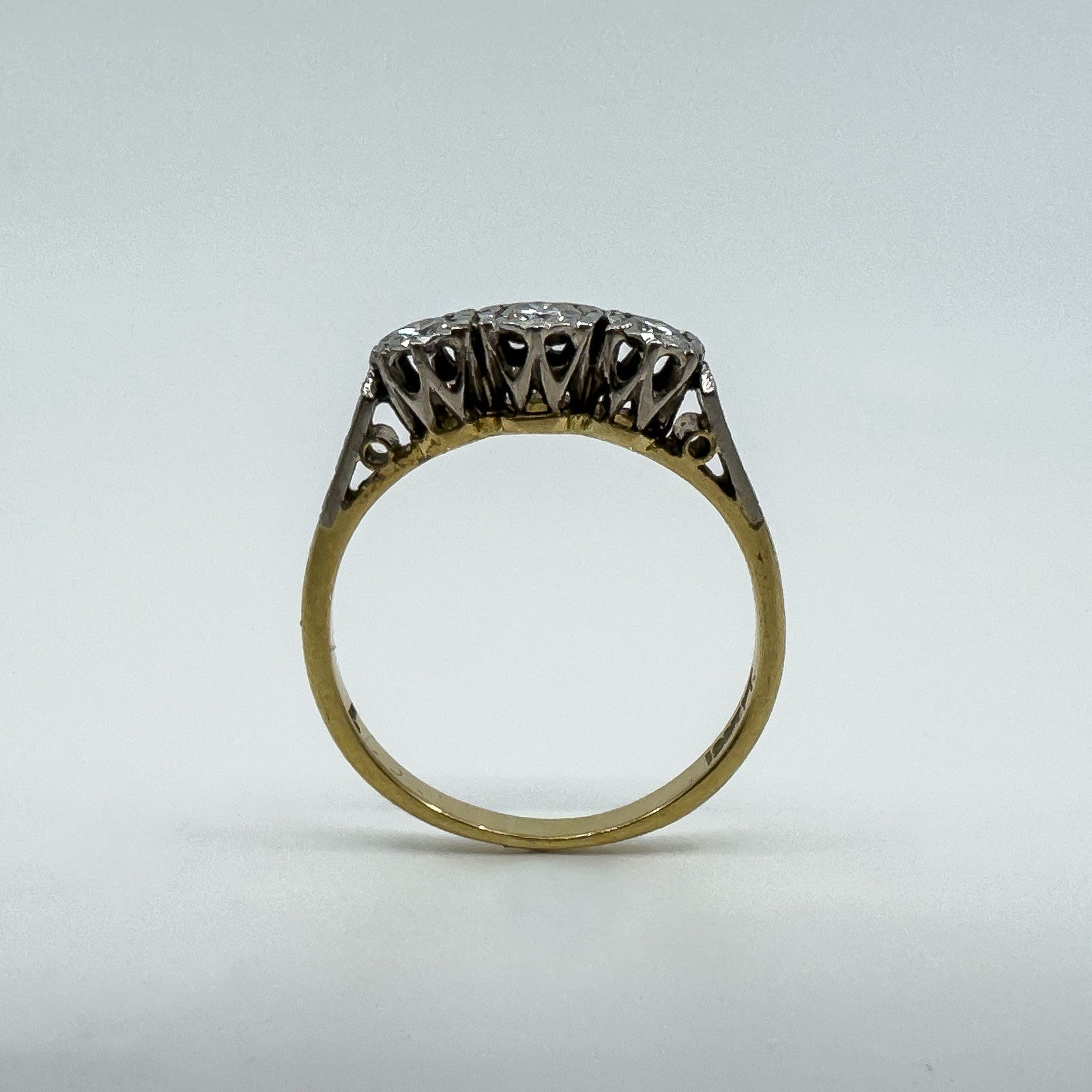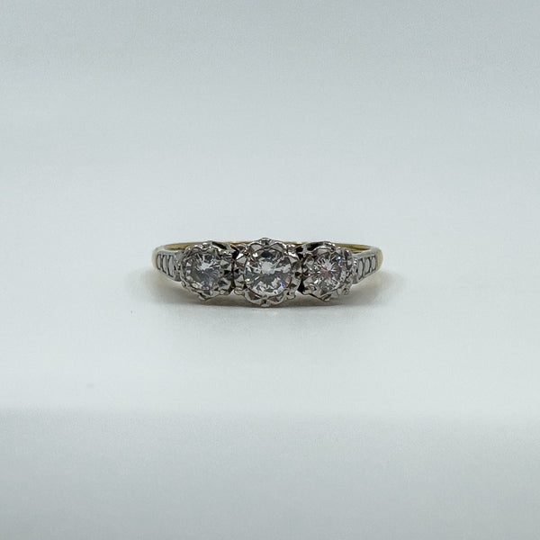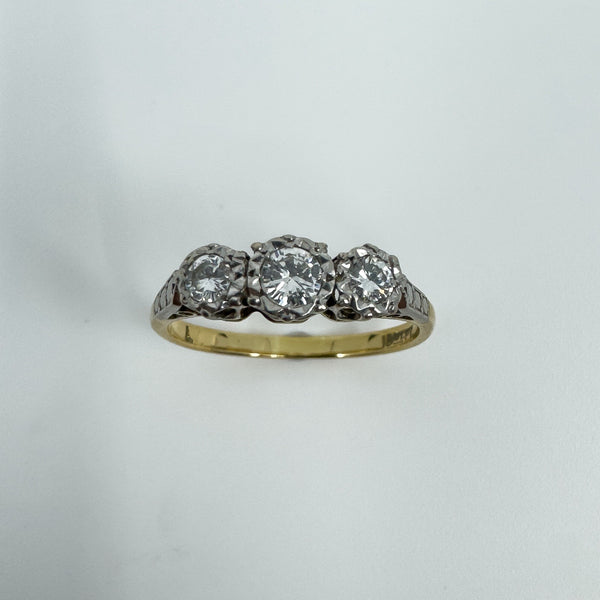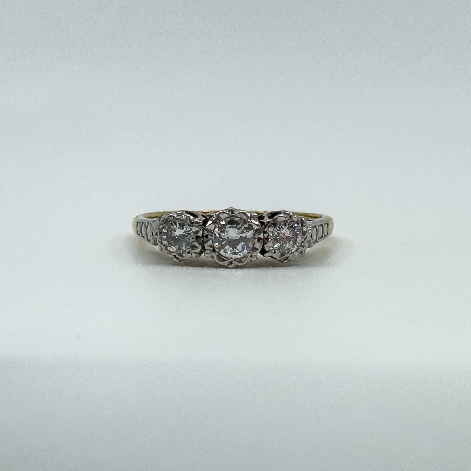 Vintage 18ct Gold Platinum 0.40ct Diamond Trilogy Ring P
