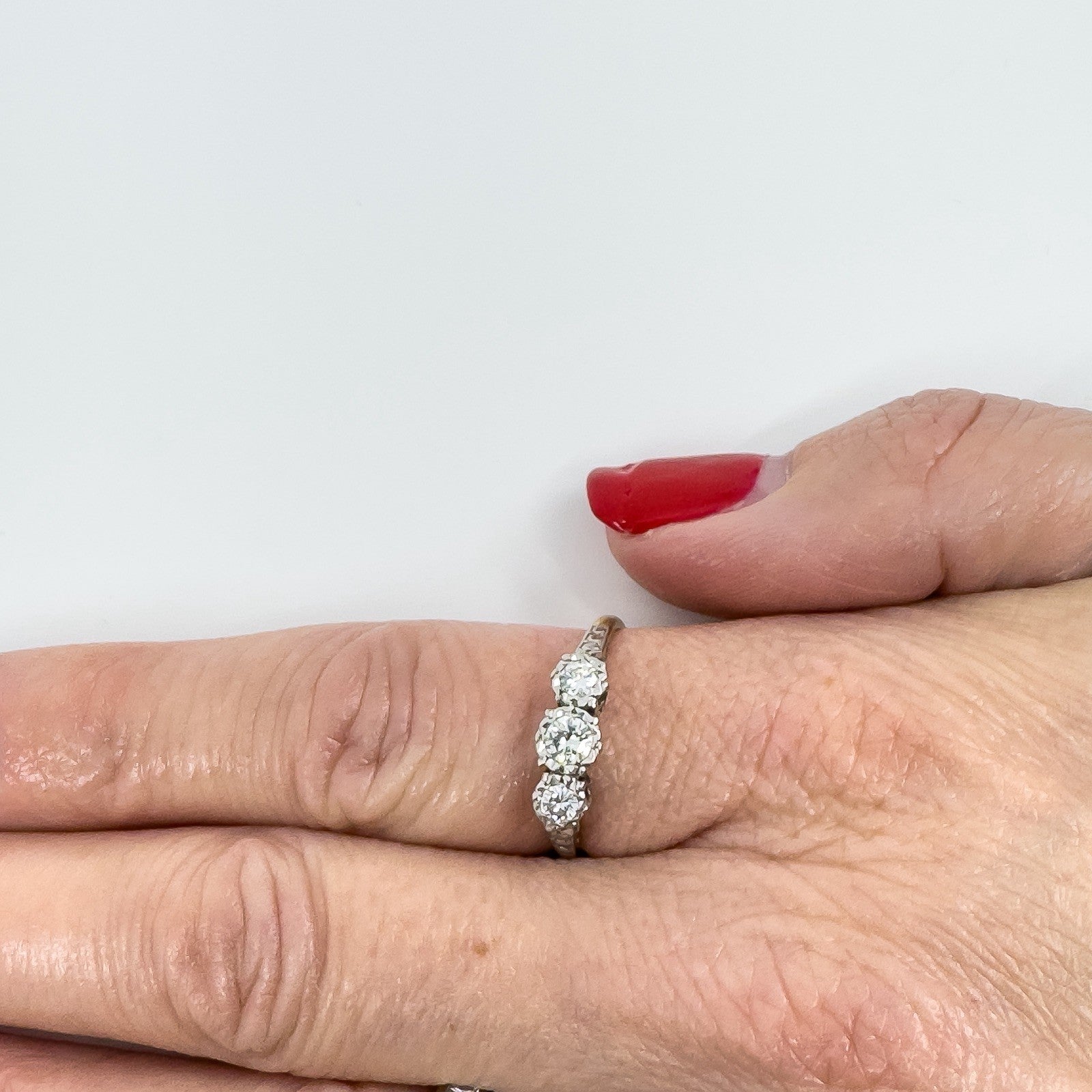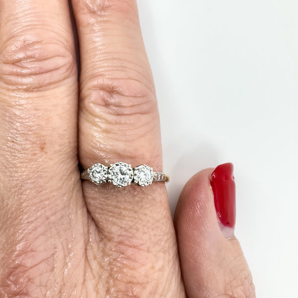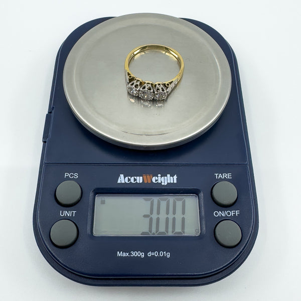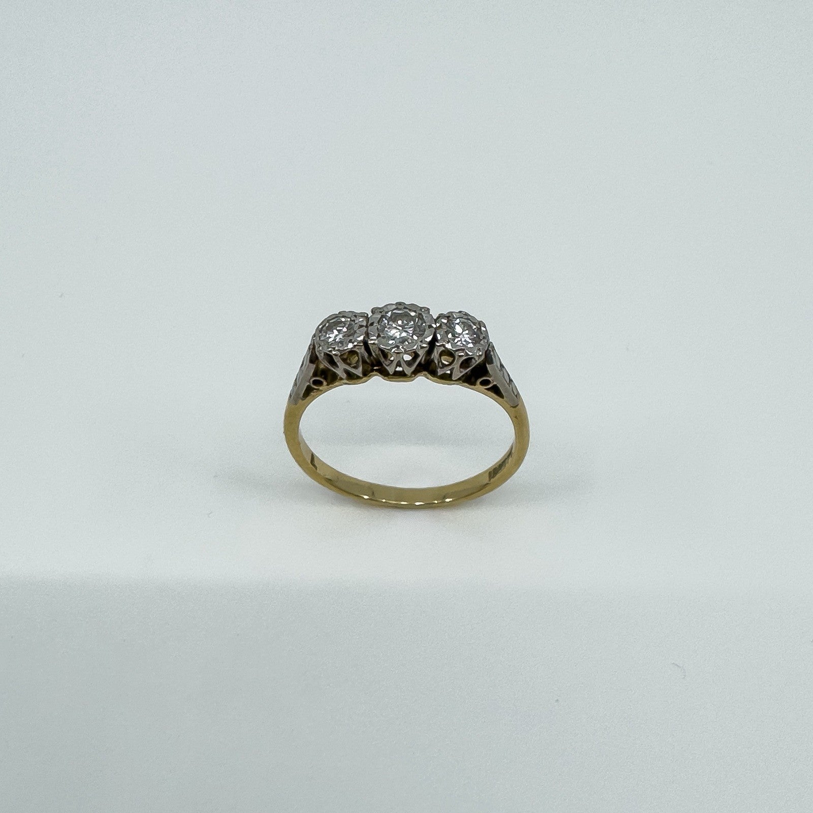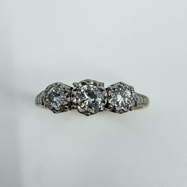 Vintage 18ct Gold Platinum 0.40ct Diamond Trilogy Ring P