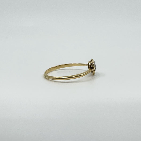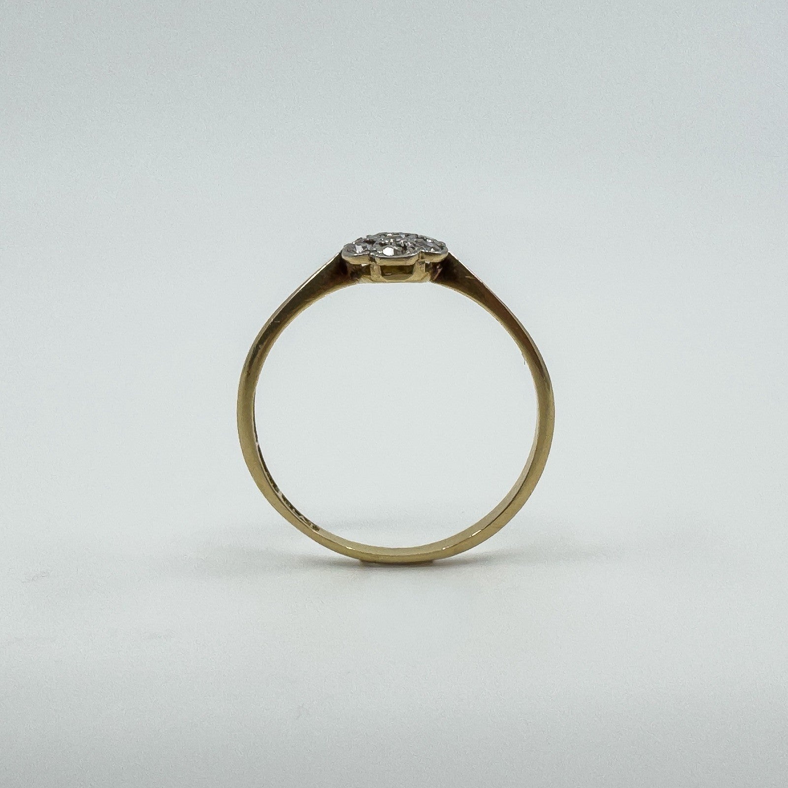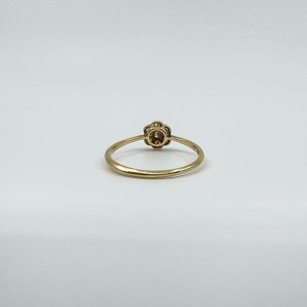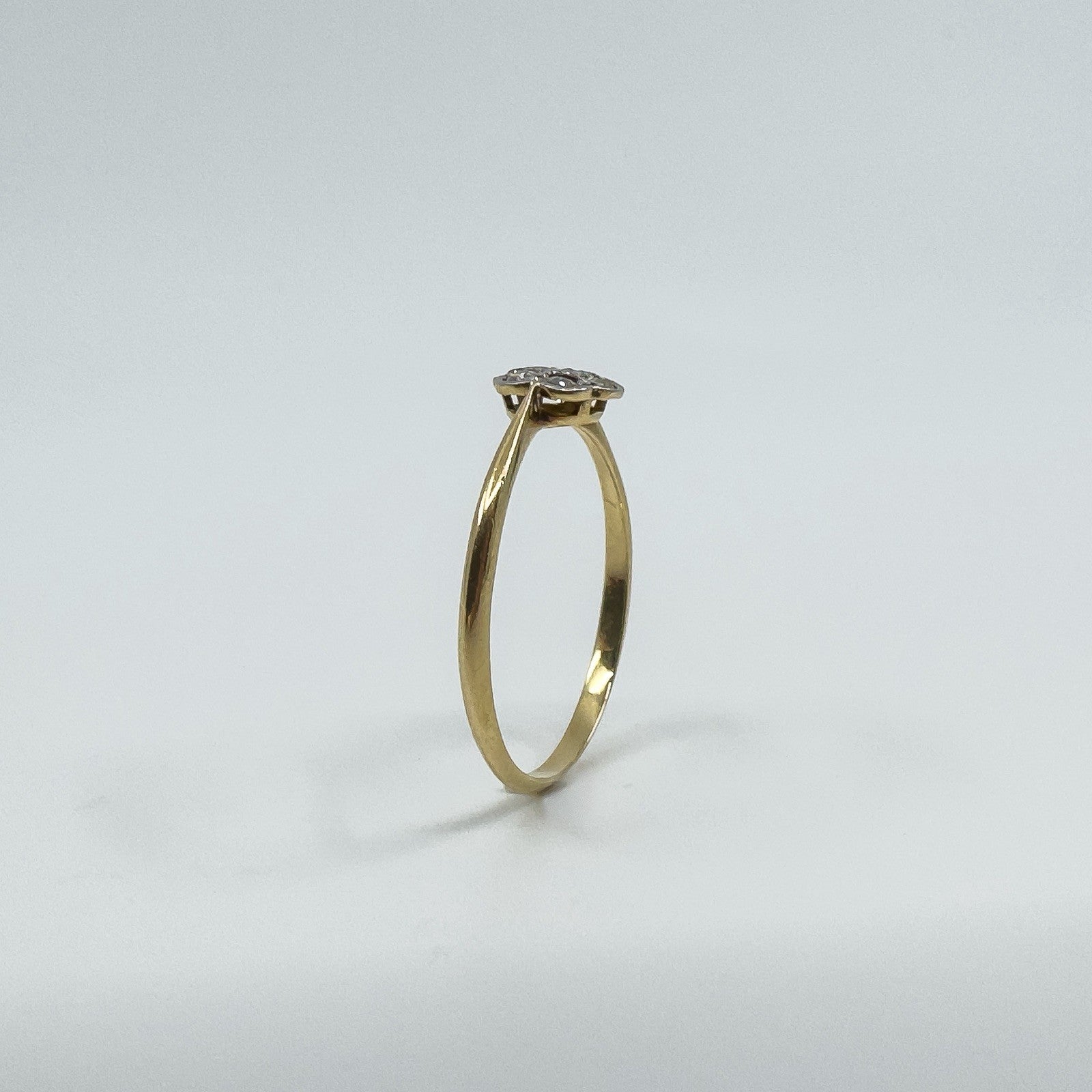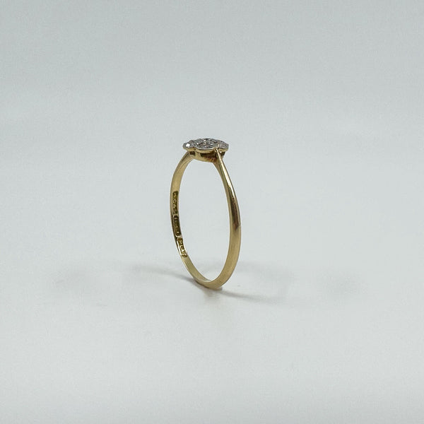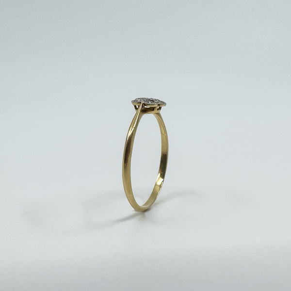 Vintage 18ct gold and platinum diamond cluster flower ring with a low profile setting, easy to wear as an everyday ring or as a simple sparkling accent.