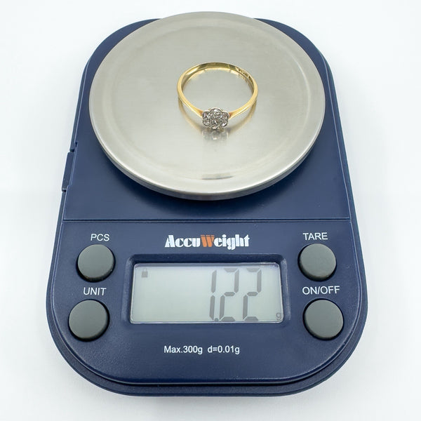 Vintage 18ct Gold & Platinum Diamond Cluster Flower Ring 750 Size O