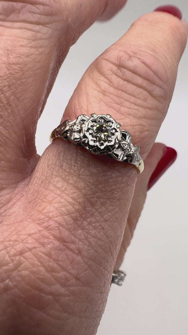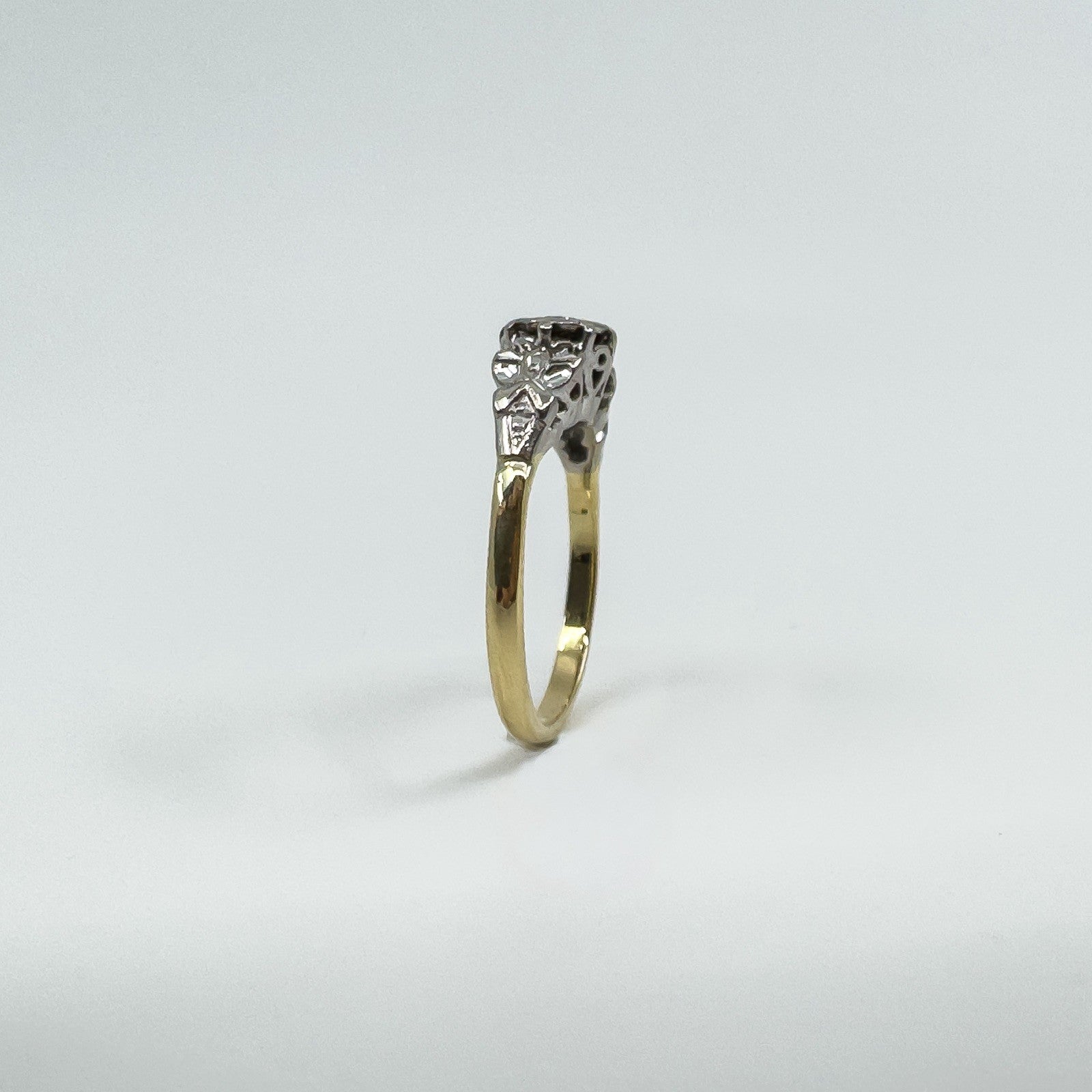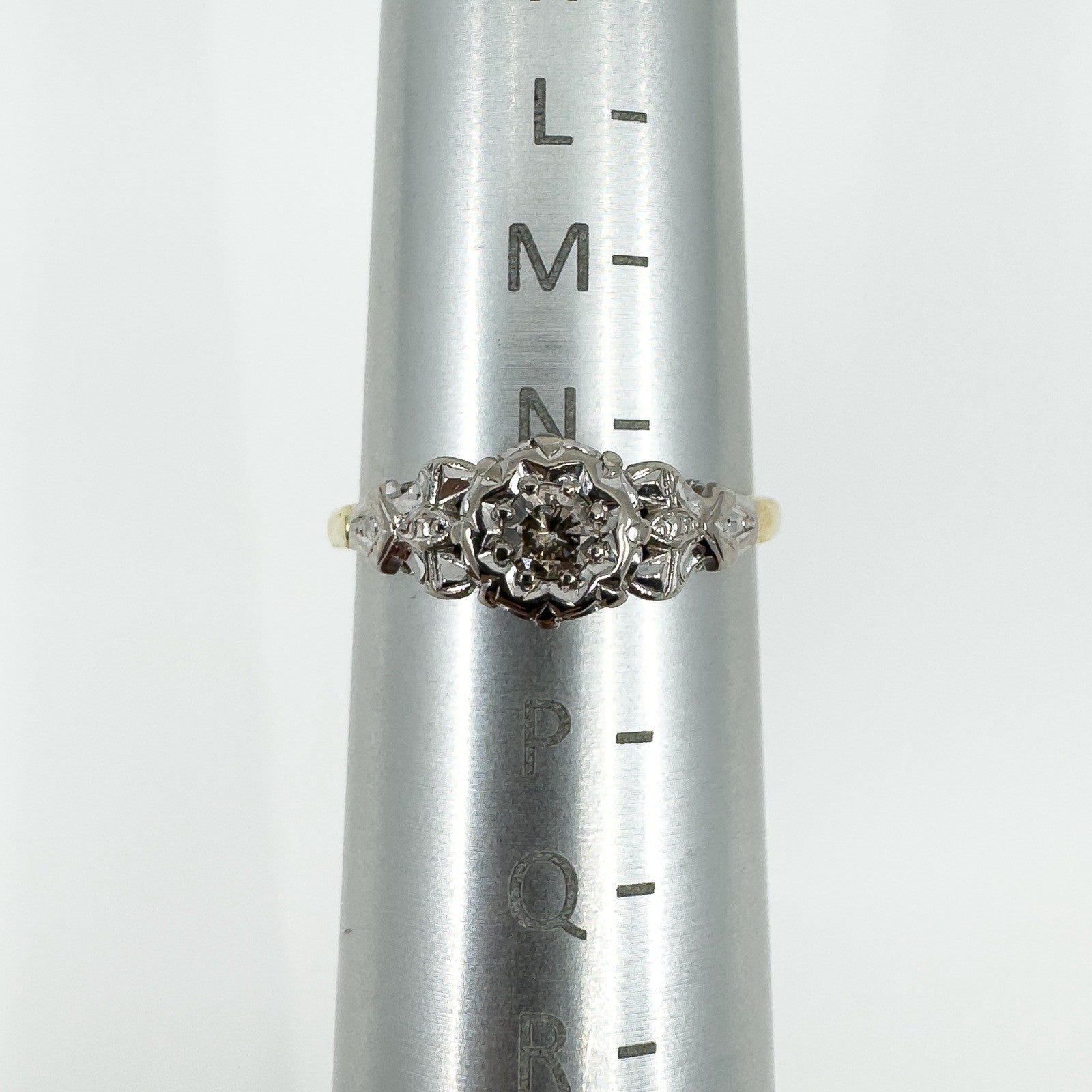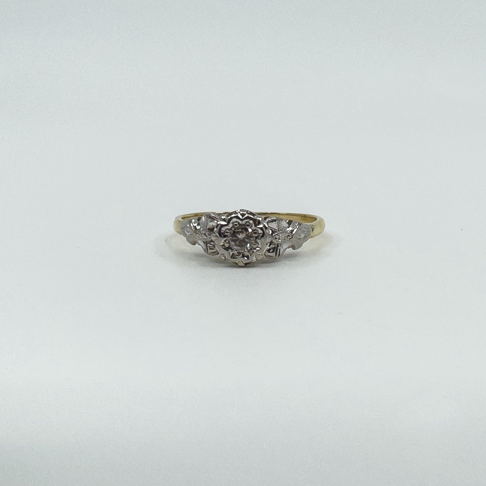 Vintage 18ct Gold & Platinum Diamond Solitaire Ring 0.20ct Size O
