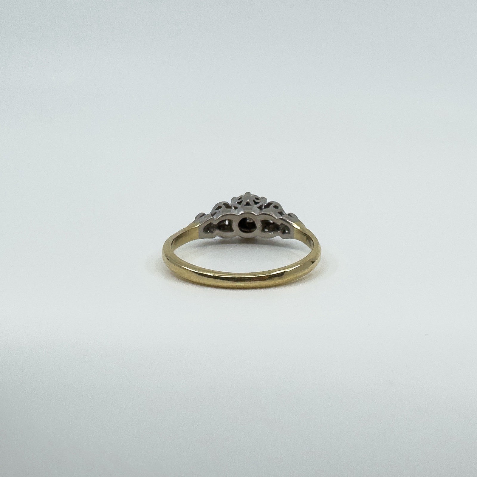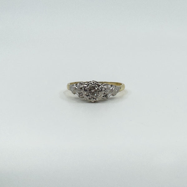 A vintage 18ct yellow gold ring with a platinum head set with a natural round diamond.