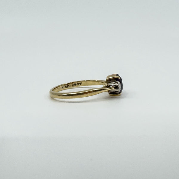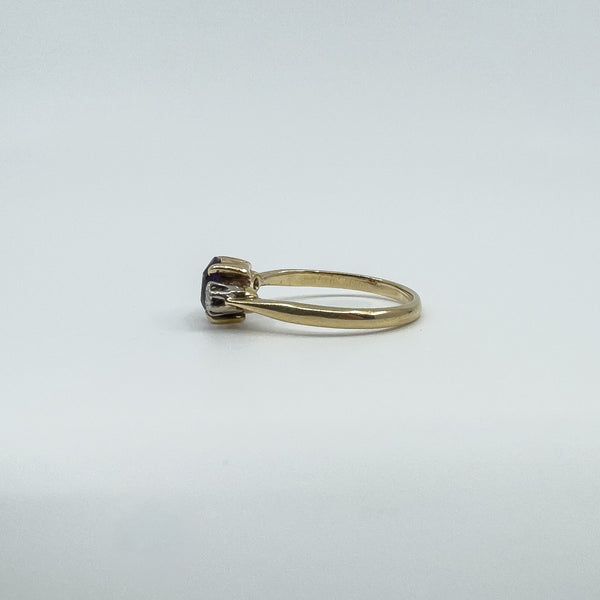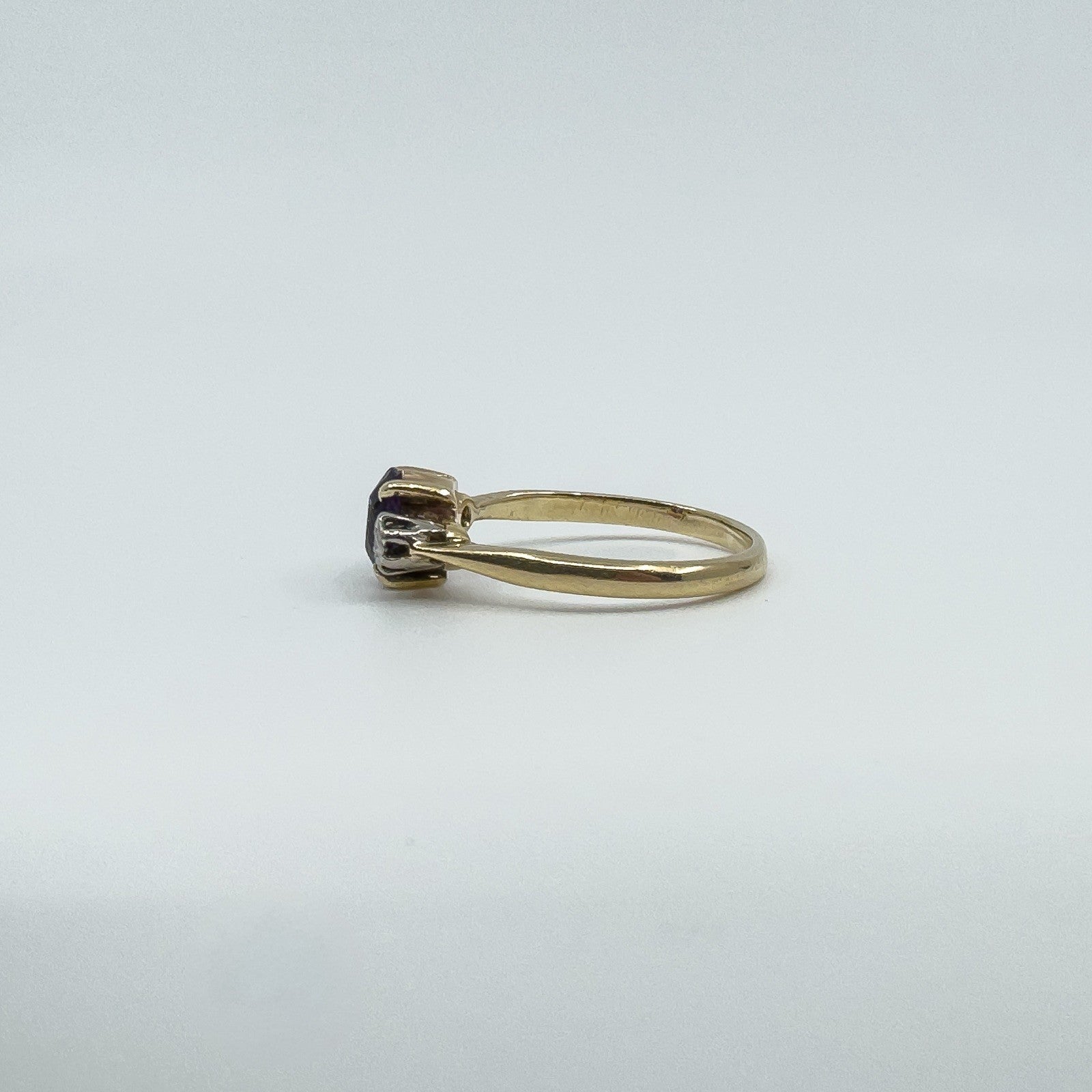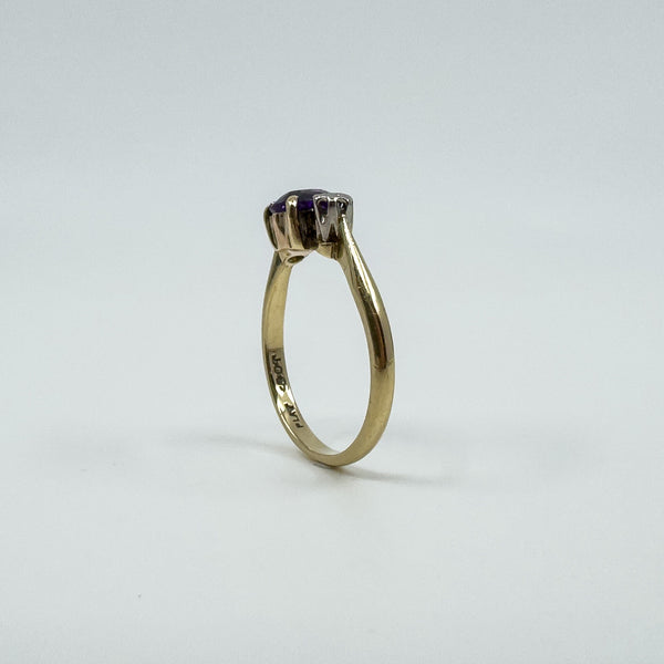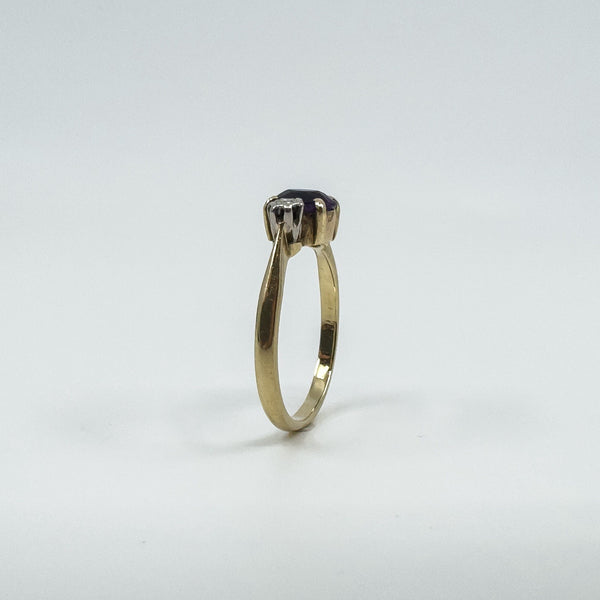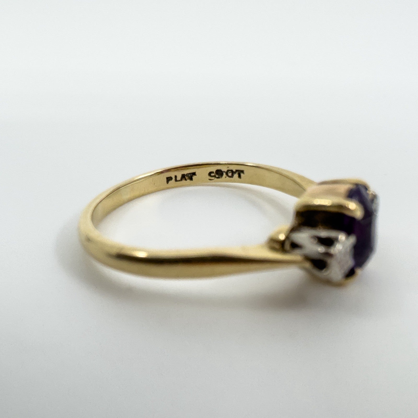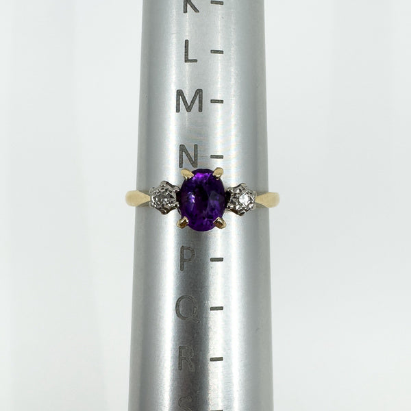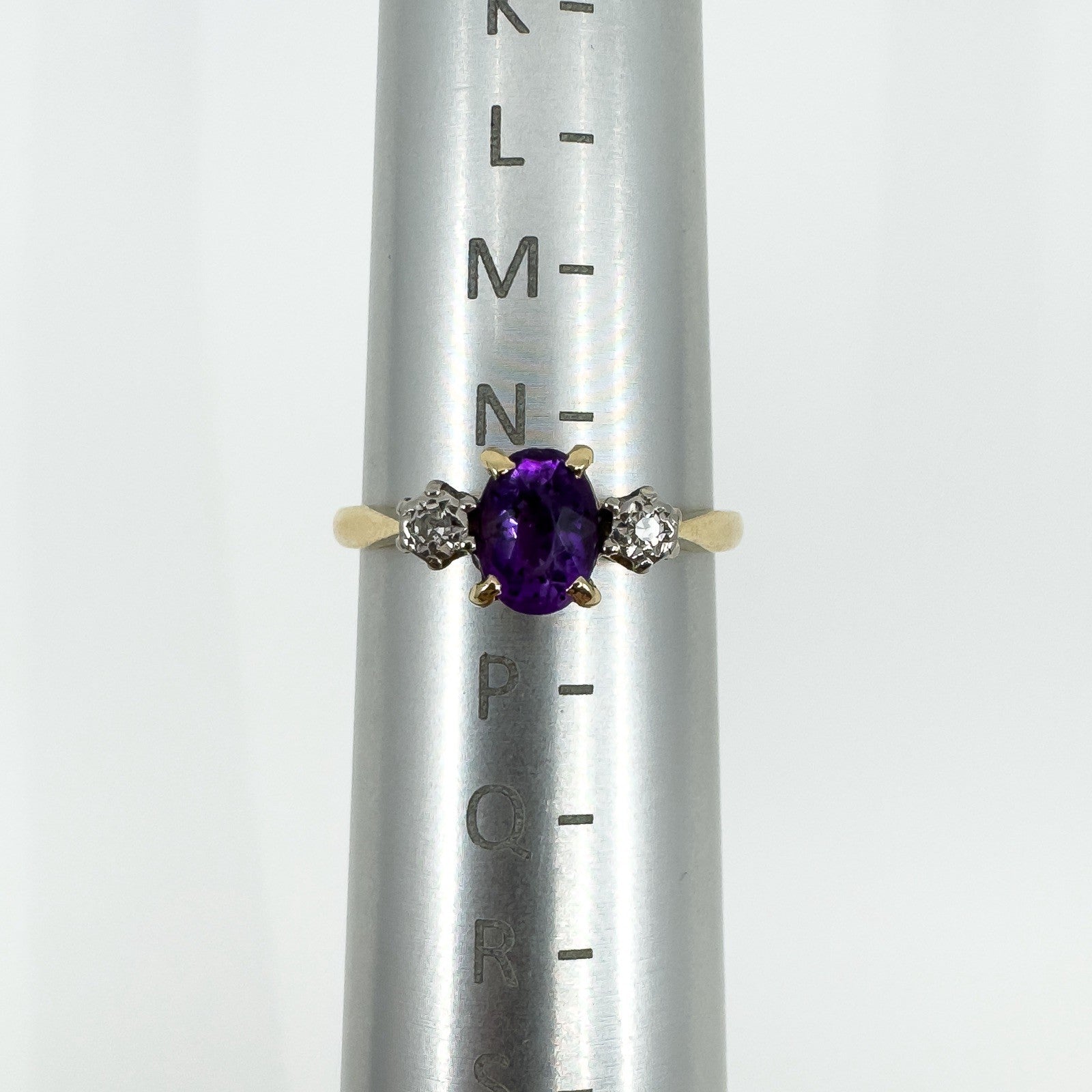 Vintage 9ct Gold Amethyst & Diamond Trilogy Ring 0.60ct Size O 375