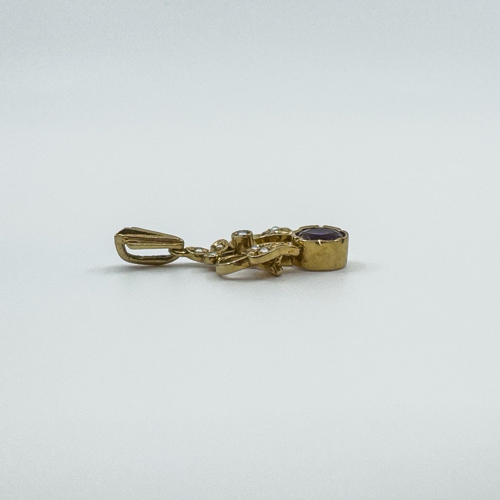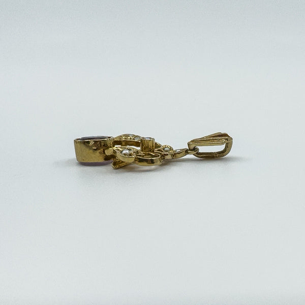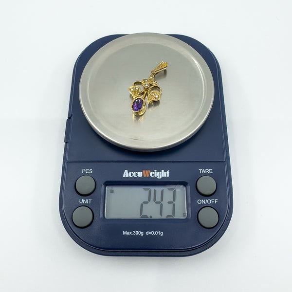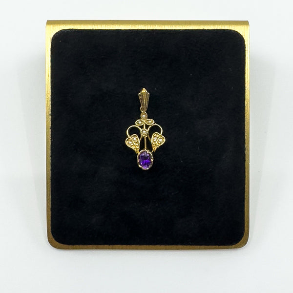 Vintage 9ct gold amethyst and pearl lavalier pendant