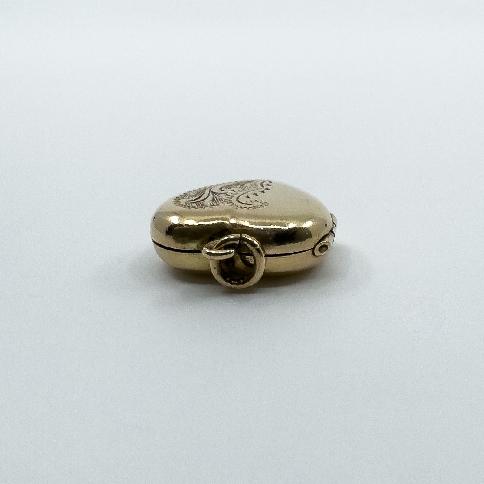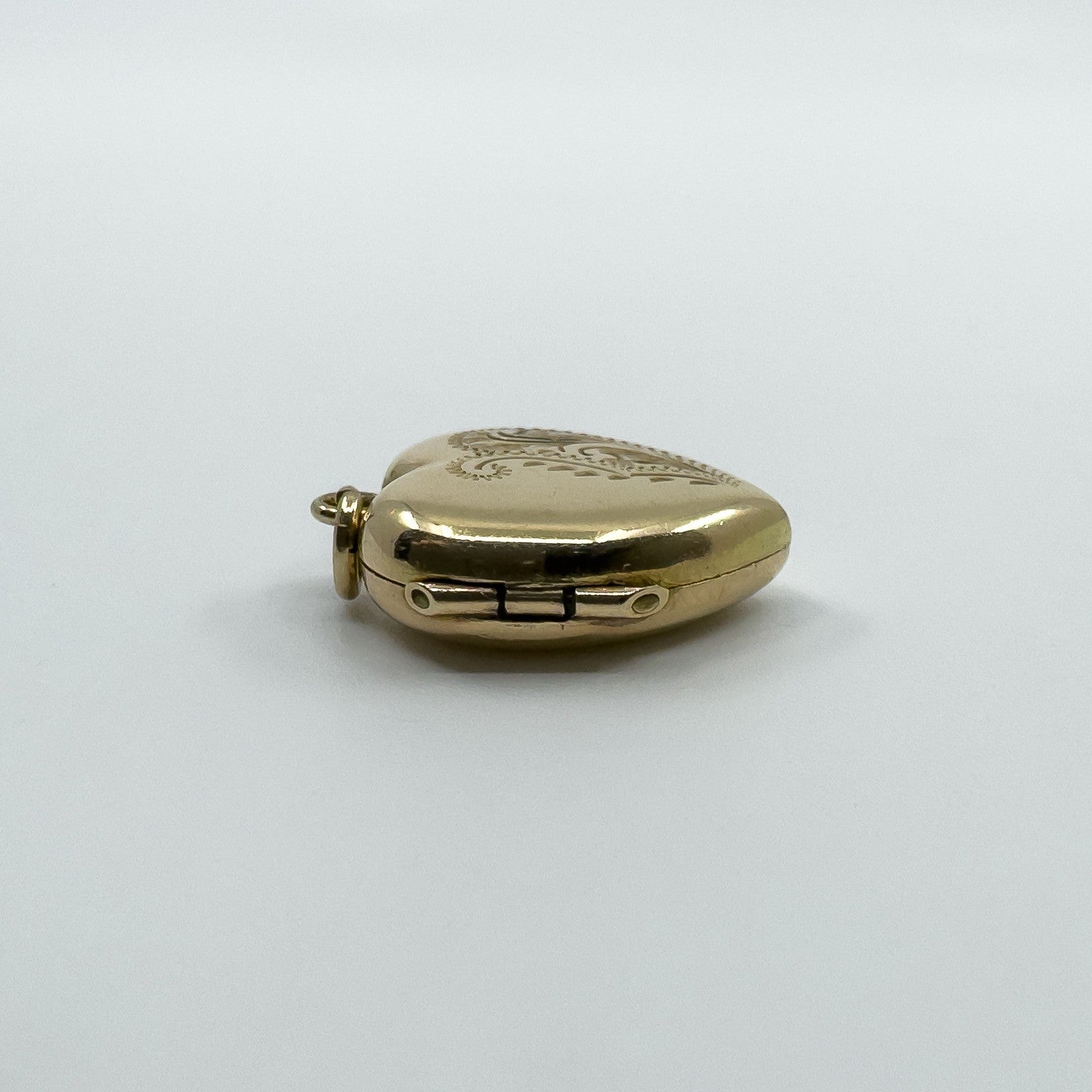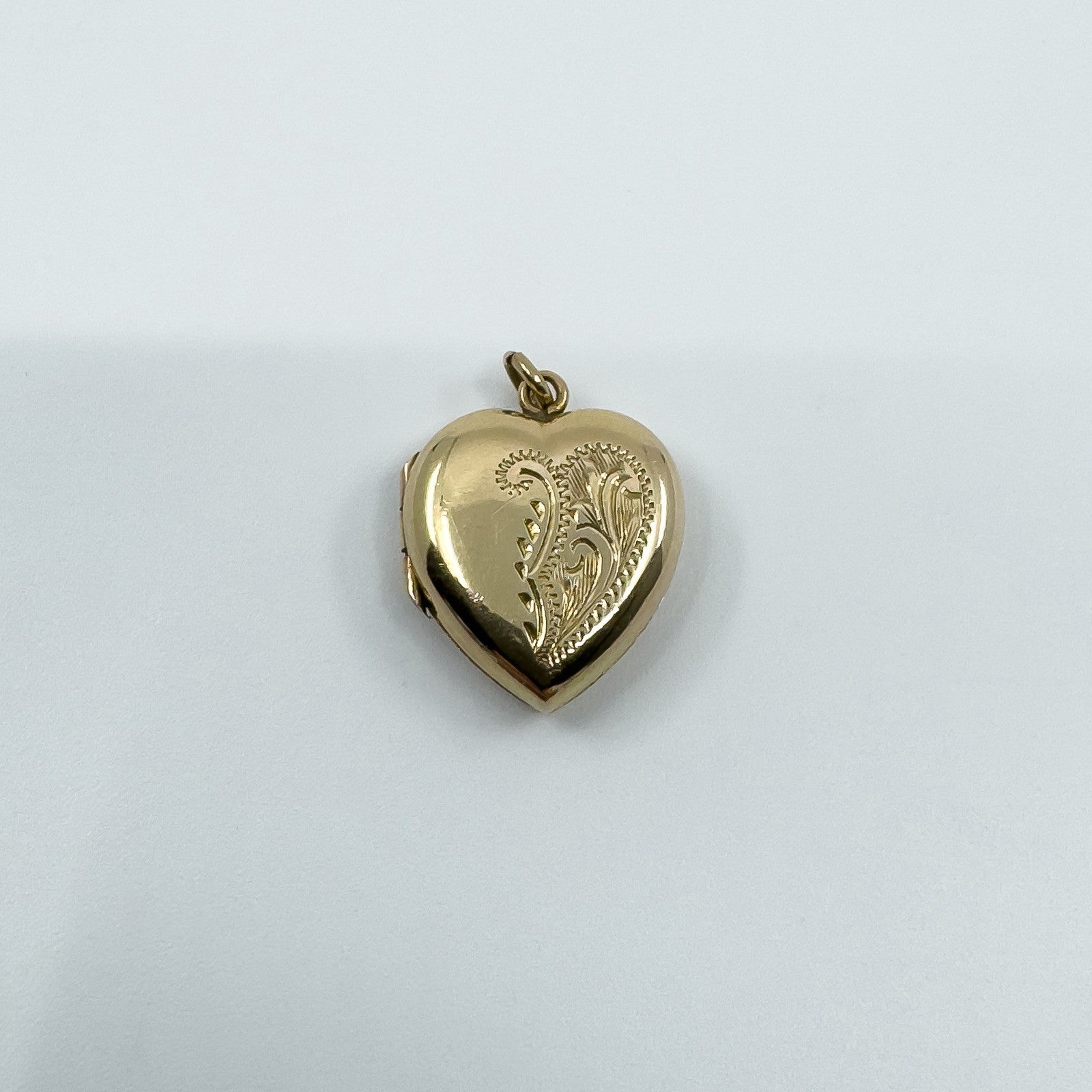 A vintage 9ct gold back and front heart locket with a lovely etched foliate design across the front.