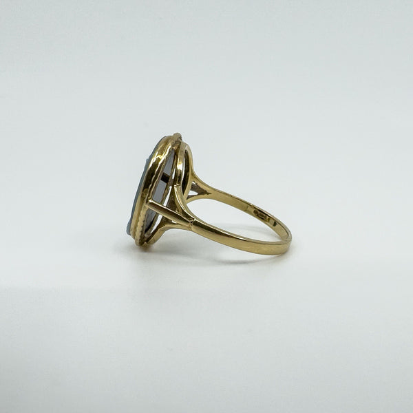 Vintage 9ct Gold Blue Agate Carved Cameo Ring Size Q 1/2 Hallmarked Birmingham