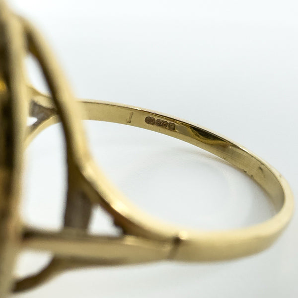 Hallmarked for Birmingham with 375, this cameo ring combines craftsmanship and beauty. A striking statement ring in solid 9ct gold, ideal for collectors or as a unique gift.